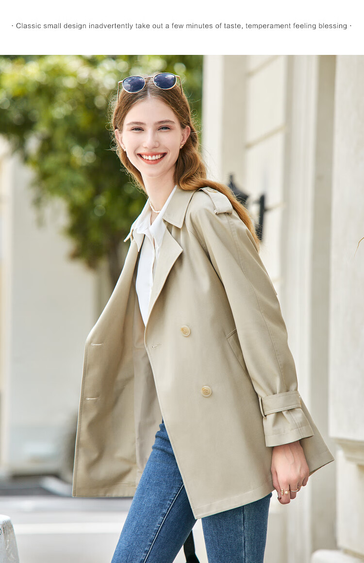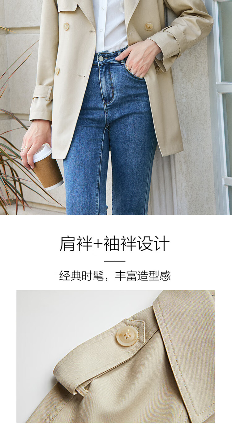 Betu women's autumn new style windbreaker, British style, mid-length, flesh-covering and slimming windbreaker for women 2308T93, apricot S