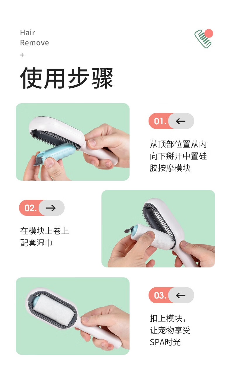 Cat comb gravity water tank cat comb to remove floating hair comb brush cat hair cleaner dog comb brush can stick 200ml no-wash essence