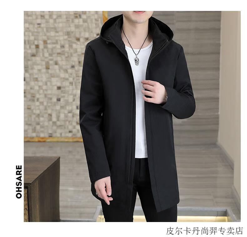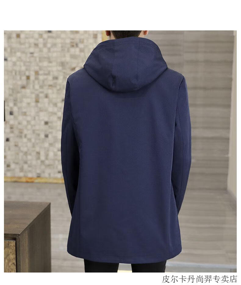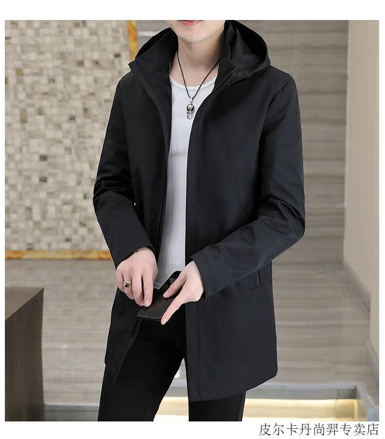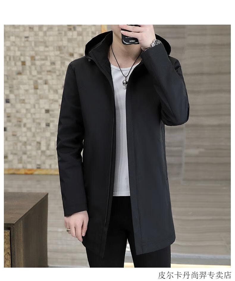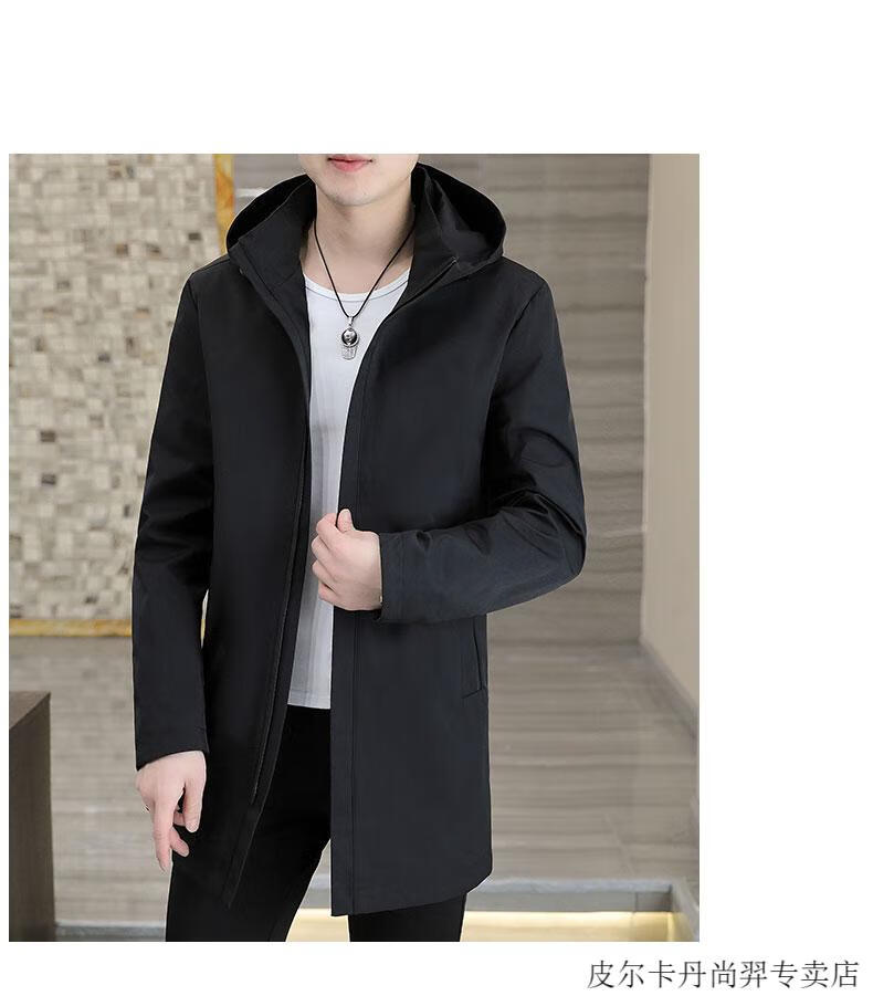 Pierre Cardin mid-length windbreaker jacket men's autumn 2026 new mature and stable men's trendy brand hooded slim jacket. Gram top 313 black 3XL 155Jin Jin equals 0.5kg -166Jin Jin equals 0.5kg or so