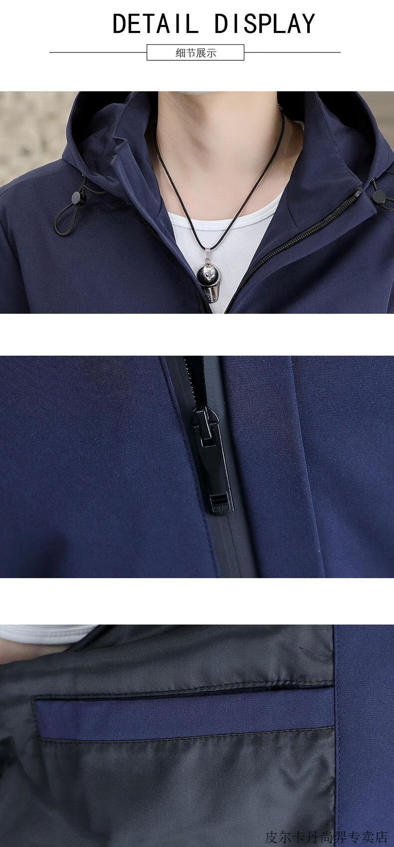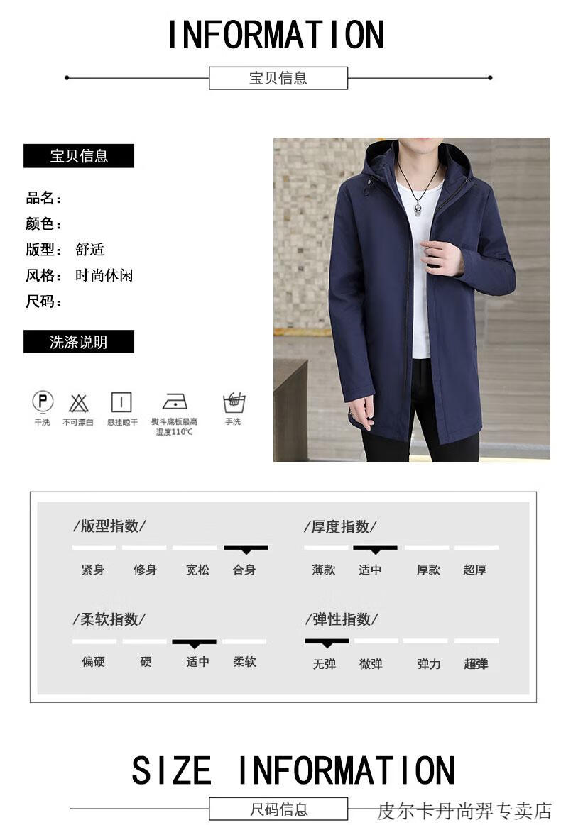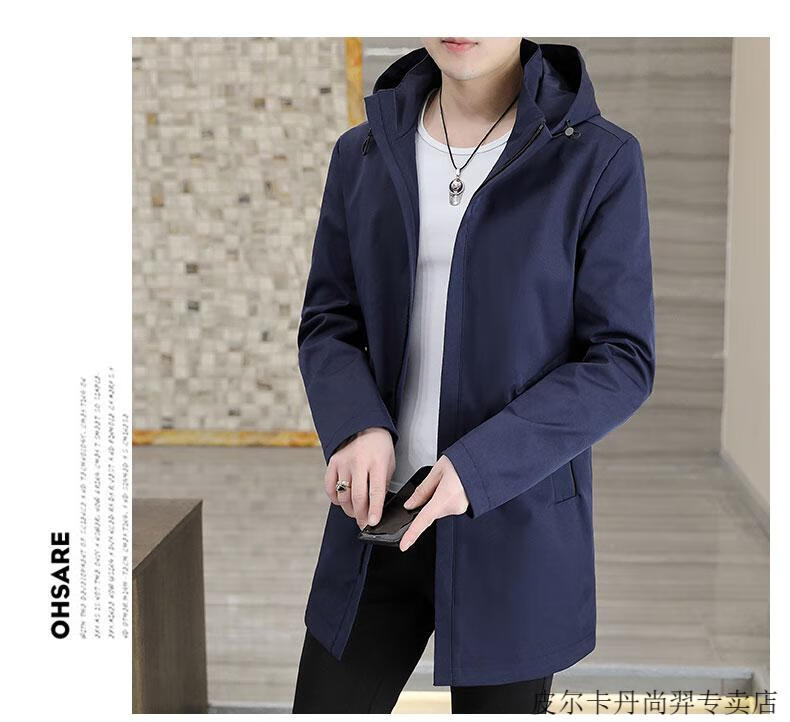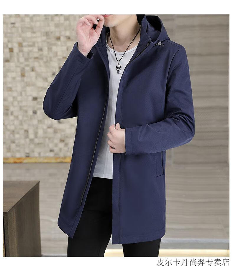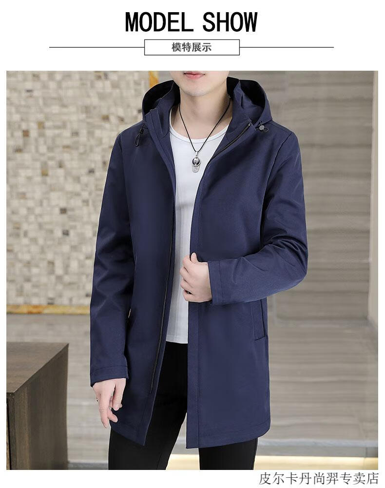Pierre Cardin mid-length windbreaker jacket men's autumn 2026 new mature and stable men's trendy brand hooded slim jacket. Gram top 313 black 3XL 155Jin Jin equals 0.5kg -166Jin Jin equals 0.5kg or so