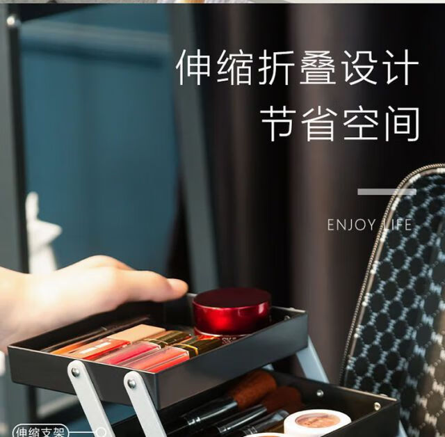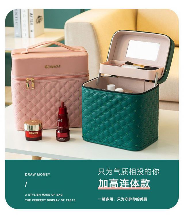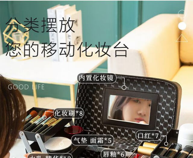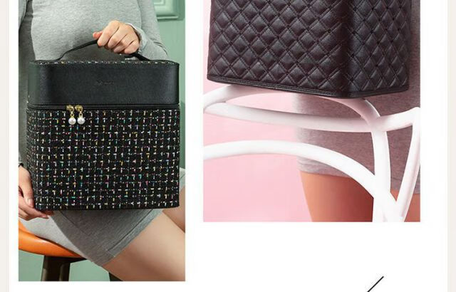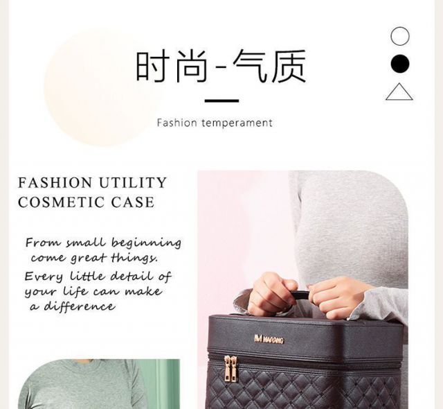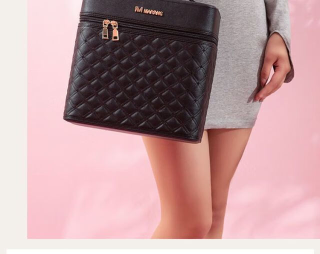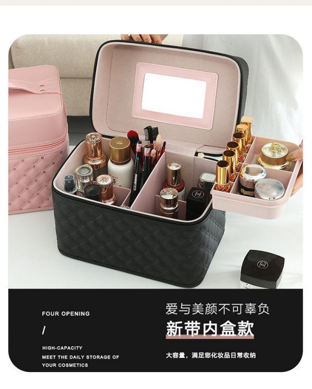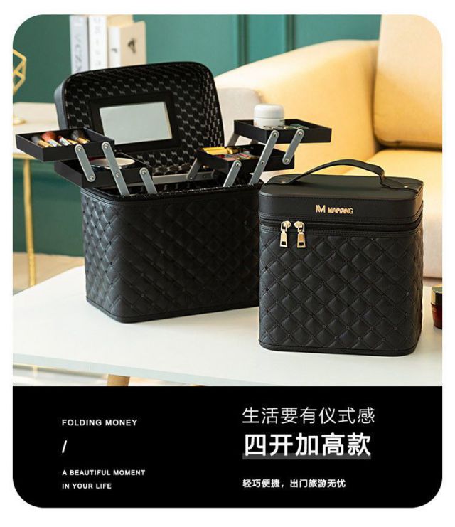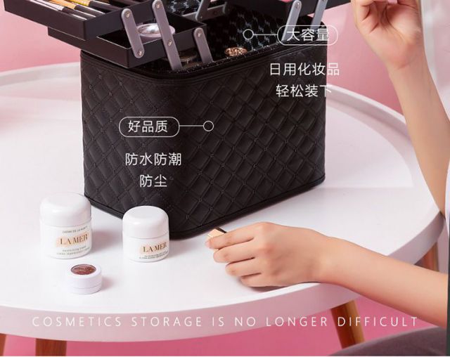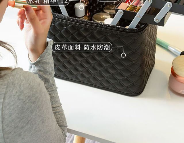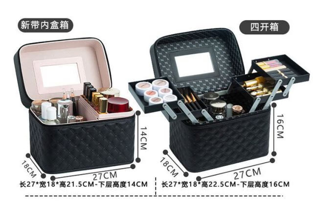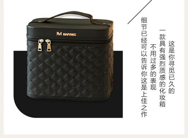 Xingyi Cosmetic Bag Internet celebrity portable hard shell cosmetic storage box large capacity multi-functional cosmetic case black heightened double layer - embroidered sequins