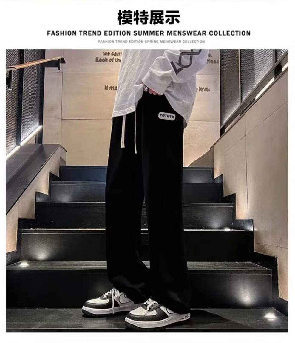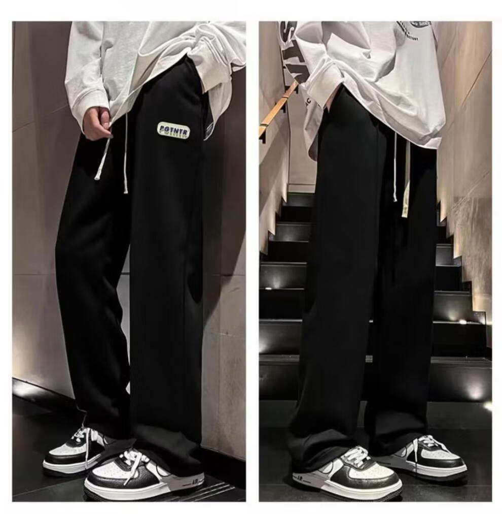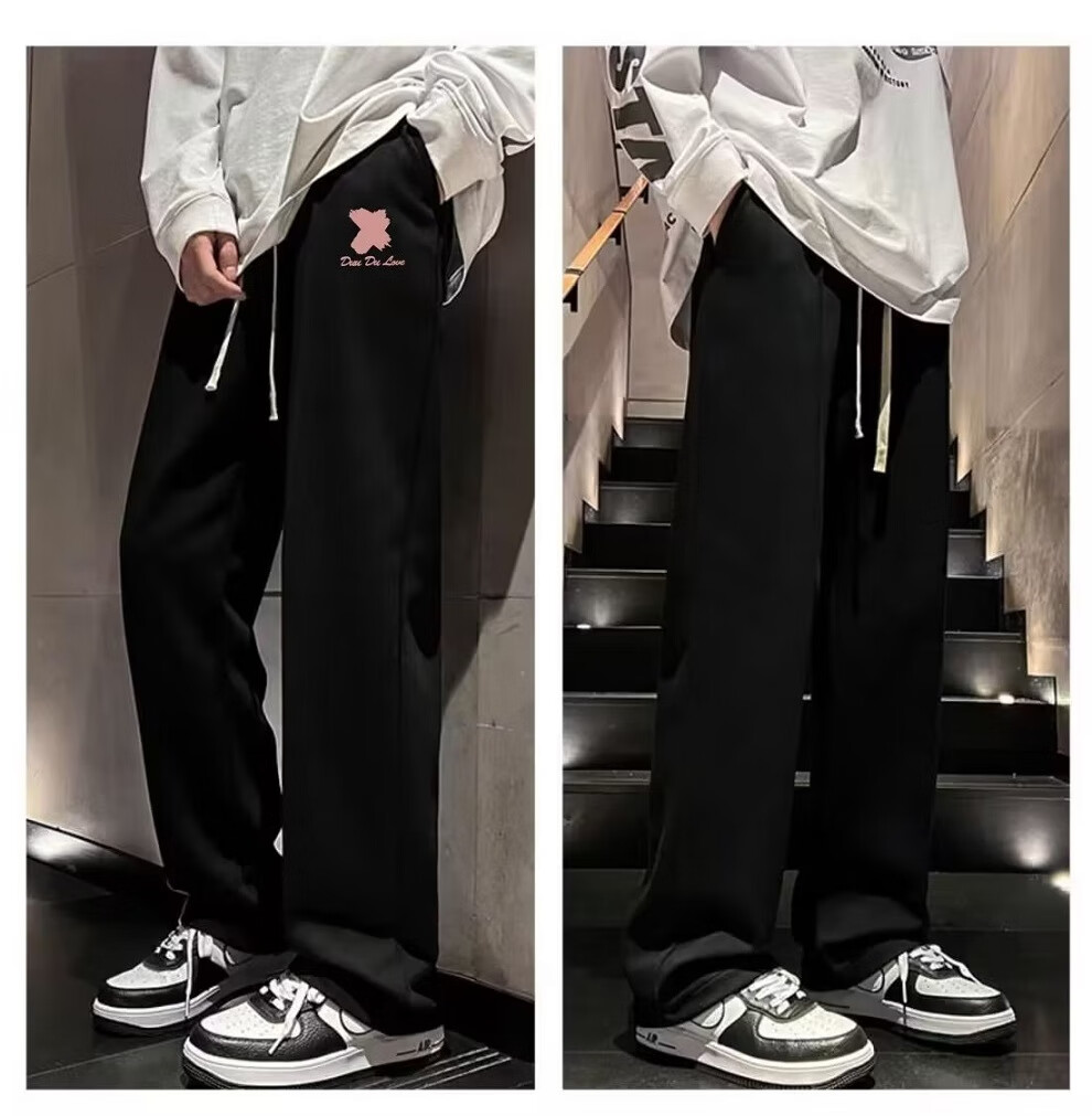 Zhitao pants men's spring and autumn casual pants, loose straight pants, versatile trendy brand American wide-leg workwear plus velvet sports trousers D31-black L (recommended 100Jin Jin equals 0.5kg -110Jin Jin equals 0.5kg can be worn)