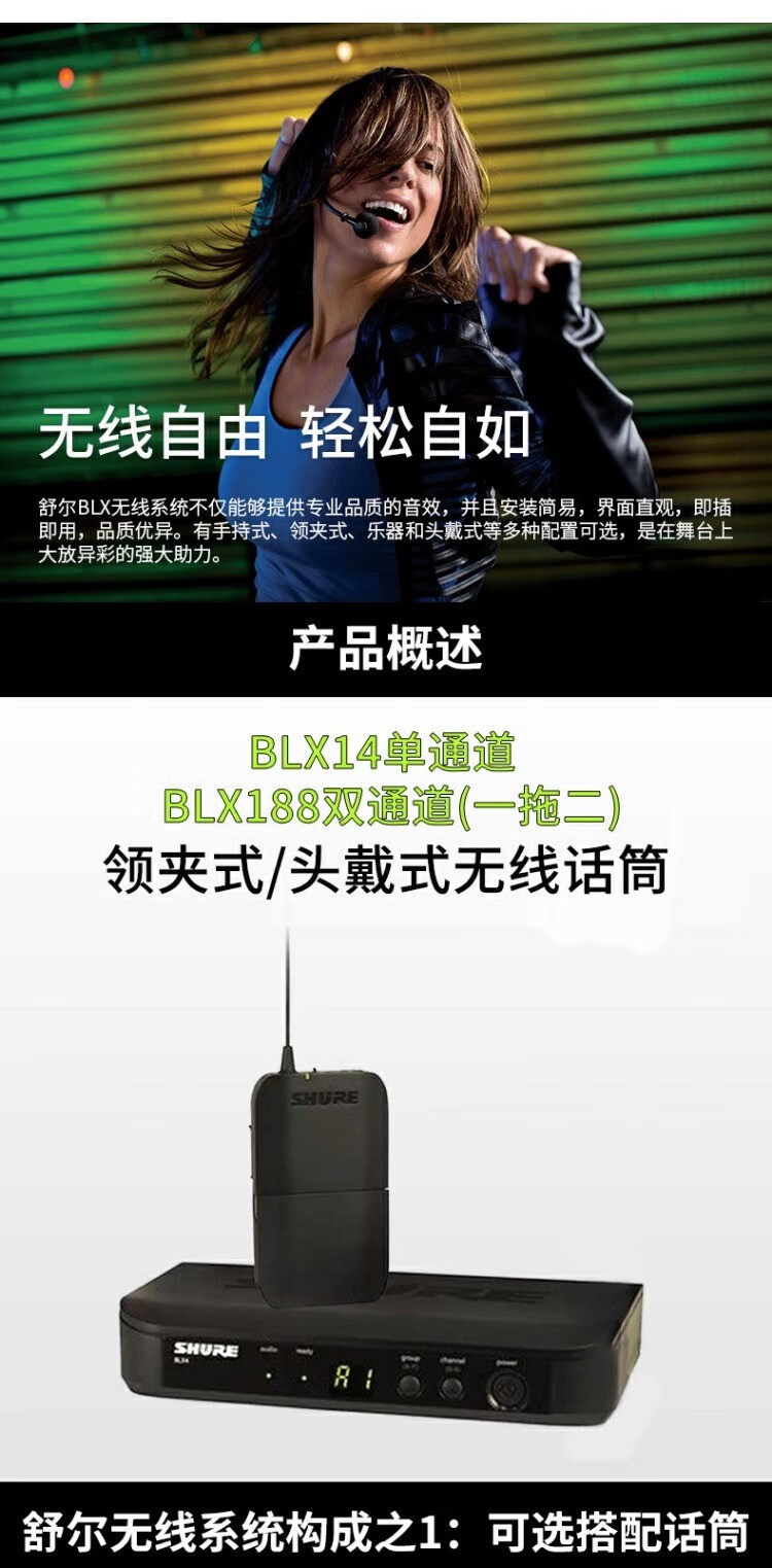 SHURE Shure BLX wireless headset microphone stage performance hosting classroom lecture live broadcast headset training portable microphone BLX14/SM35 (cardioid pointing)