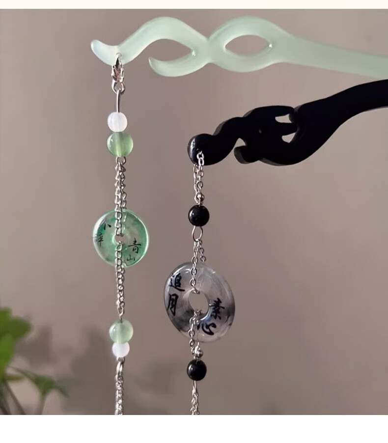 Two generations of happy horse-faced skirts, hairpins, women's ancient style tassels, modern cheongsam, wooden hairpins, hairpins, Hanfu plate hair accessories, gift, green