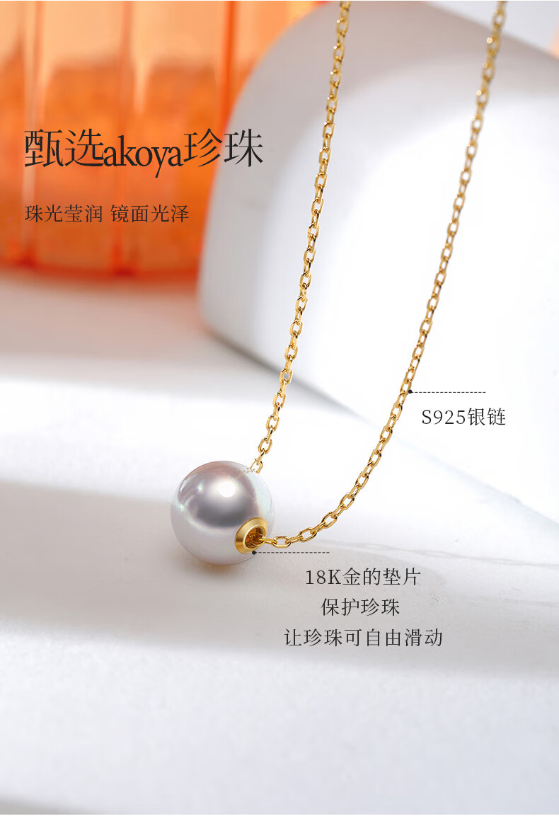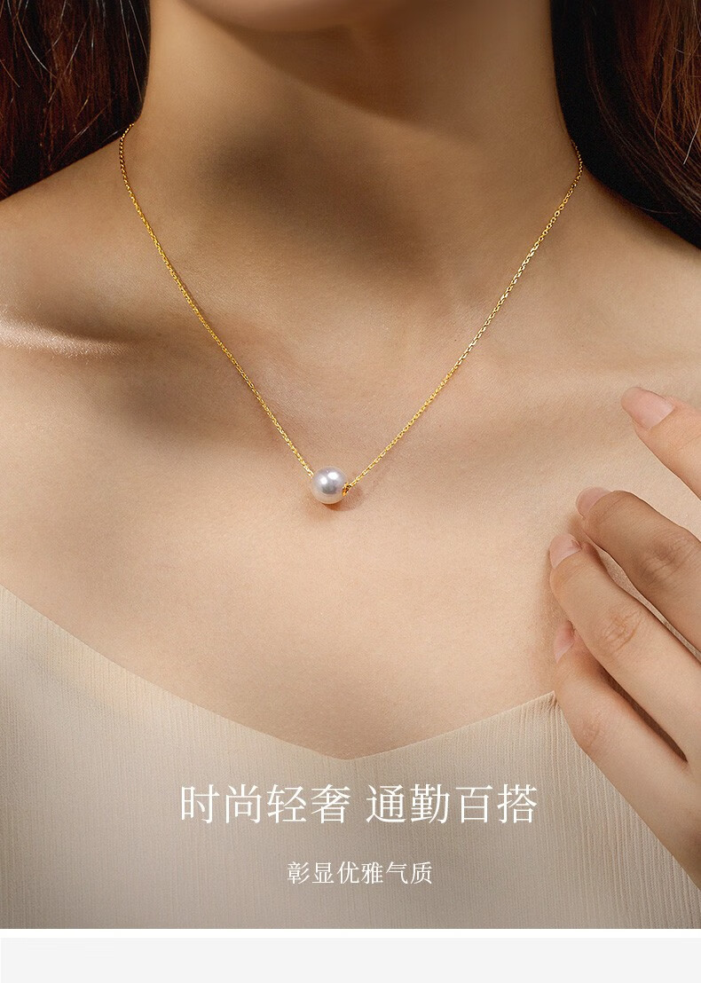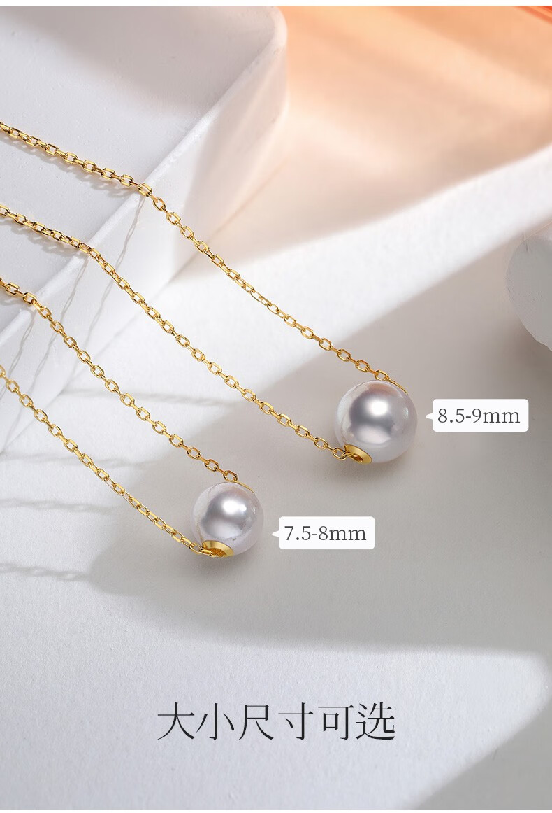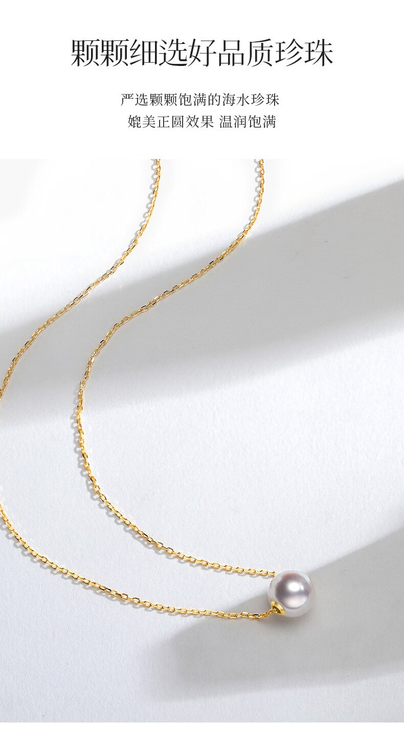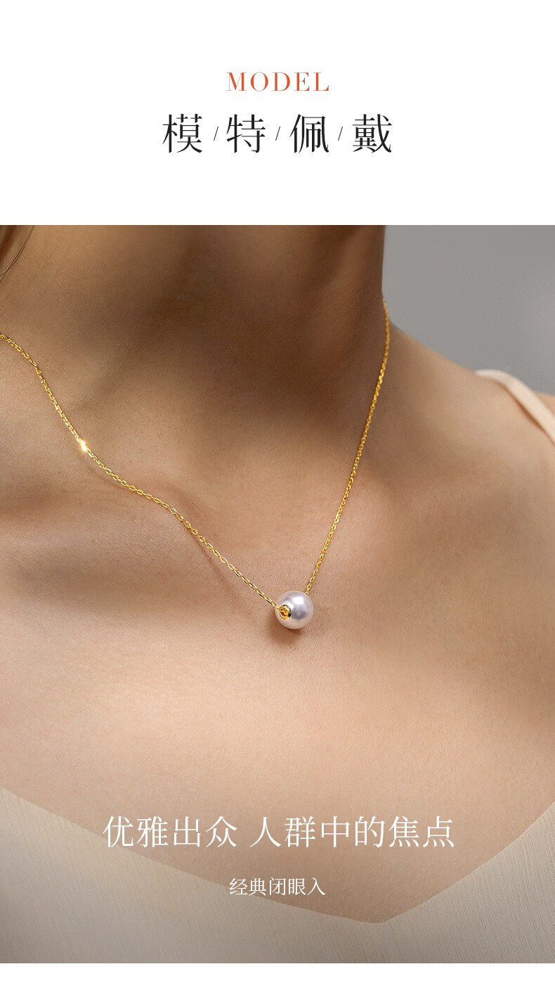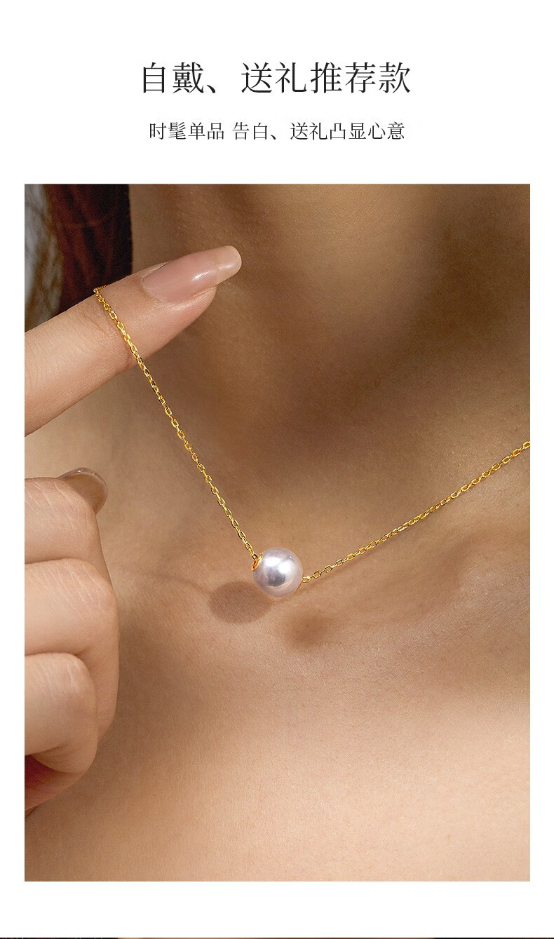 Hi Diamond Passepartout Pearl Pendant 18K Gold Seawater Pearl 7.5-8mm Necklace Transfer Bead Clavicle Chain Birthday Gift Ready Stock - Yellow 18K Gold Seawater Pearl 7.5-8mm