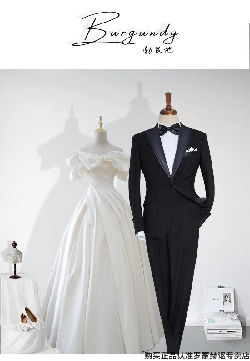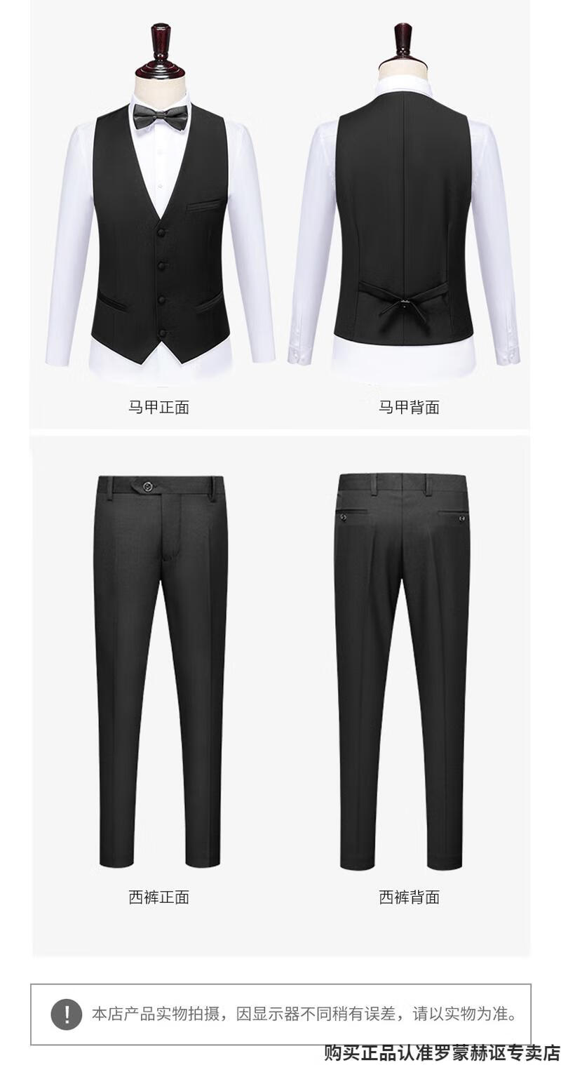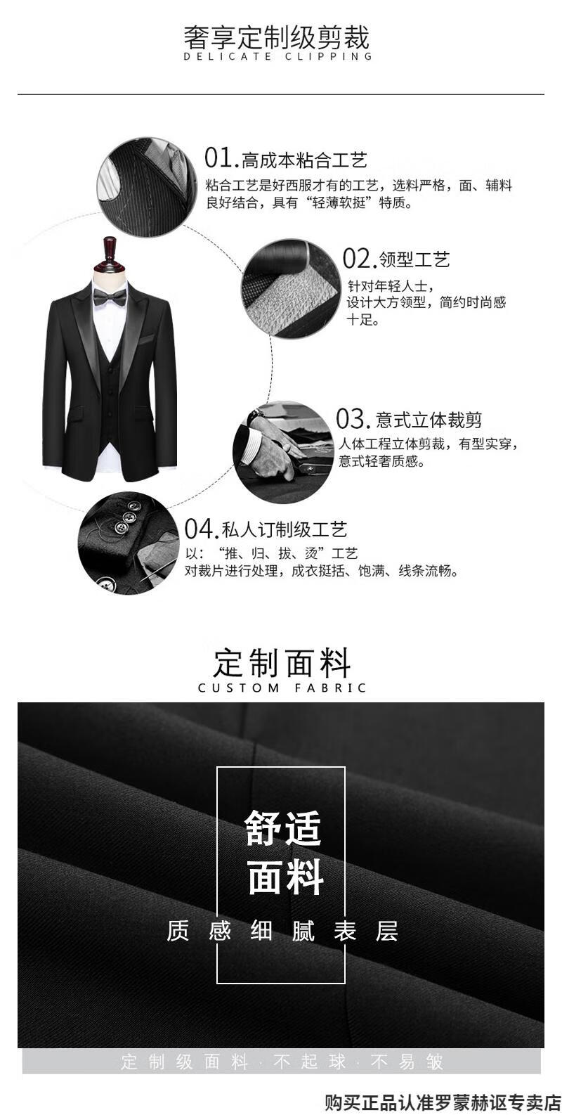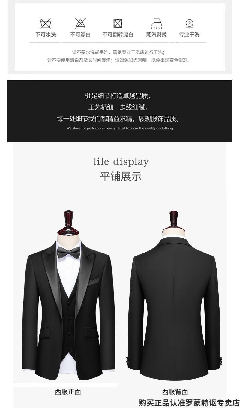 ROMON Light Luxury Haute Couture Men's Suit Formal Tuxedo Evening Performance Groom Wedding Slim Suit Navy Blue Peaked Collar Three-piece Suit XL