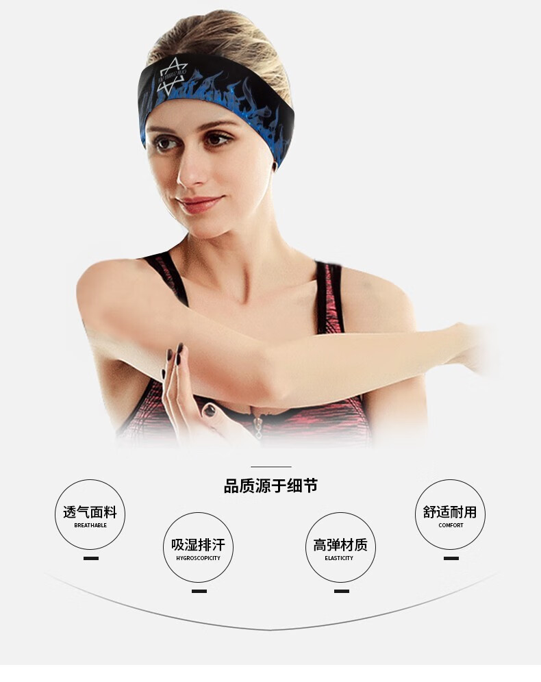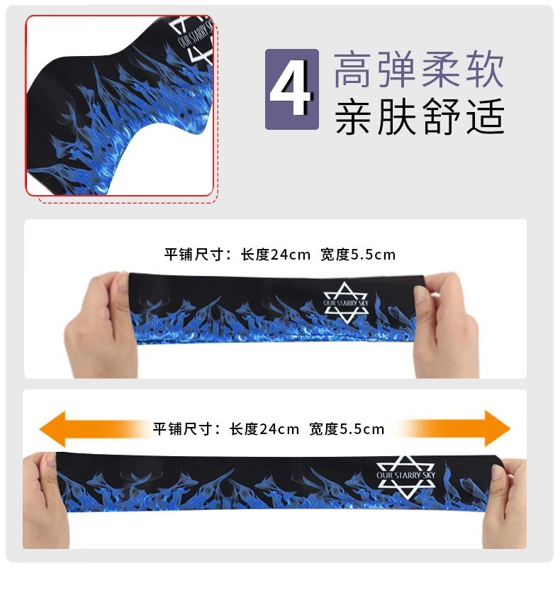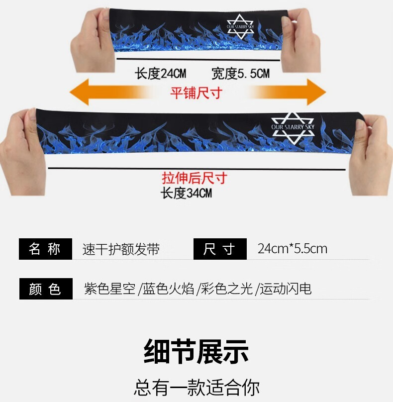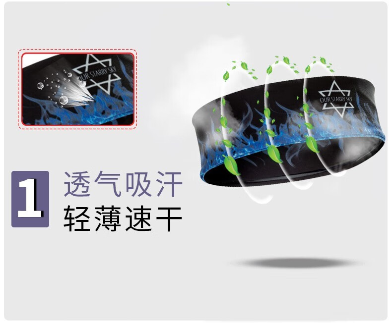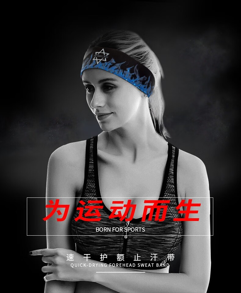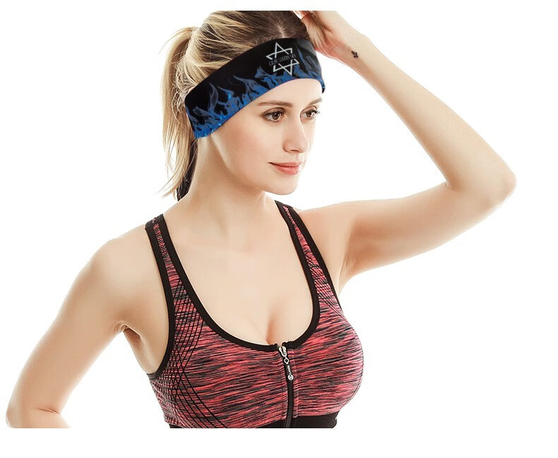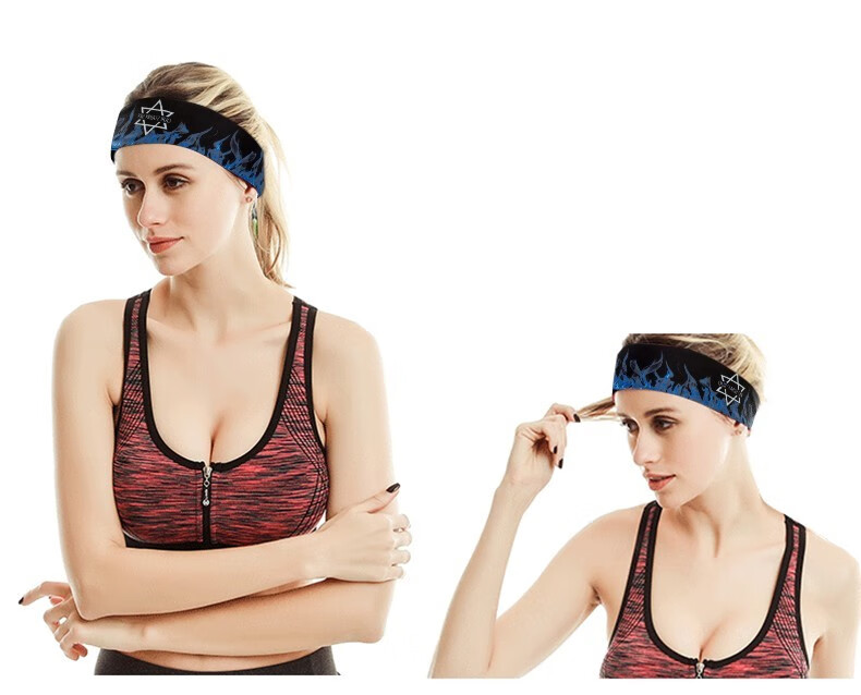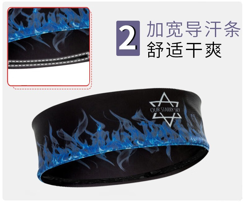 Feiyali Sports Headband Men's Sweat-Absorbent Children's Antiperspirant Headband Forehead Protector Headband Running Basketball Headband Women's Hip-Hop Long Hair Winter Full Circle Headband Blue Flame One Size