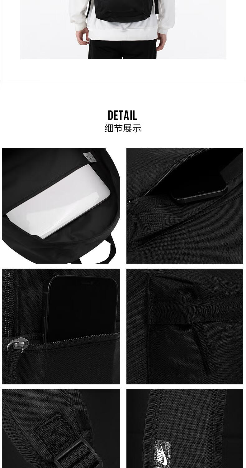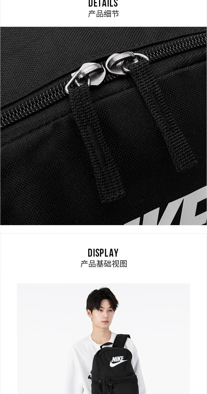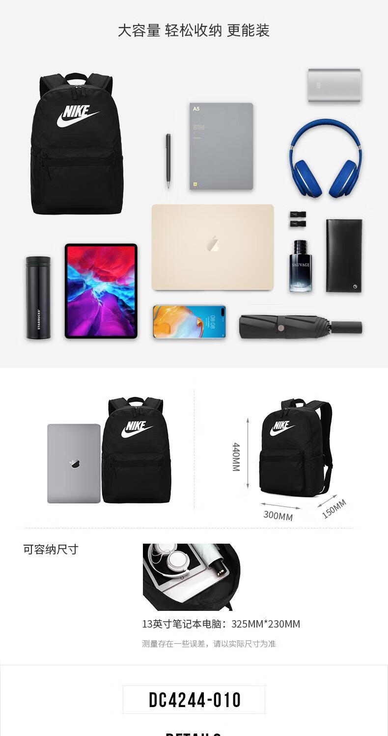 Nike (NIKE) Backpack Men's Large Capacity Official Sports Backpack Junior High School High School Elementary School Student School Bag Female DC4244 DC4244-010_Main Image_Size 30x15x One Size