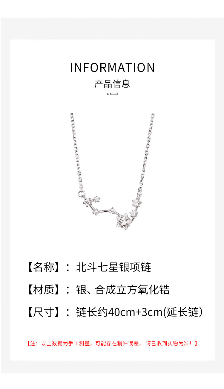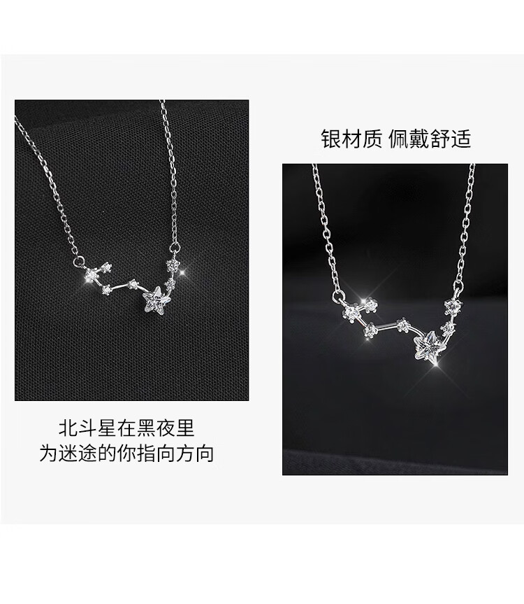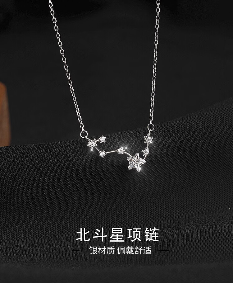 JALLOO star silver necklace for women niche light luxury high-end pendant clavicle chain jewelry female birthday gift for girlfriend Big Dipper silver necklace