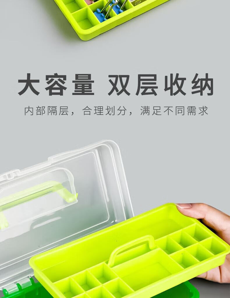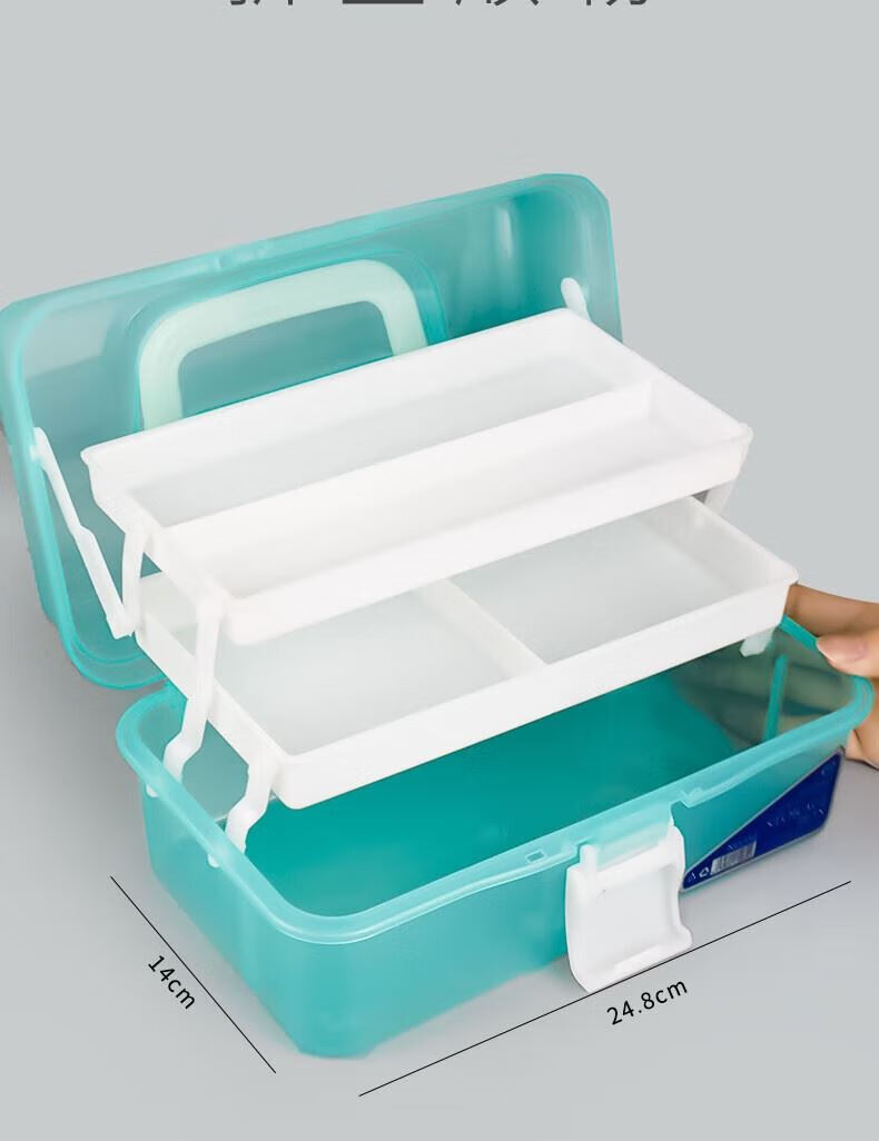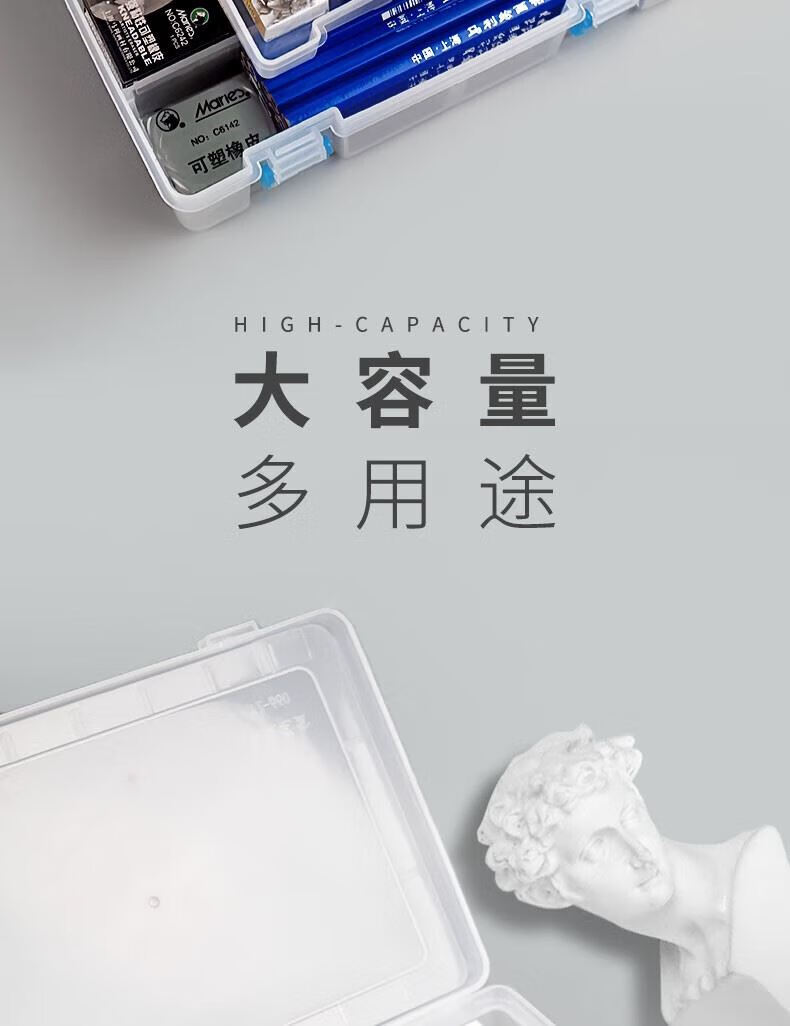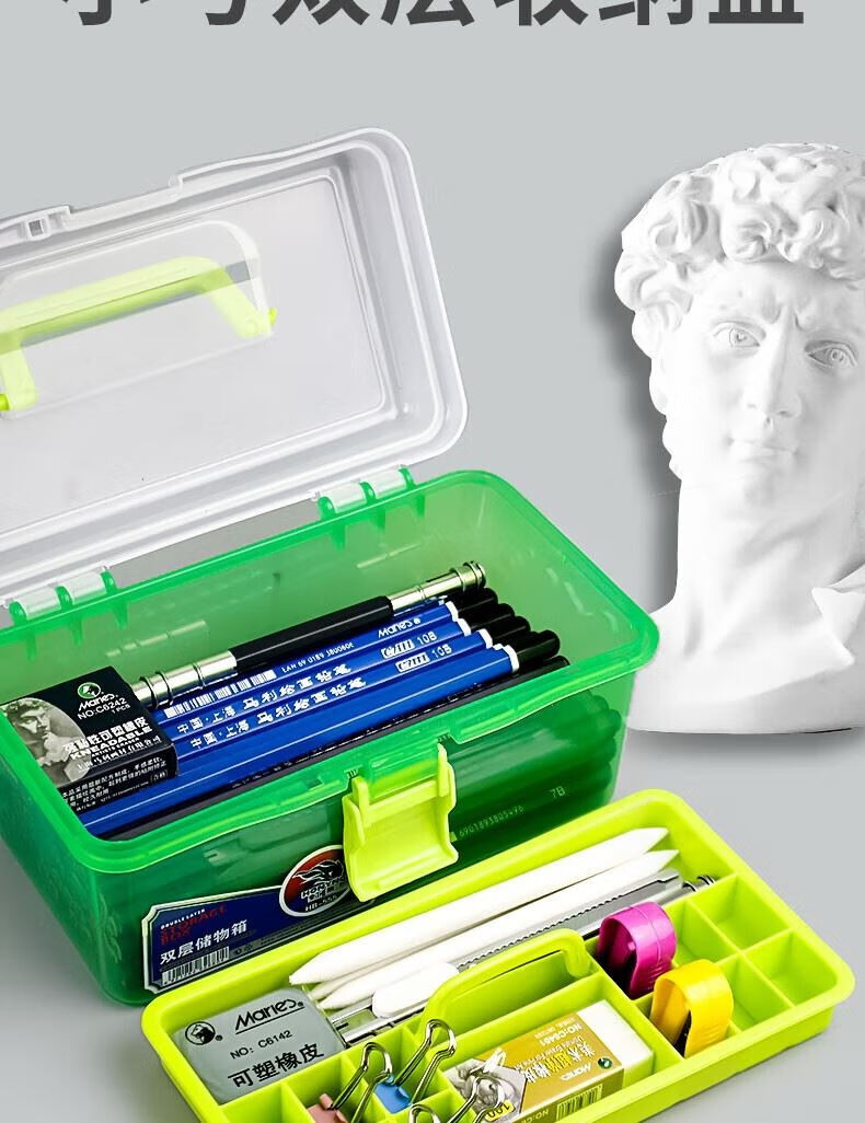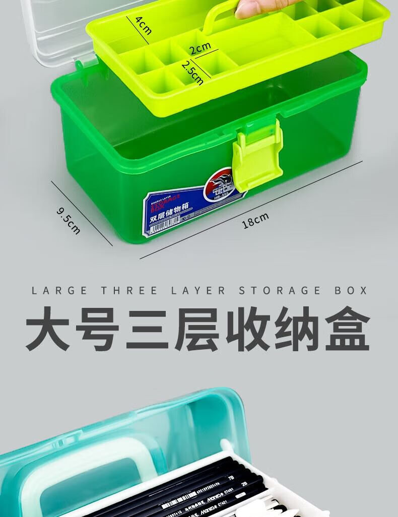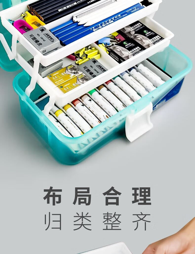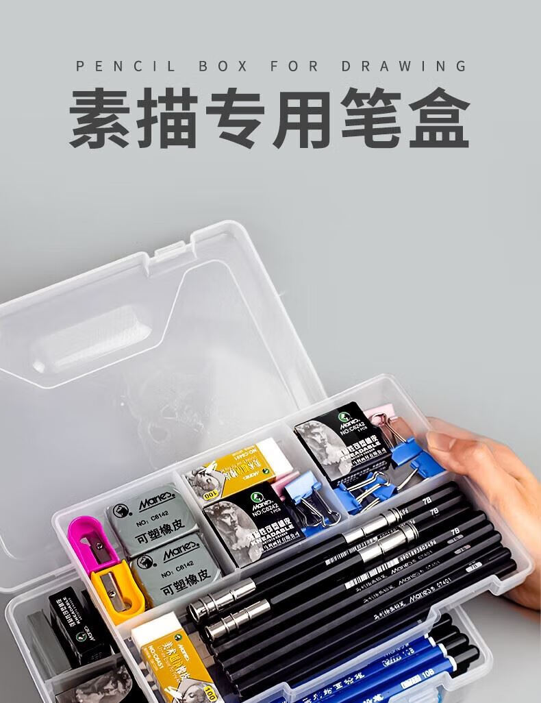 素描笔盒美术生专用铅笔收纳大容量美术炭笔双层工具盒子塑料手 大号三层工具箱(1个) 颜色随