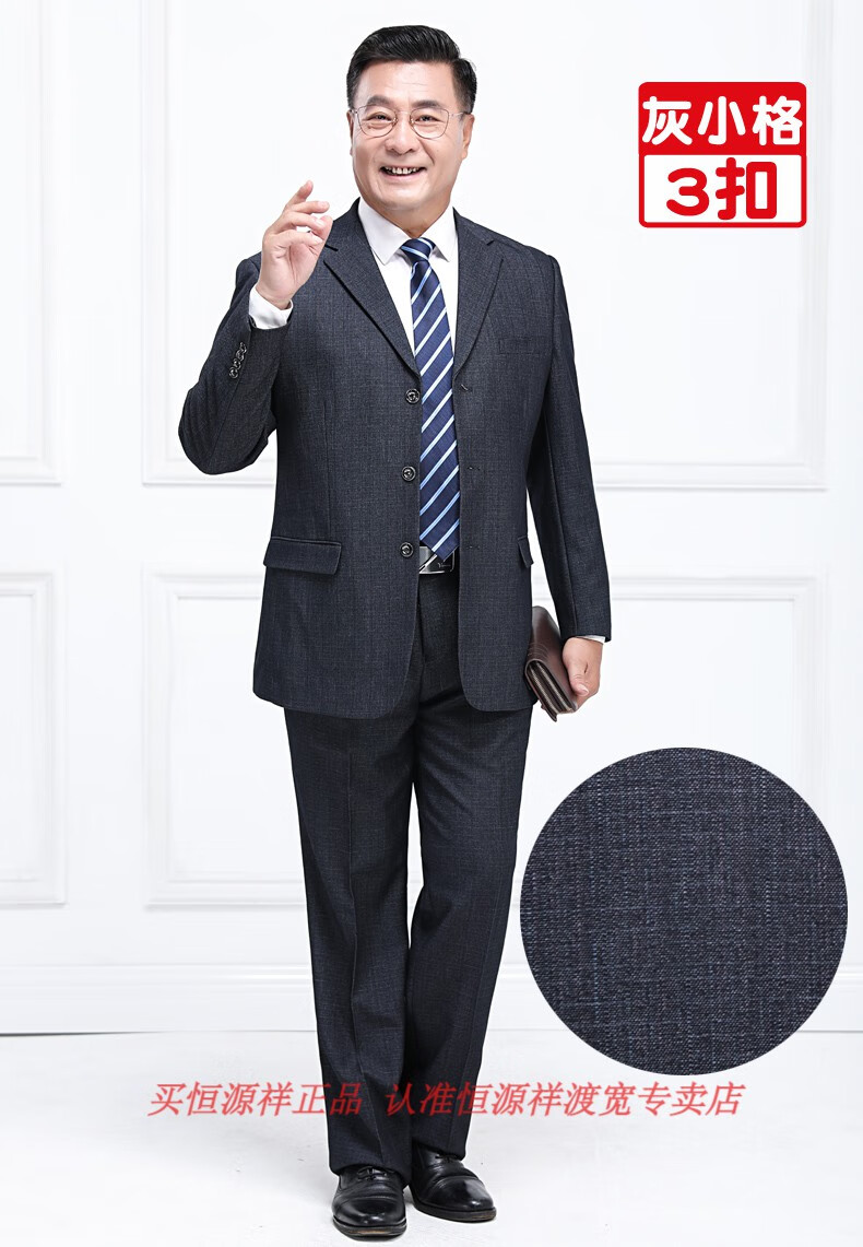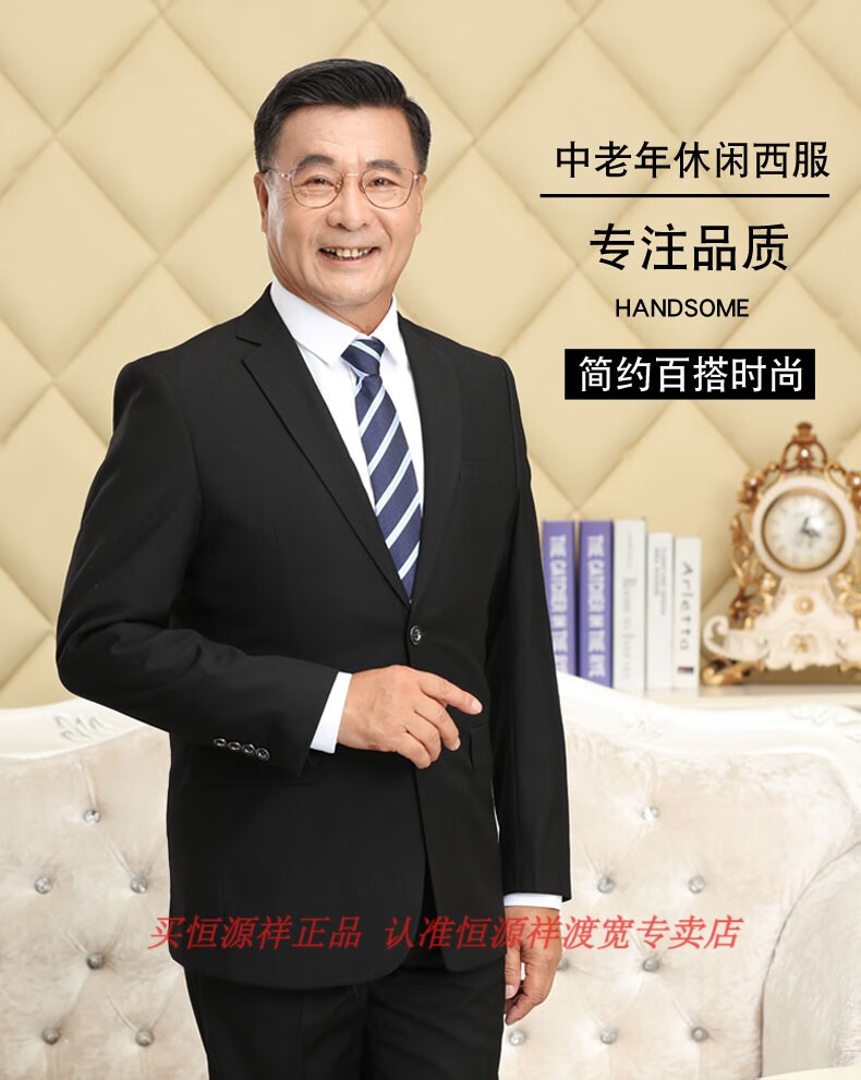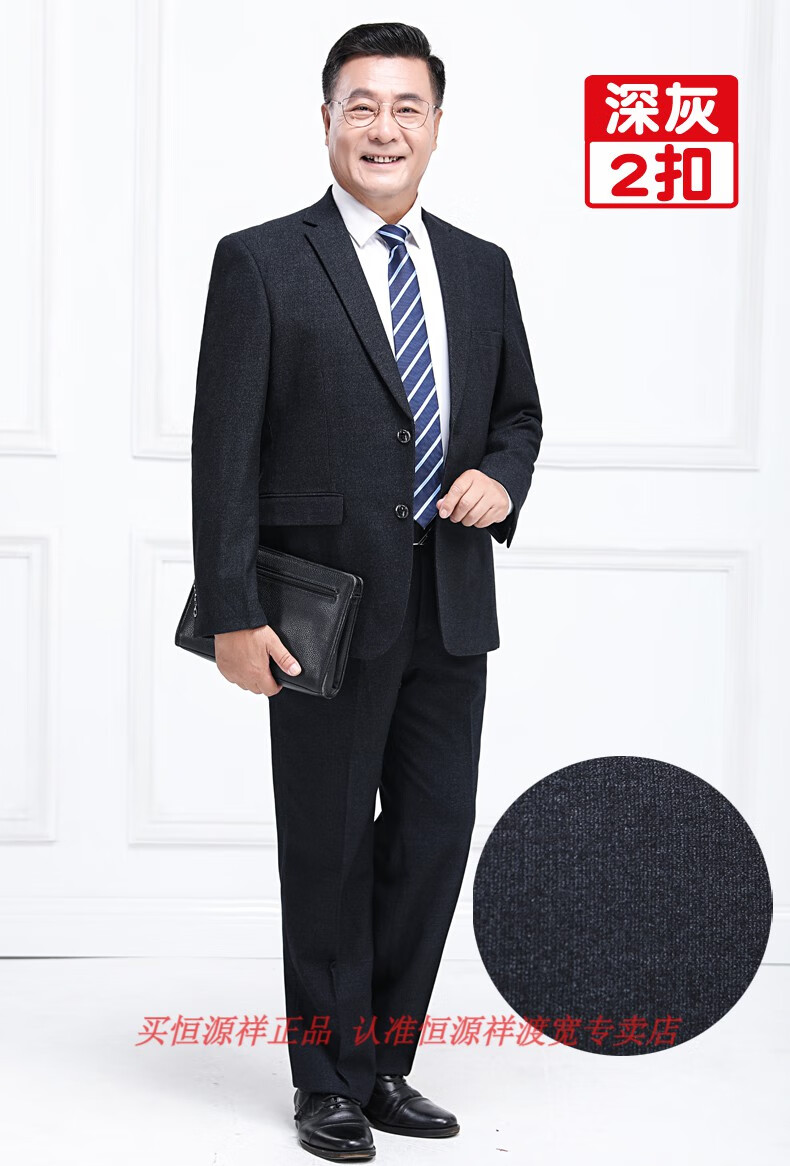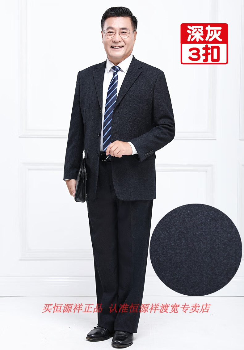 Hengyuanxiang middle-aged and elderly loose suit suits for men and dads for weddings men's casual suits for fathers middle-aged business formal suits 2-button navy two-piece set 180/XL