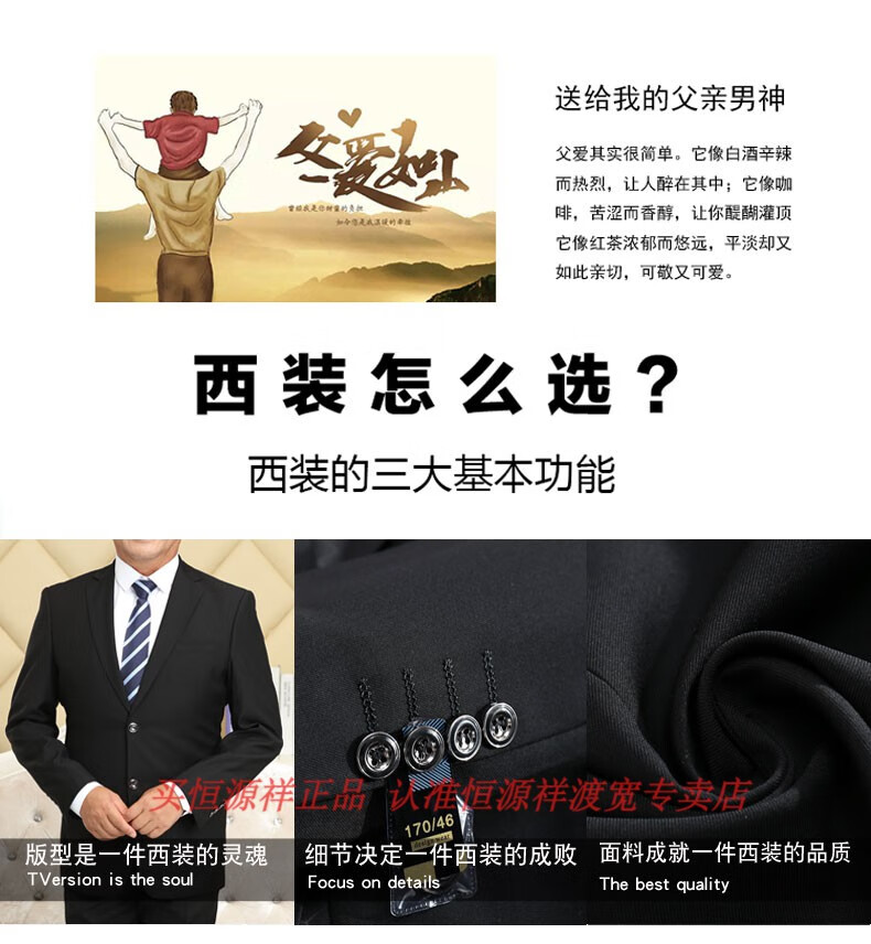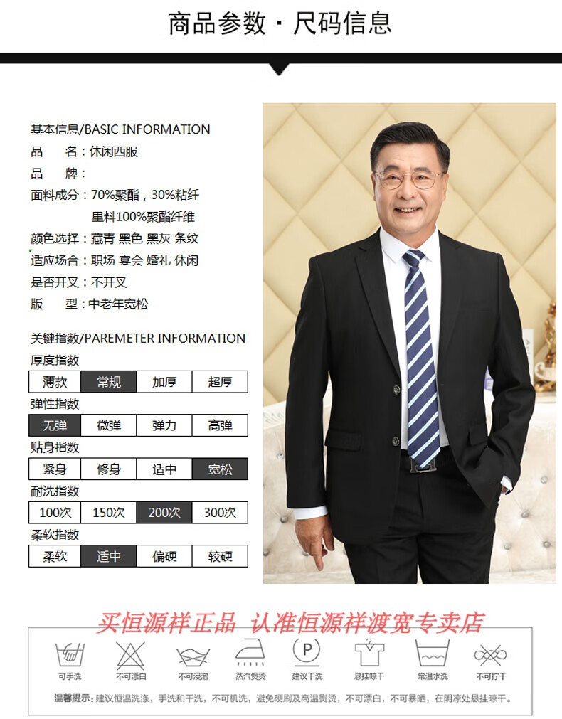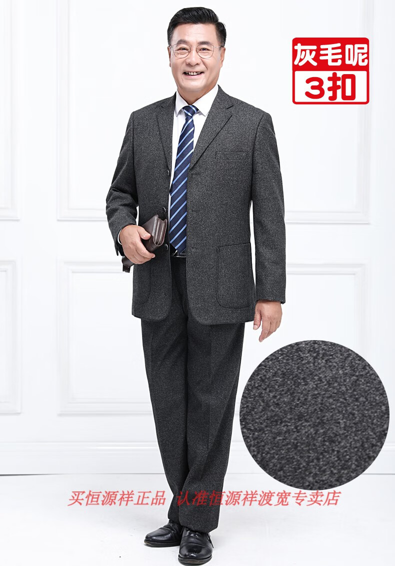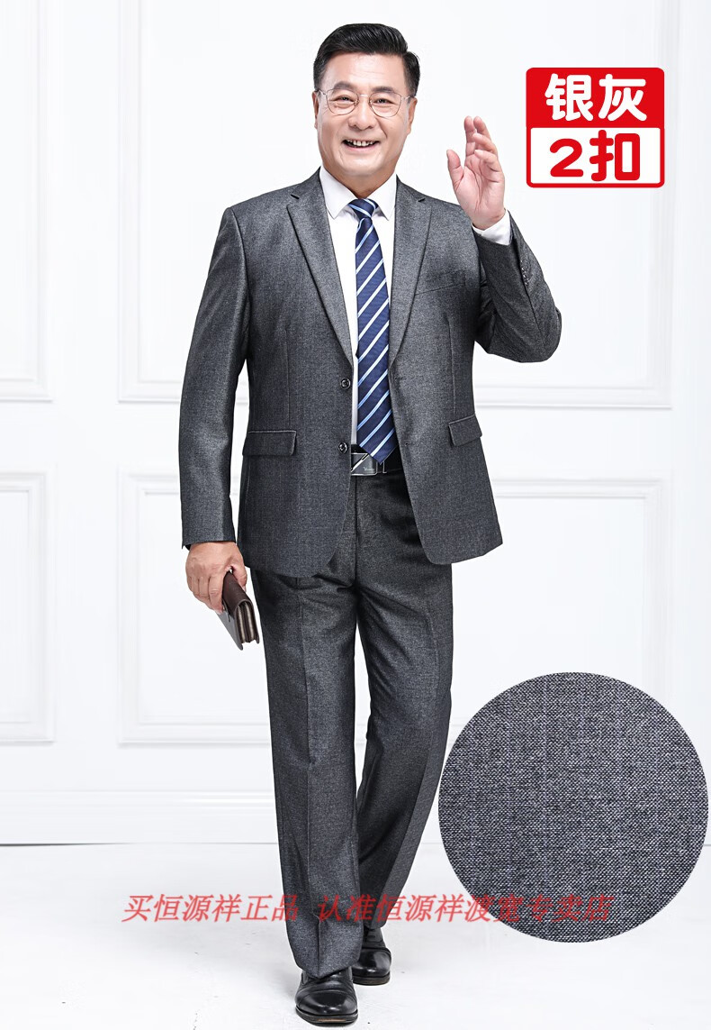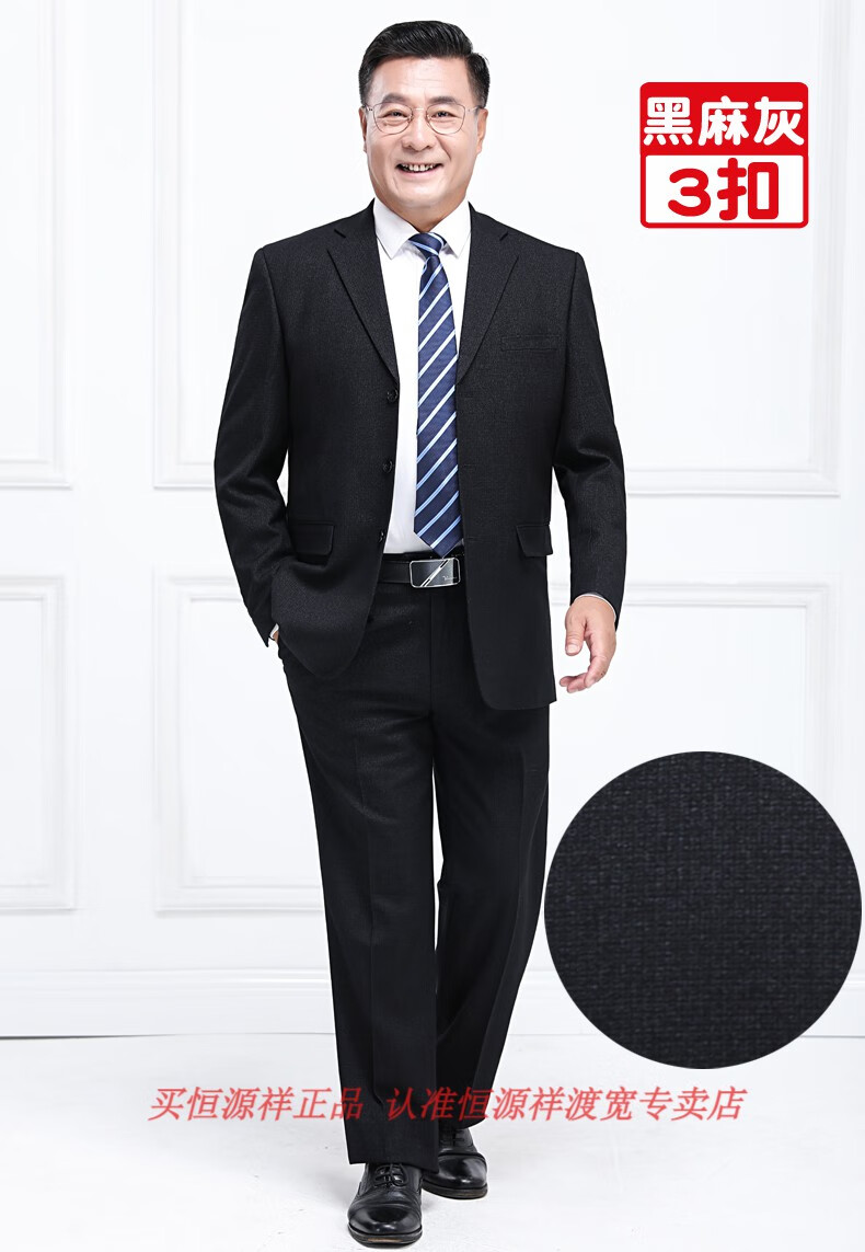 Hengyuanxiang middle-aged and elderly loose suit suits for men and dads for weddings men's casual suits for fathers middle-aged business formal suits 2-button navy two-piece set 180/XL