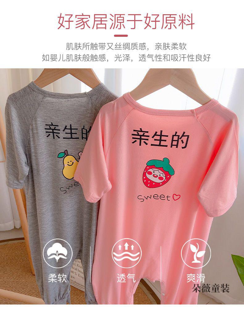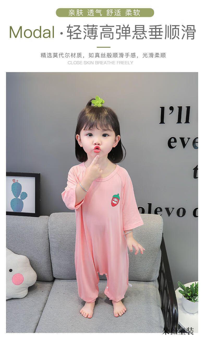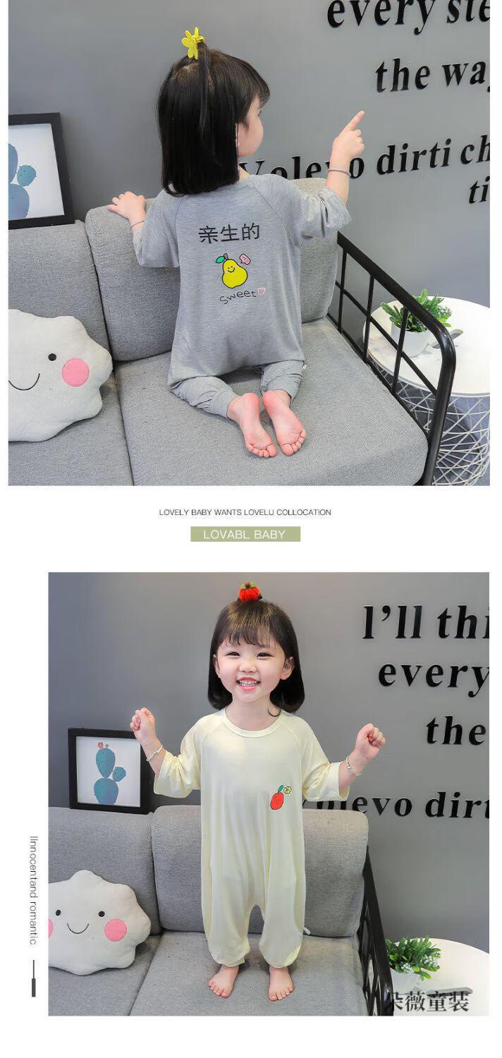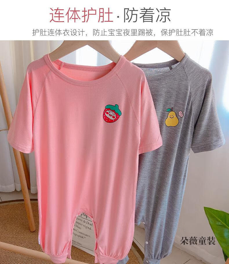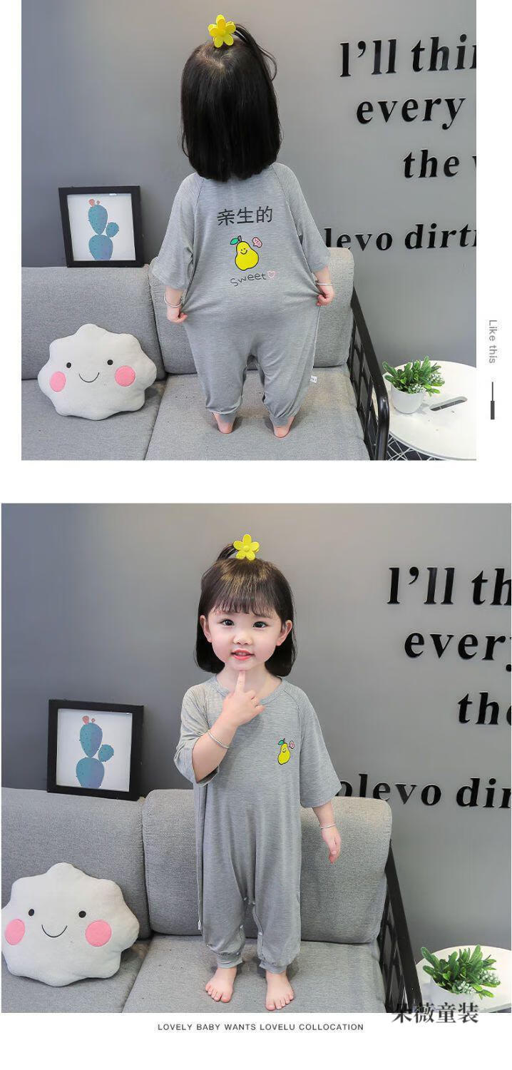 Disney Modal children's one-piece pajamas for boys and girls, summer thin children's anti-kicking sleeping bag, infant air-conditioning suit, gray 90 (recommended height is about 85cm)