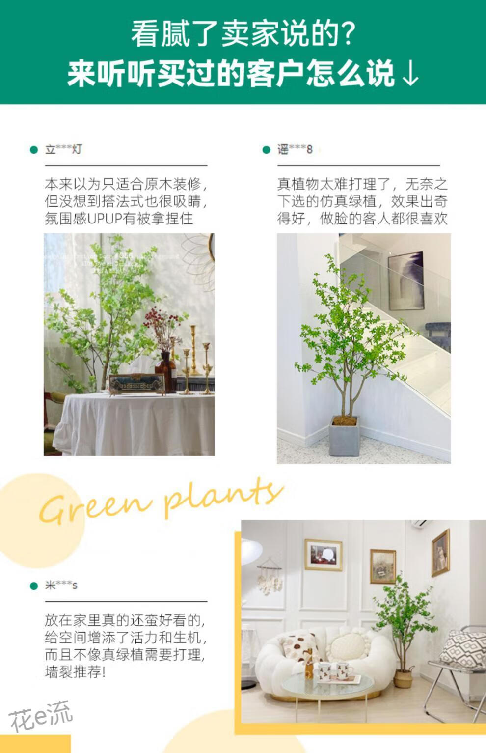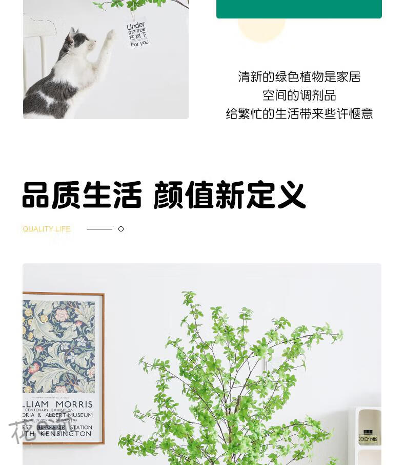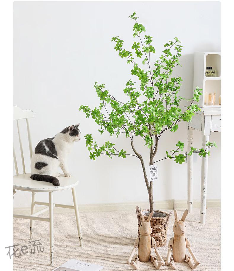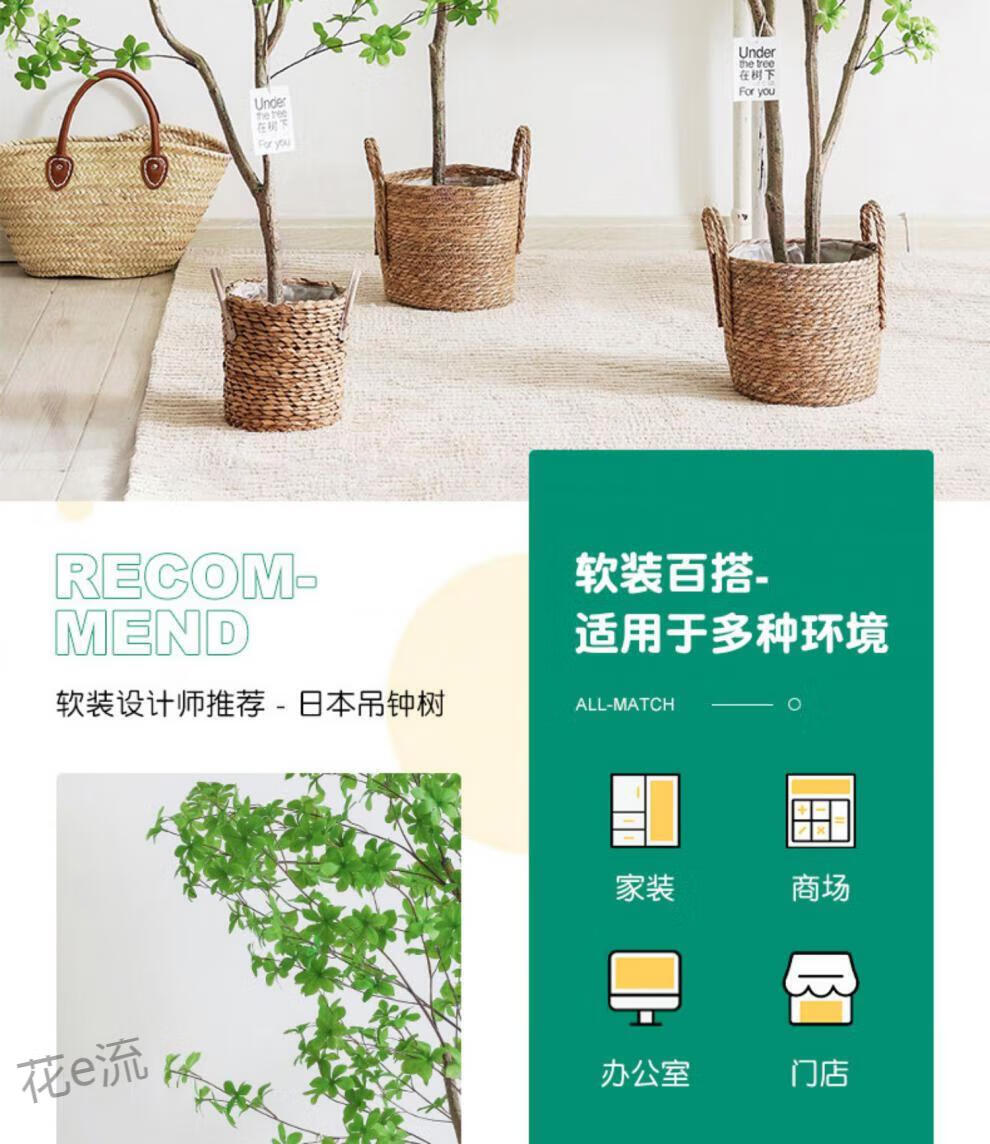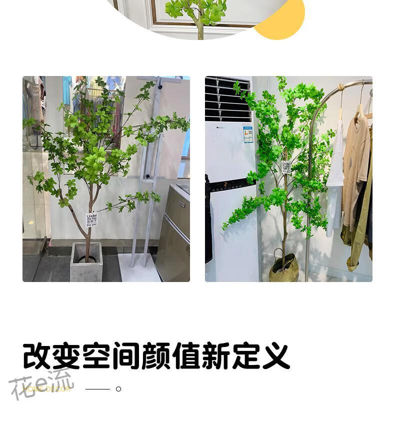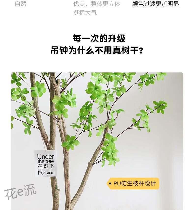 Flower e-flow simulation hanging bell tree horse drunken wood plant clothing store bionic fake green plant decoration potted indoor living room floor-standing ornaments 1.6m single pole + cement basin