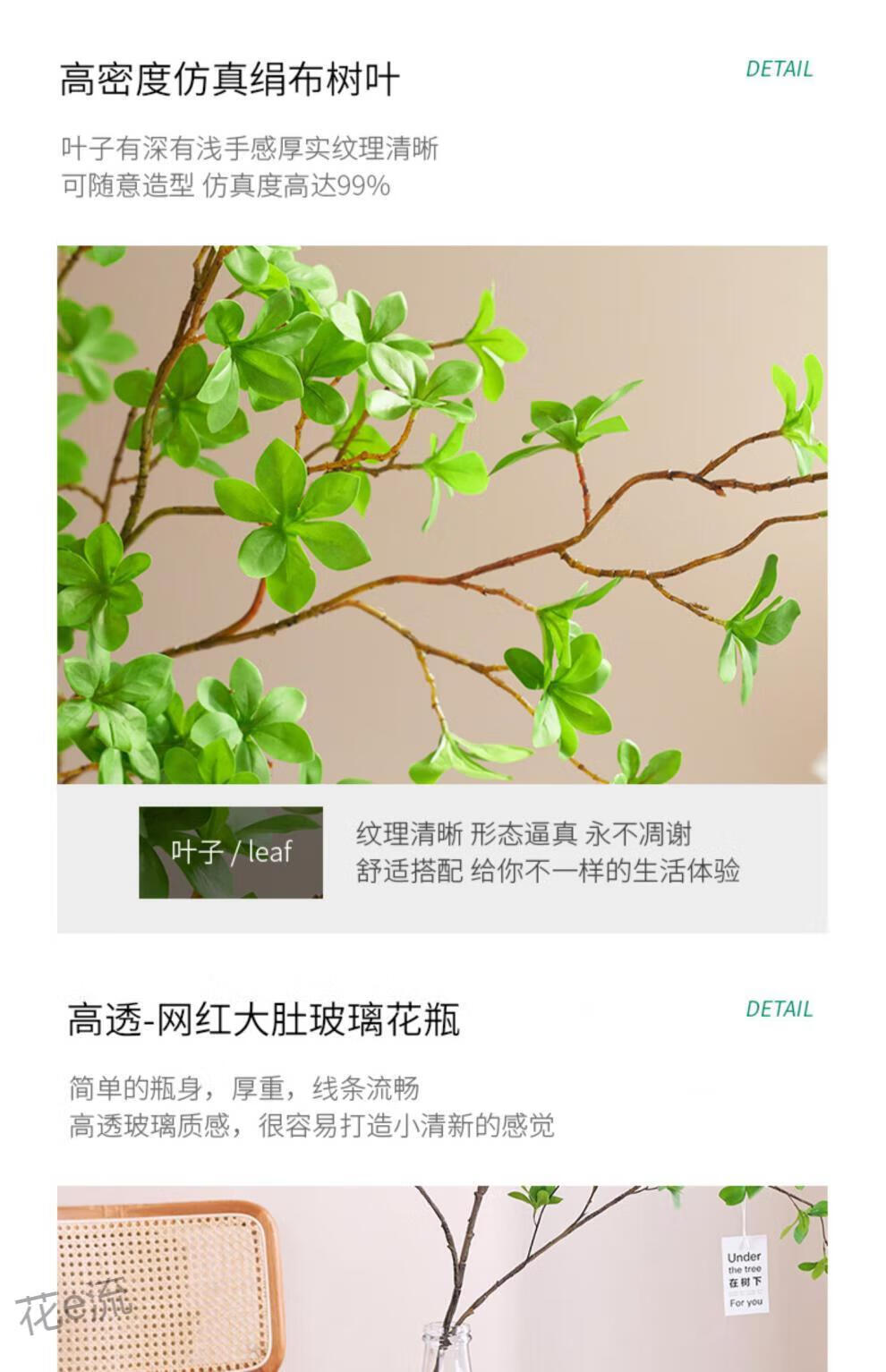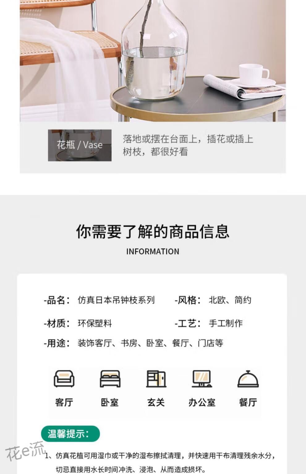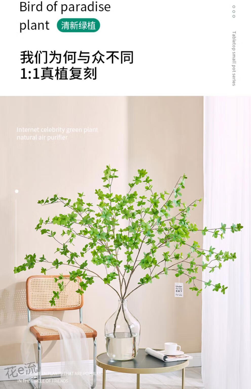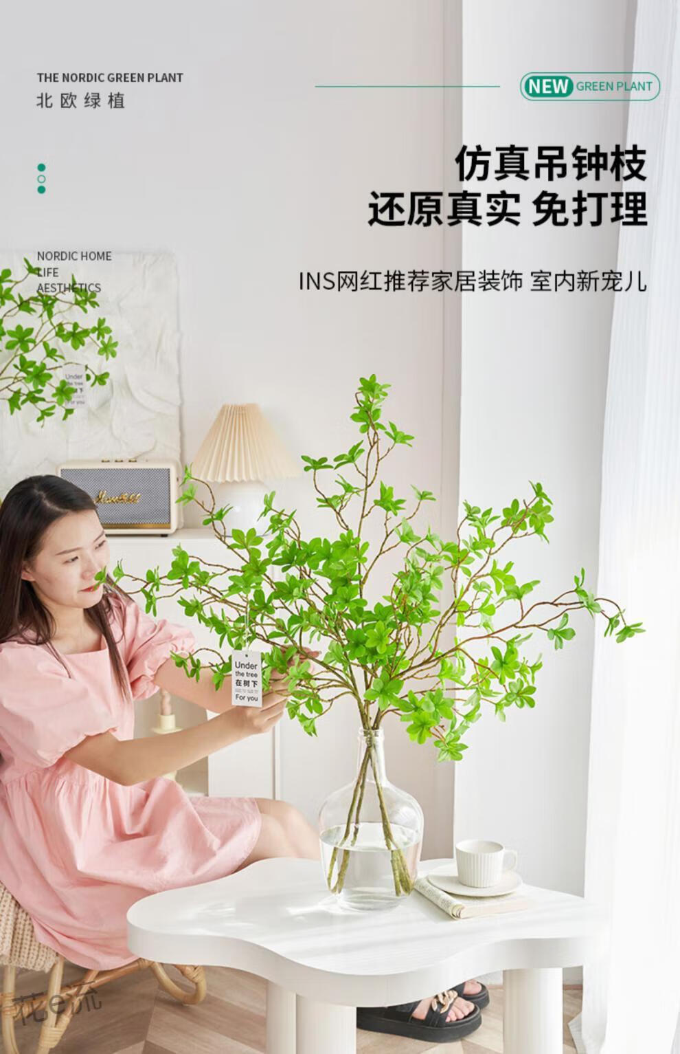 Flower e flow horse drunk wood simulation green plant Japanese hanging clock plant fake flower simulation flower indoor living room table decoration bouquet ornaments 110CM hanging clock 3 branches