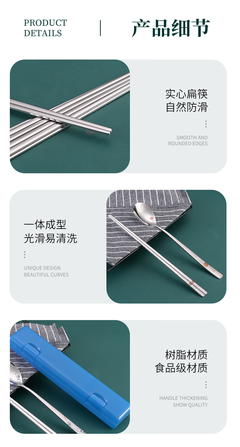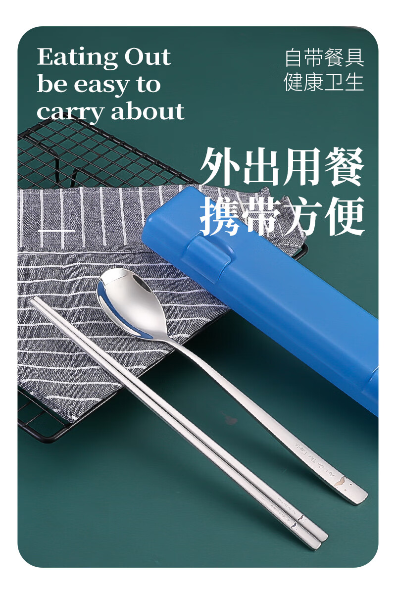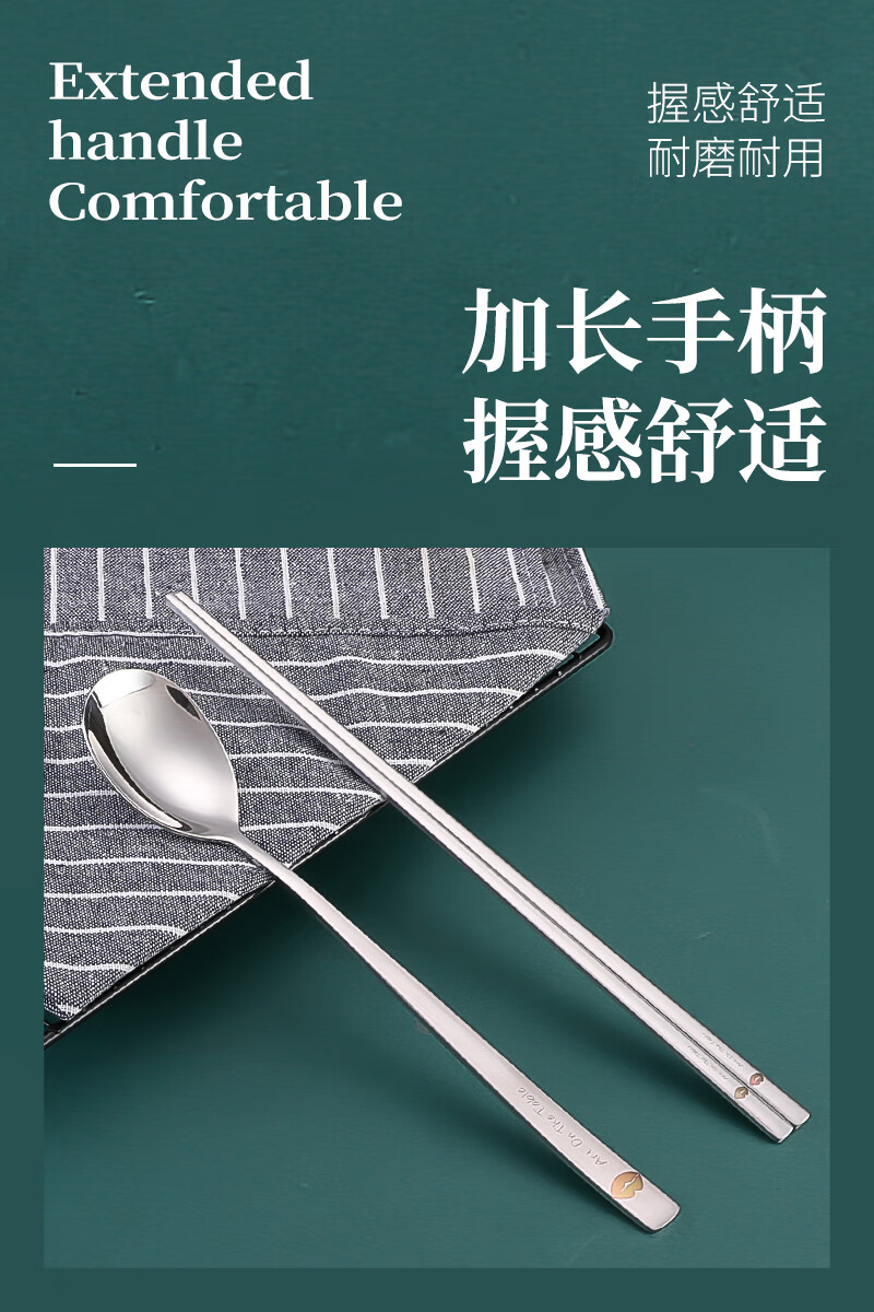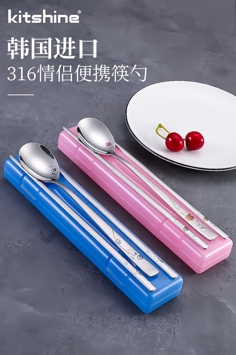 Kitshine Korea imported 316 stainless steel chopsticks and spoons couple outdoor portable tableware set 304 food grade student long handle lady's chopsticks and spoons