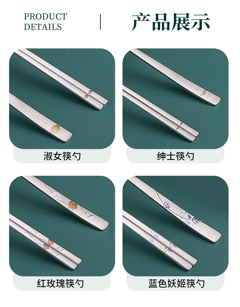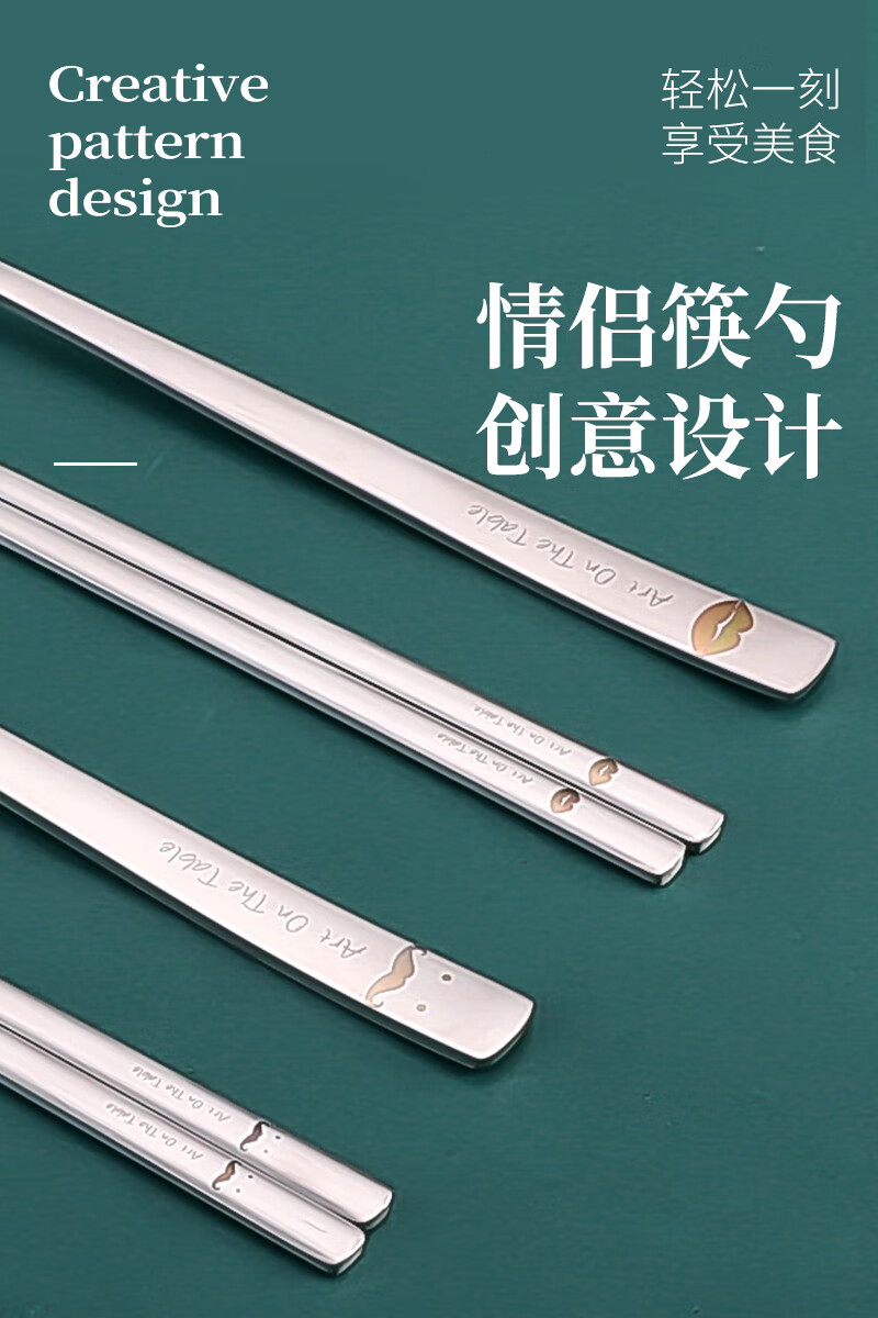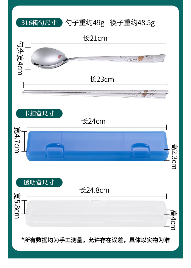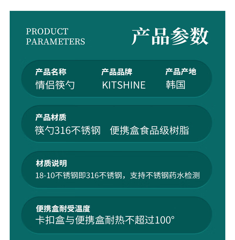 Kitshine Korea imported 316 stainless steel chopsticks and spoons couple outdoor portable tableware set 304 food grade student long handle lady's chopsticks and spoons