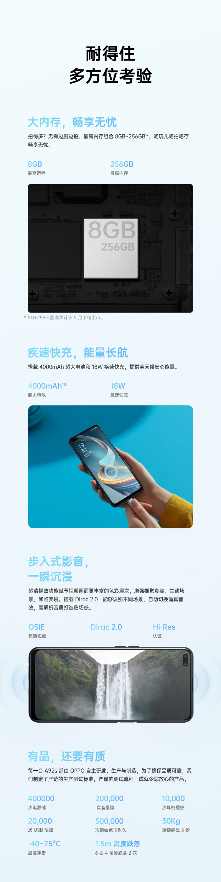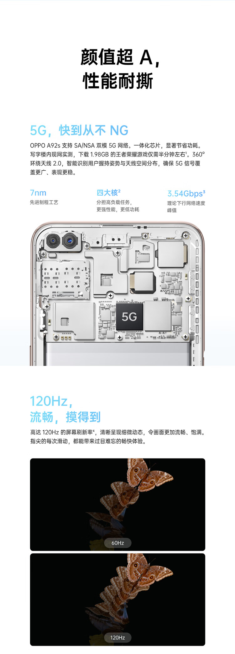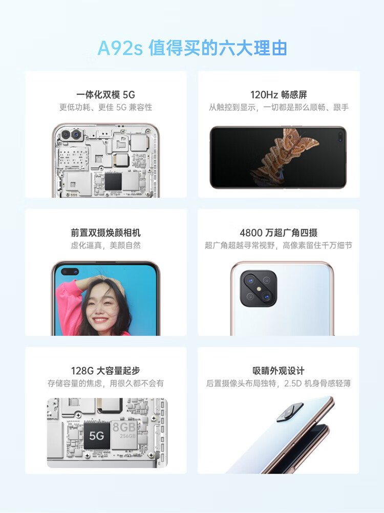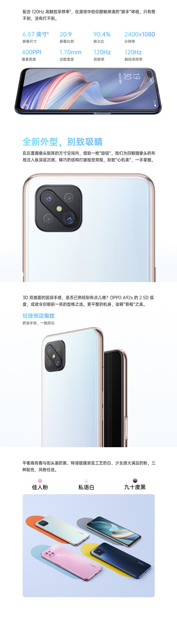 OPPO A92s 5G full network dual SIM second-hand mobile phone 120Hz full screen rear 4800W backup work phone Whisper White-95 new 8+128