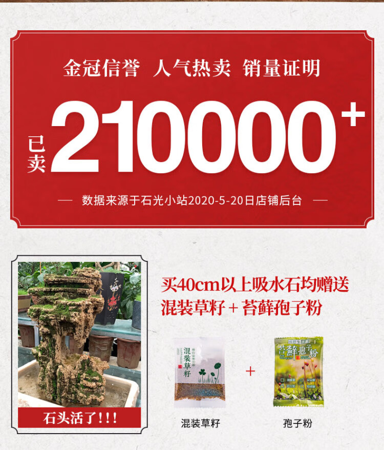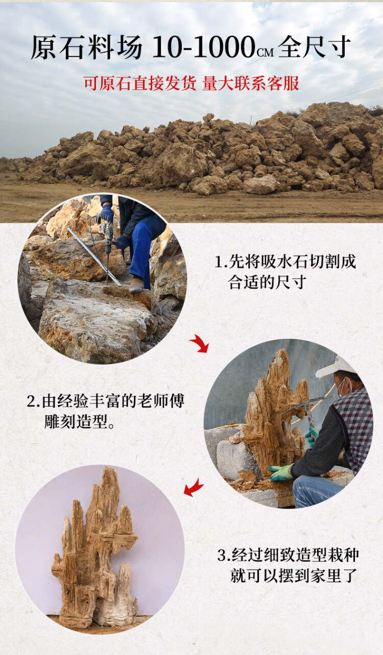 Shiguang Station absorbent stone natural stone bonsai fish tank courtyard large fish pond landscaping absorbent stone original stone water stone bonsai 10-14cm absorbent stone does not include basin