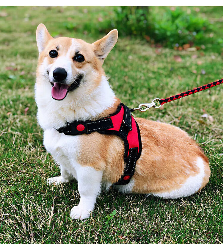 Five-tailed dog leash, dog leash, vest-type dog walking rope, harness, Corgi Shiba Inu medium and large dog chain, red harness + 1.5 meter leash S (recommended 10-18 Jin Jin equals 0.5 kg)