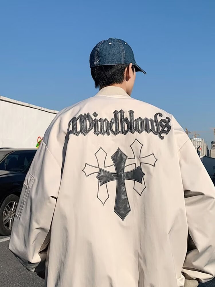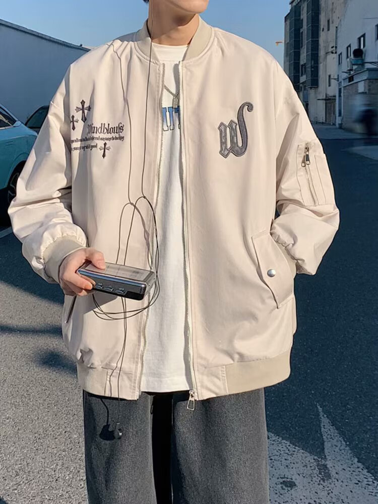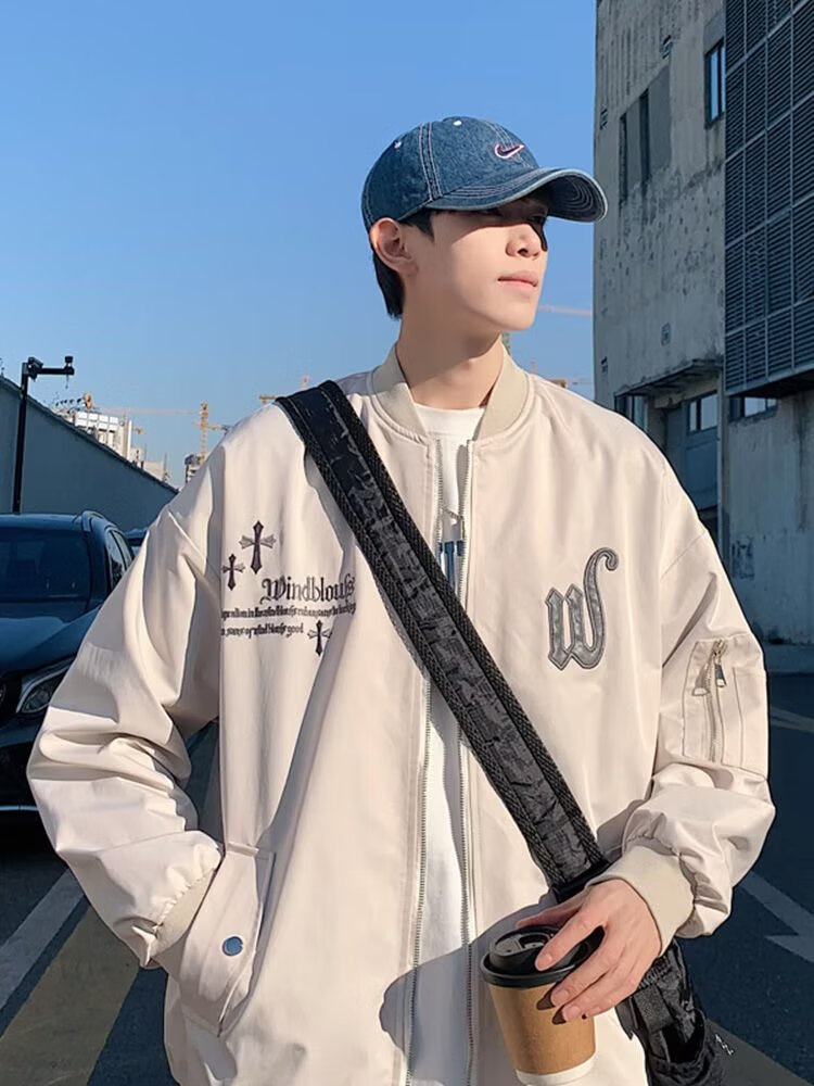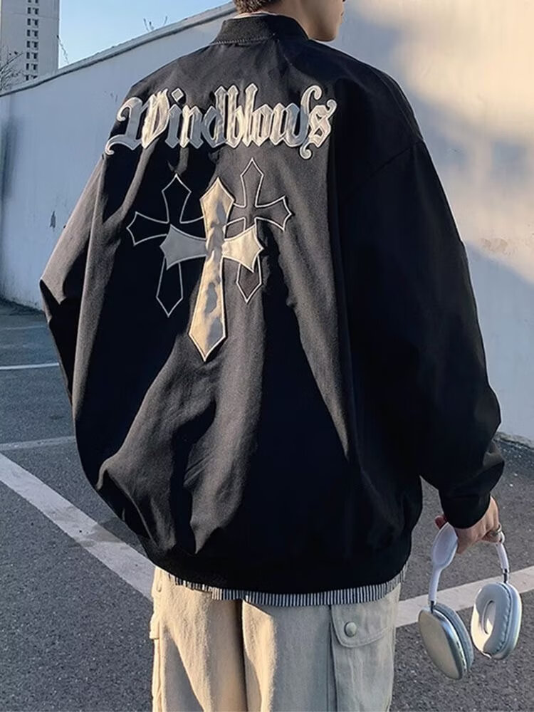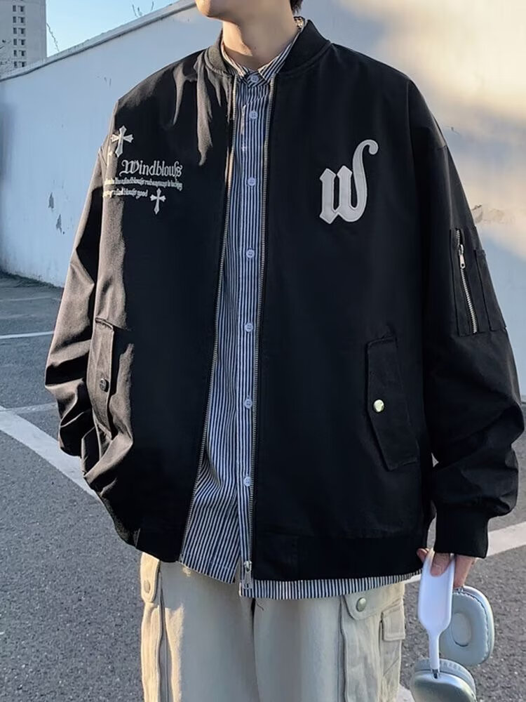 POUM jacket men's European and American high street jacket men's and women's trendy brand handsome couple autumn American baseball uniform men's casual loose JS-898 black regular L (120-135Jin Jin equals 0.5 kg)
