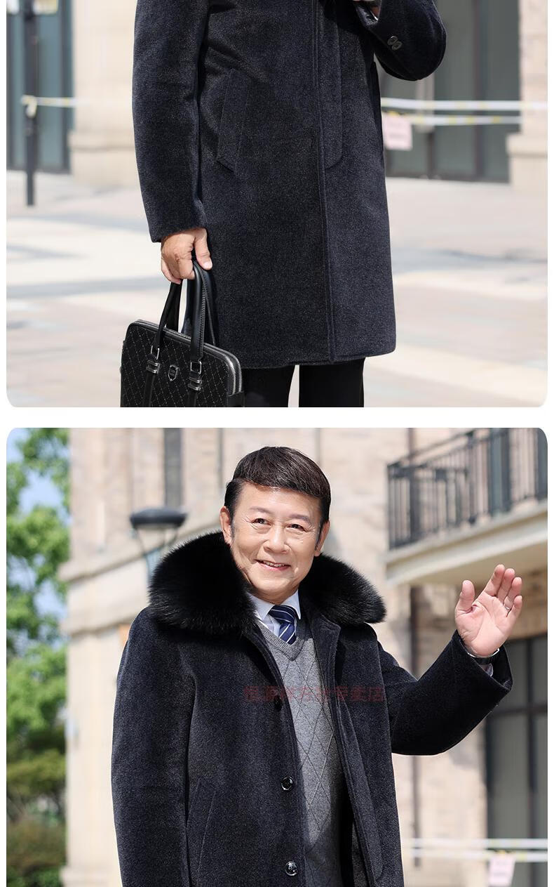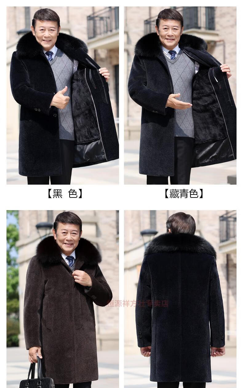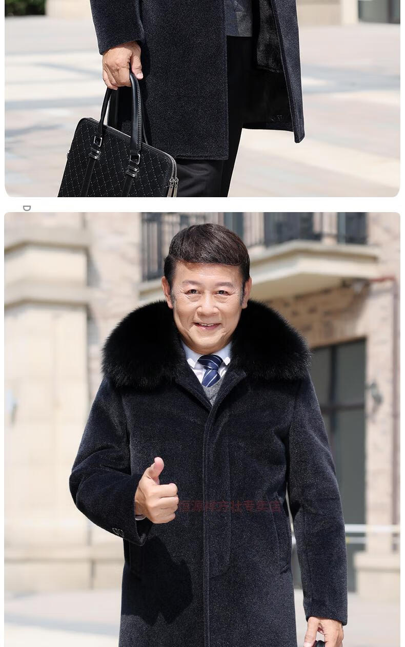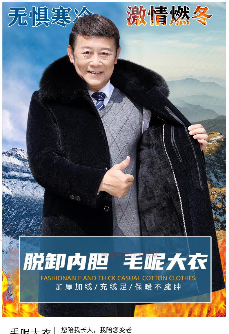 Hengyuanxiang шерстяное мужское зимнее пальто для мужчин среднего и пожилого возраста, хлопковое пальто для пожилых людей, бархатное утолщенное шерстяное пальто, дедушкина одежда, темно-синий (обычный меховой воротник) 2XL 185