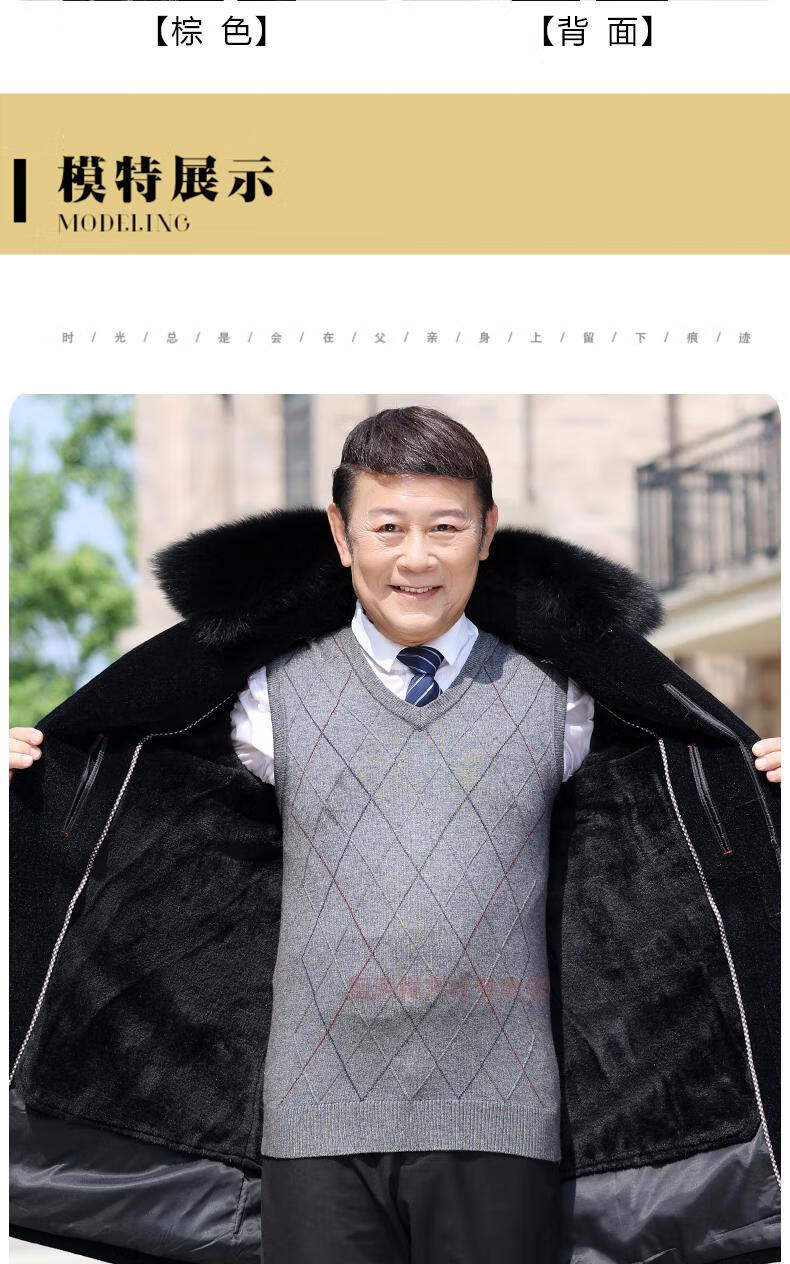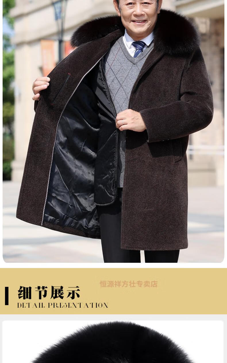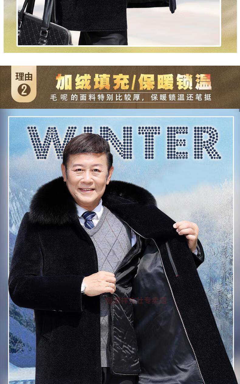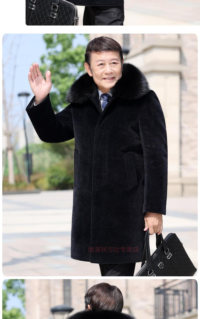 Hengyuanxiang шерстяное мужское зимнее пальто для мужчин среднего и пожилого возраста, хлопковое пальто для пожилых людей, бархатное утолщенное шерстяное пальто, дедушкина одежда, темно-синий (обычный меховой воротник) 2XL 185
