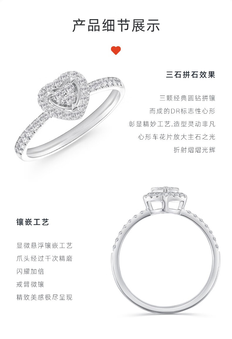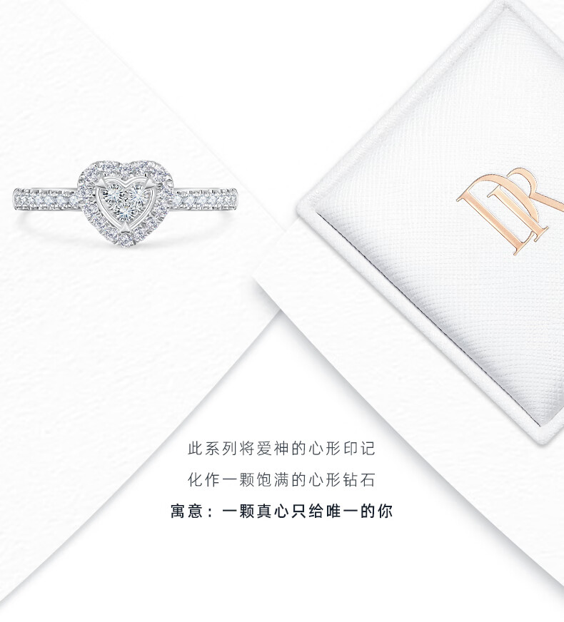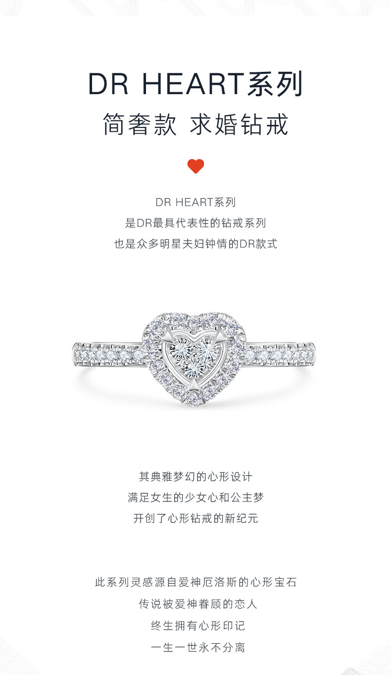 DR ready stock DR Heart Proposal Diamond Ring DR HEART simple luxury platinum diamond ring holiday gift Total about 22 points ready stock sparkling