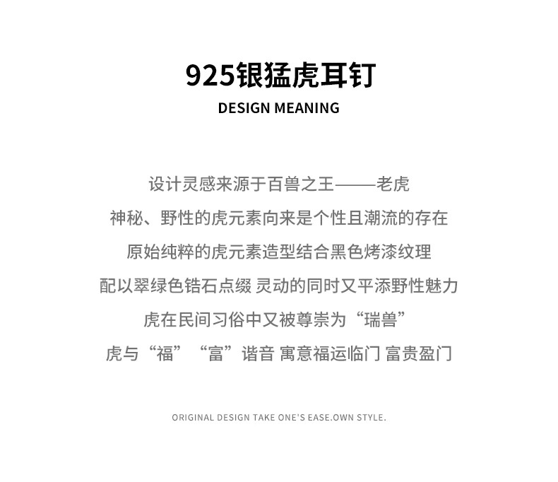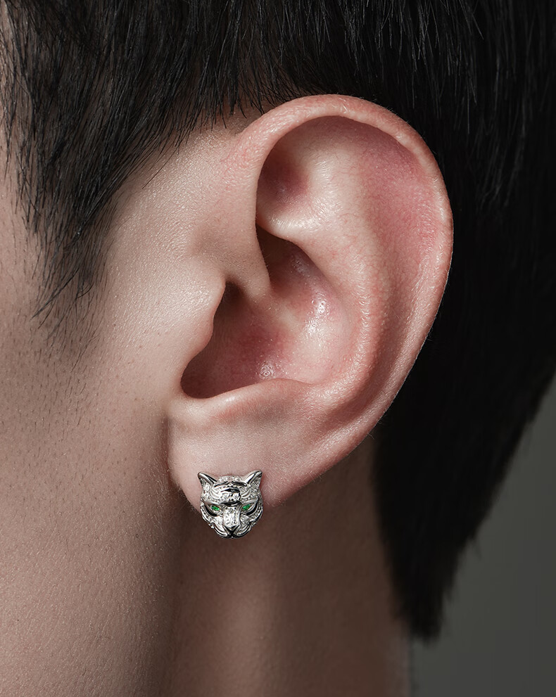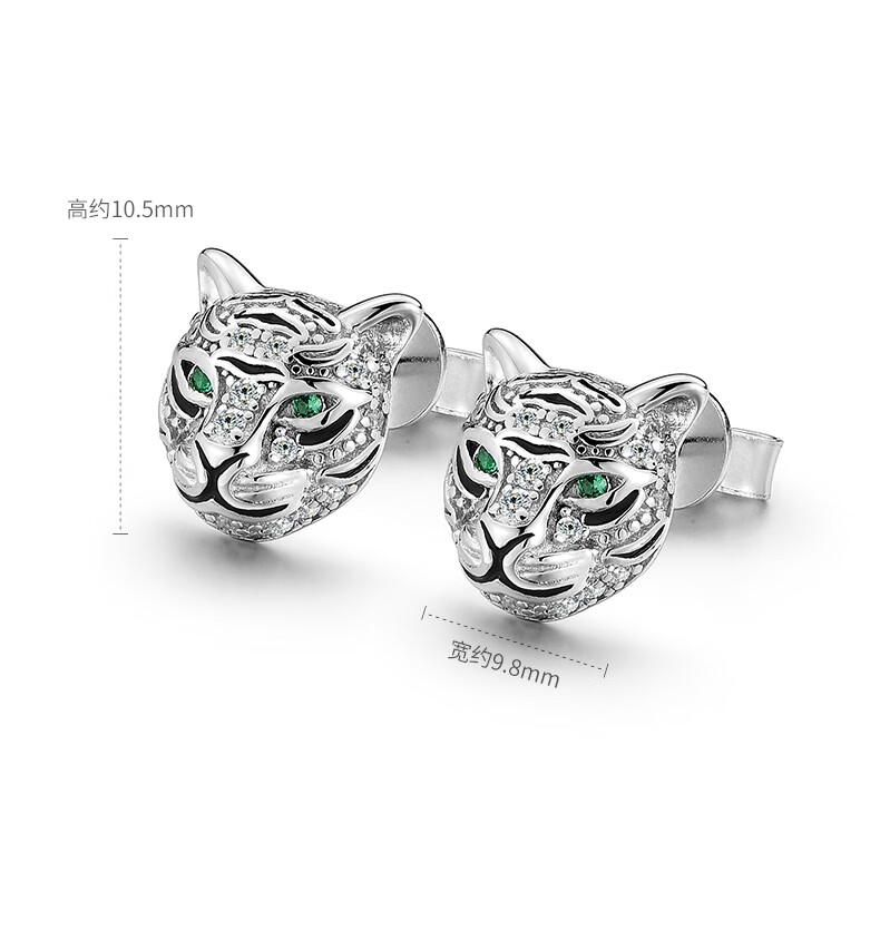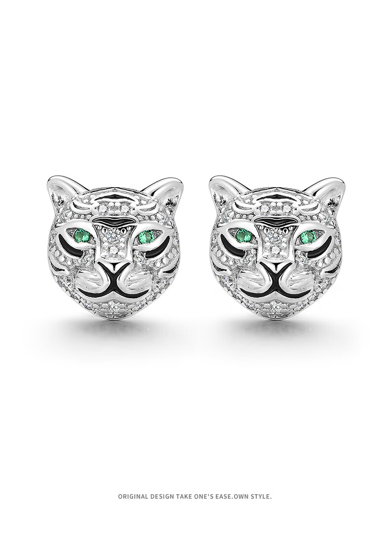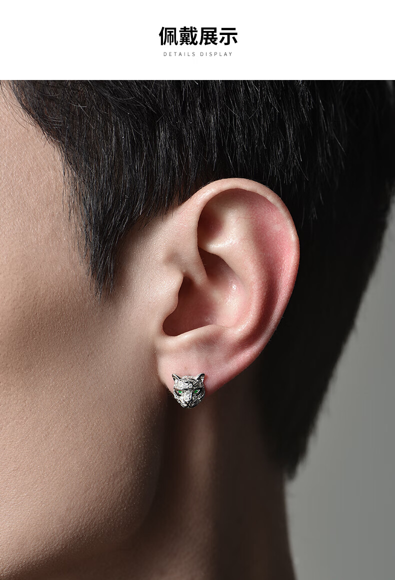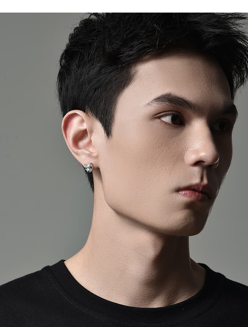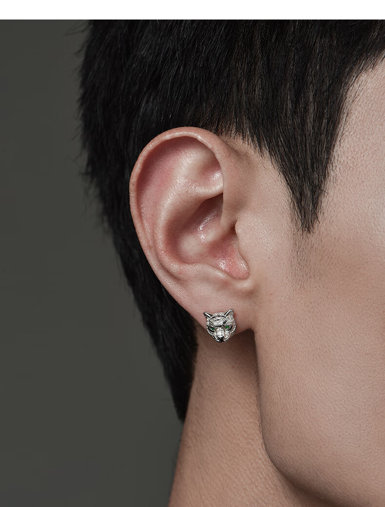Mingyang Decorative Sea 925 Silver Full Diamond Tiger Earrings Men's Single Earrings Trendy Original Personality Light Luxury Fashion Versatile Earrings Pair