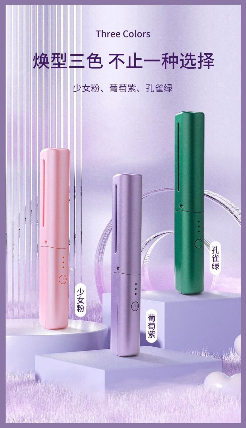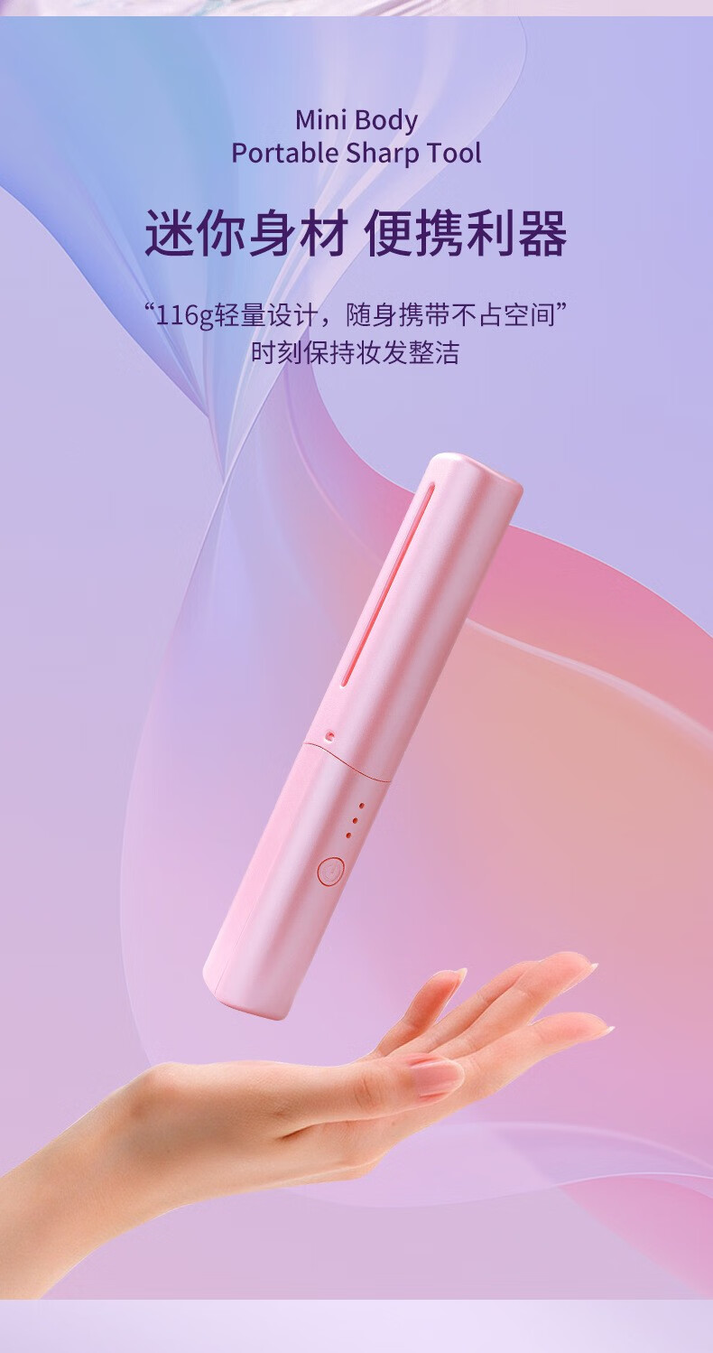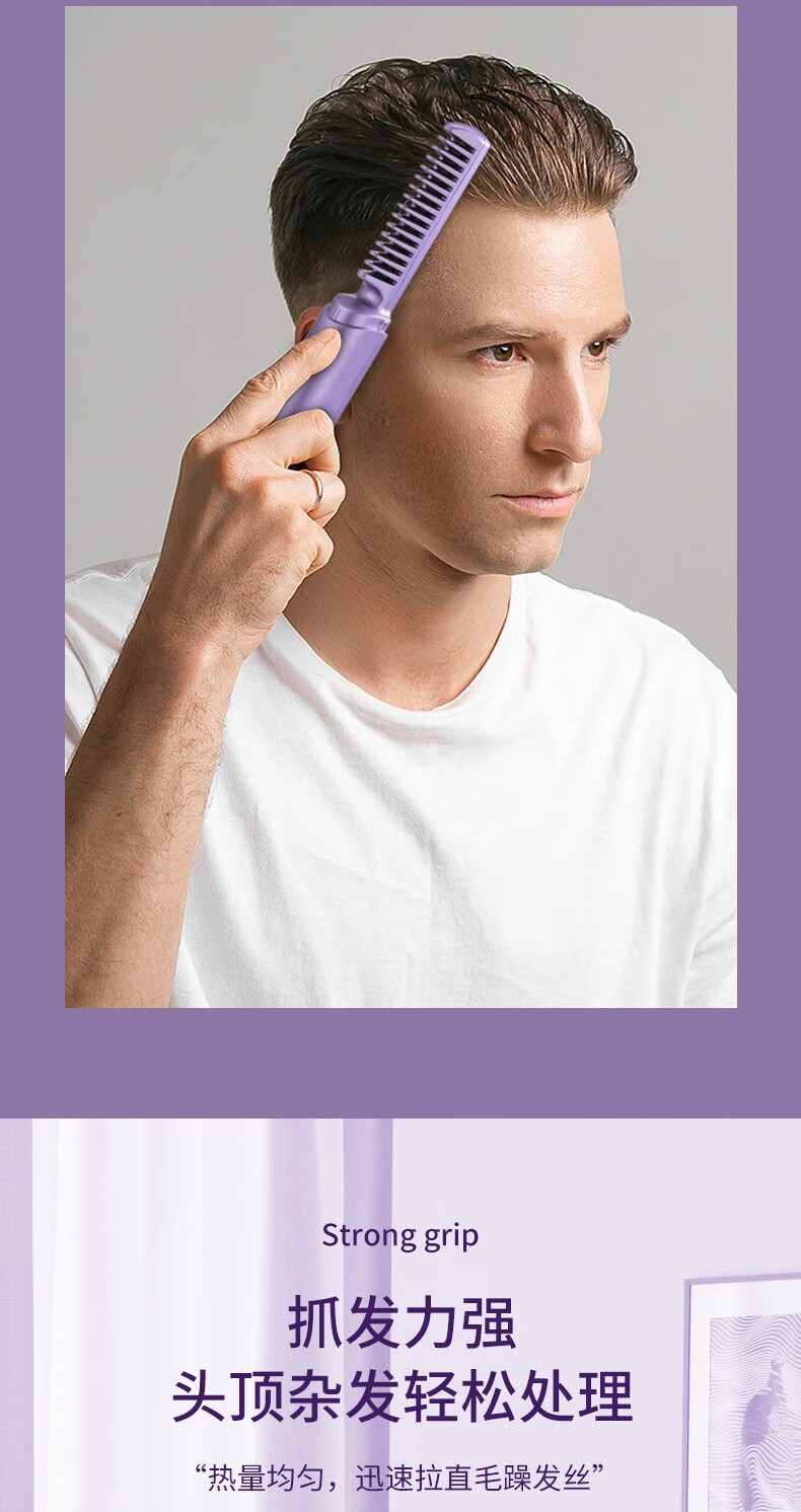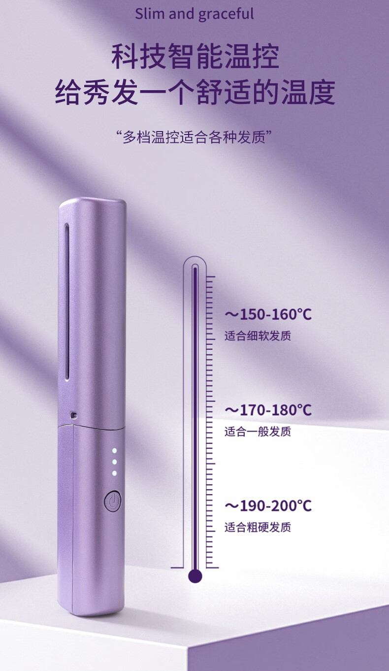 Wireless hair straightening comb, negative ion curling iron, nourishes hair without damaging hair, curls and straightens, dual-purpose lazy curling iron, home portable hair styling comb, electronic comb straightening splint, wireless curling iron, hibiscus purple, 3-level temperature control + negative ion hair care