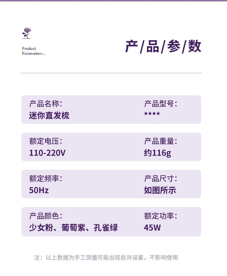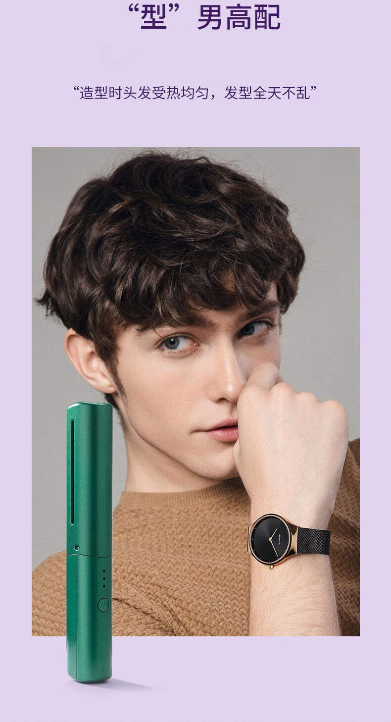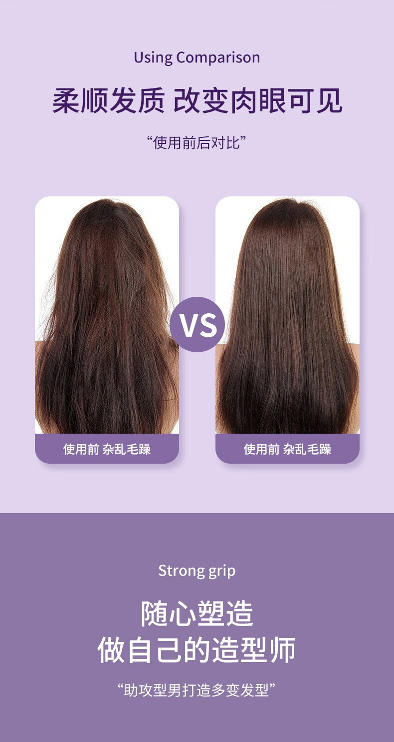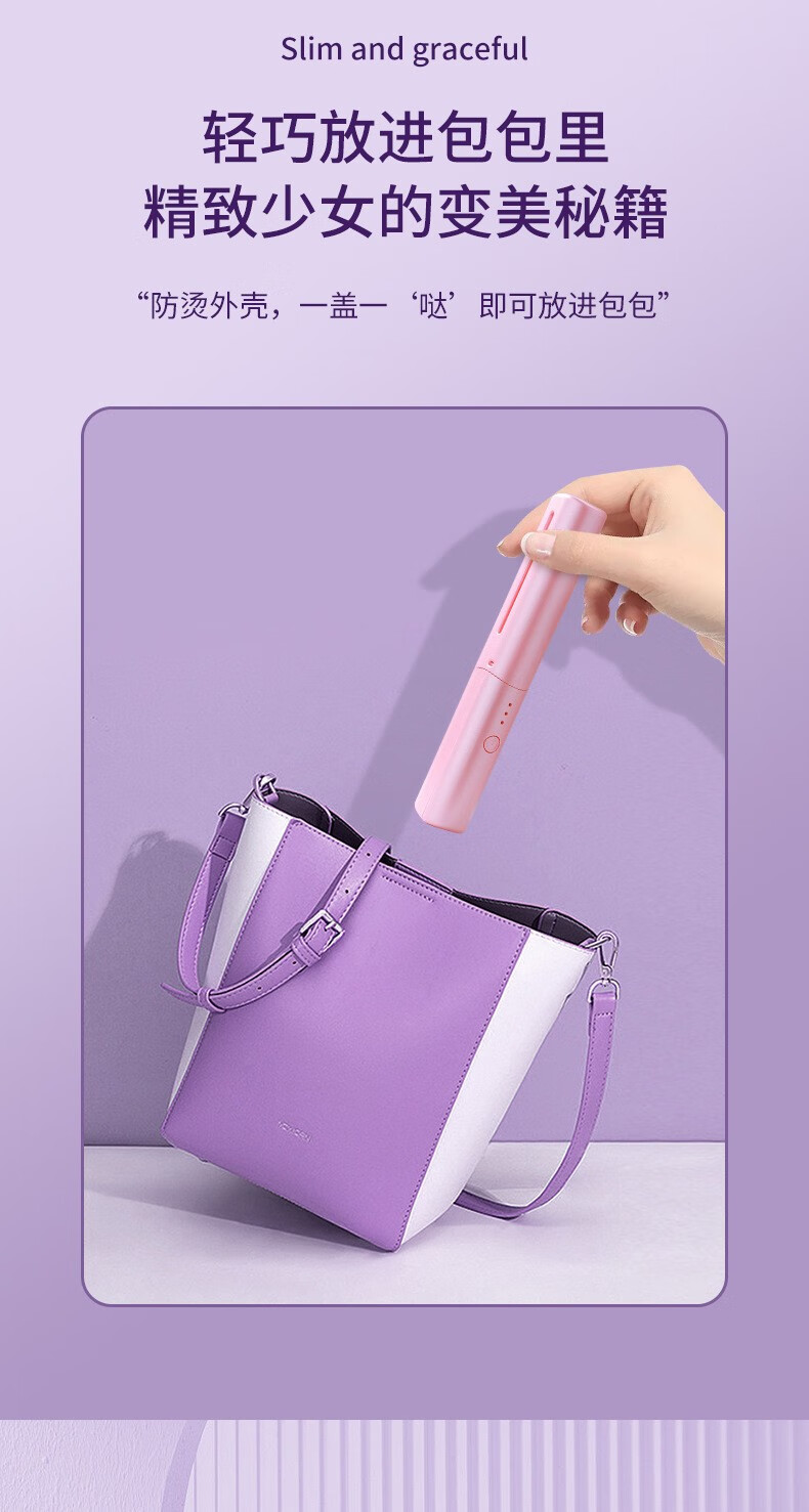 Wireless hair straightening comb, negative ion curling iron, nourishes hair without damaging hair, curls and straightens, dual-purpose lazy curling iron, home portable hair styling comb, electronic comb straightening splint, wireless curling iron, hibiscus purple, 3-level temperature control + negative ion hair care
