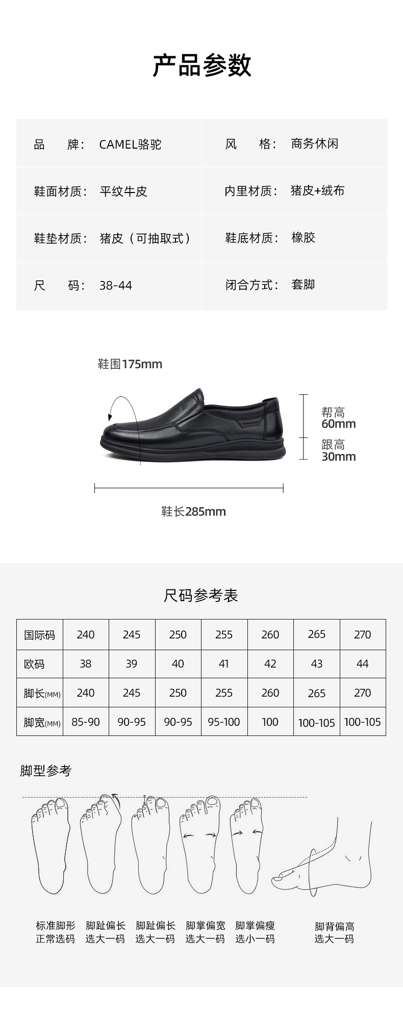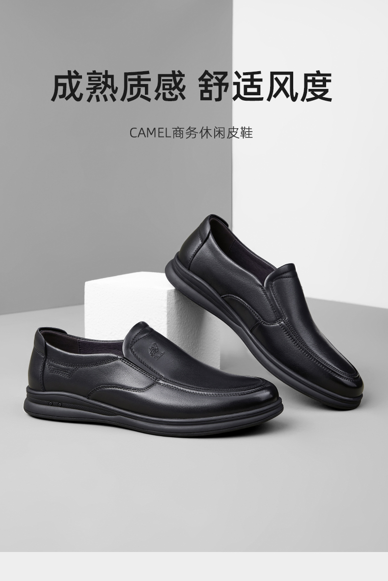 Camel (CAMEL) men's shoes, business casual shoes, middle-aged men's soft leather soft sole cowhide leather shoes for men A132287560-1 Black 39