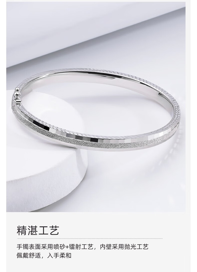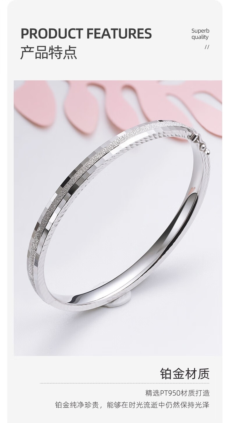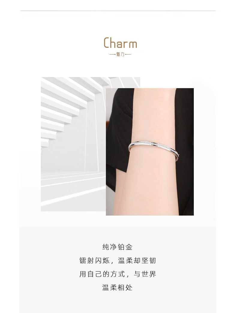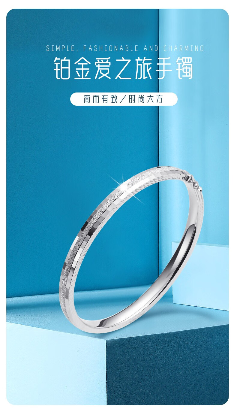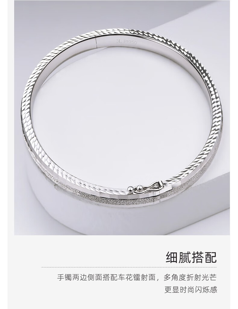 Centennial Baojinxiang platinum bracelet women's platinum bracelet pt950 love journey bracelet semi-solid oval concubine bracelet 53mm about 7.6-7.8 grams wide about 3.5mm