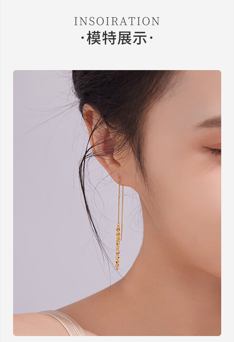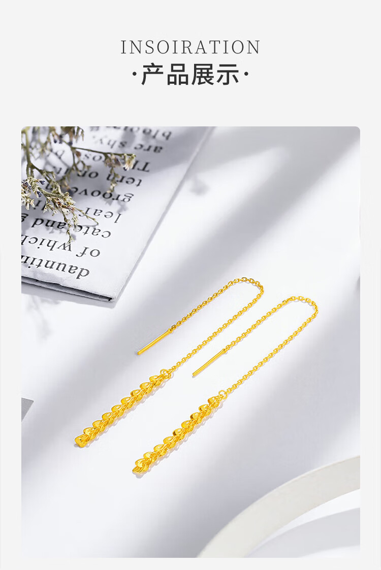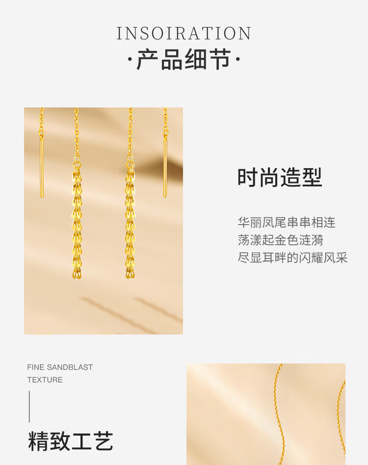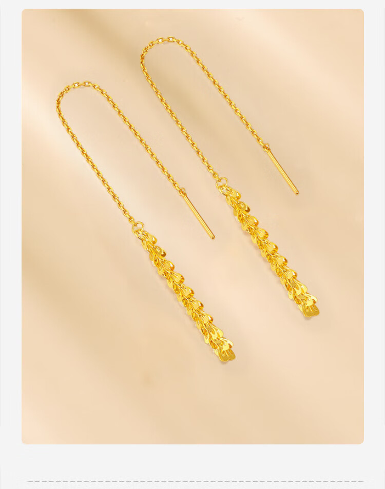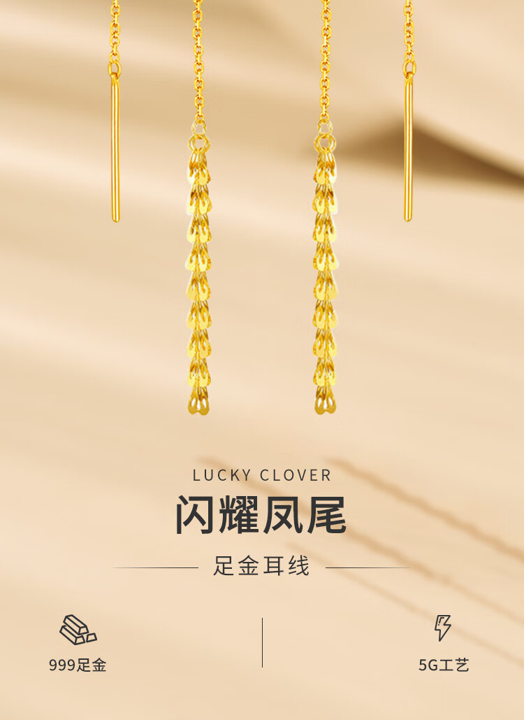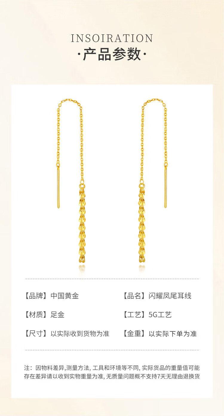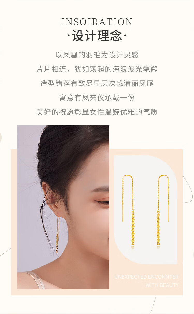 CHINA GOLD Phoenix Tail Gold Ear Thread Women's Fashion Pure Gold Earrings Earrings Holiday Birthday Mid-Autumn Festival Gifts for Wife and Girlfriend Phoenix Tail Ear Thread One Pair About 1g