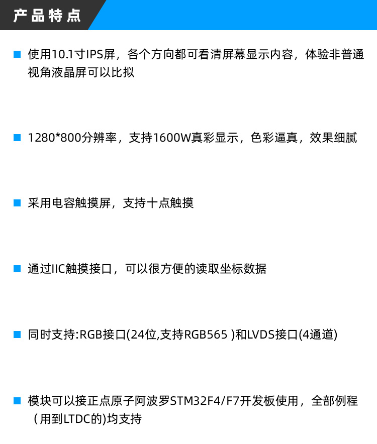 Module Zhengdian Atomic 10.1-inch RGB/LVDS LCD module IPS capacitive touch LCD screen 10.1-inch RGB screen (capacitive screen, 800*1280)