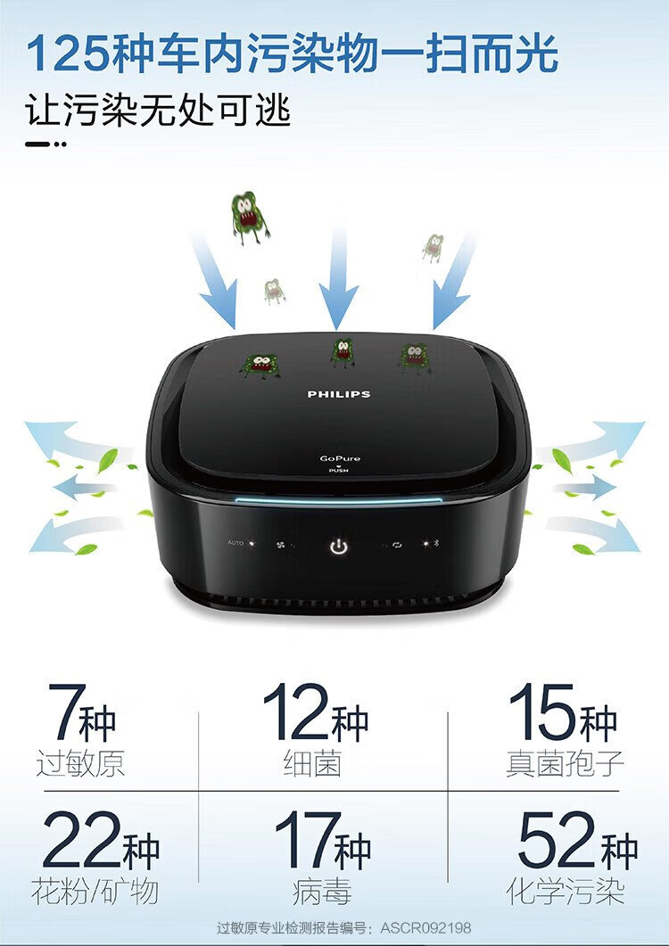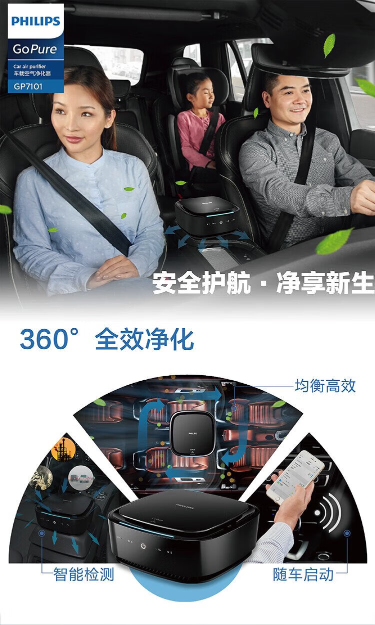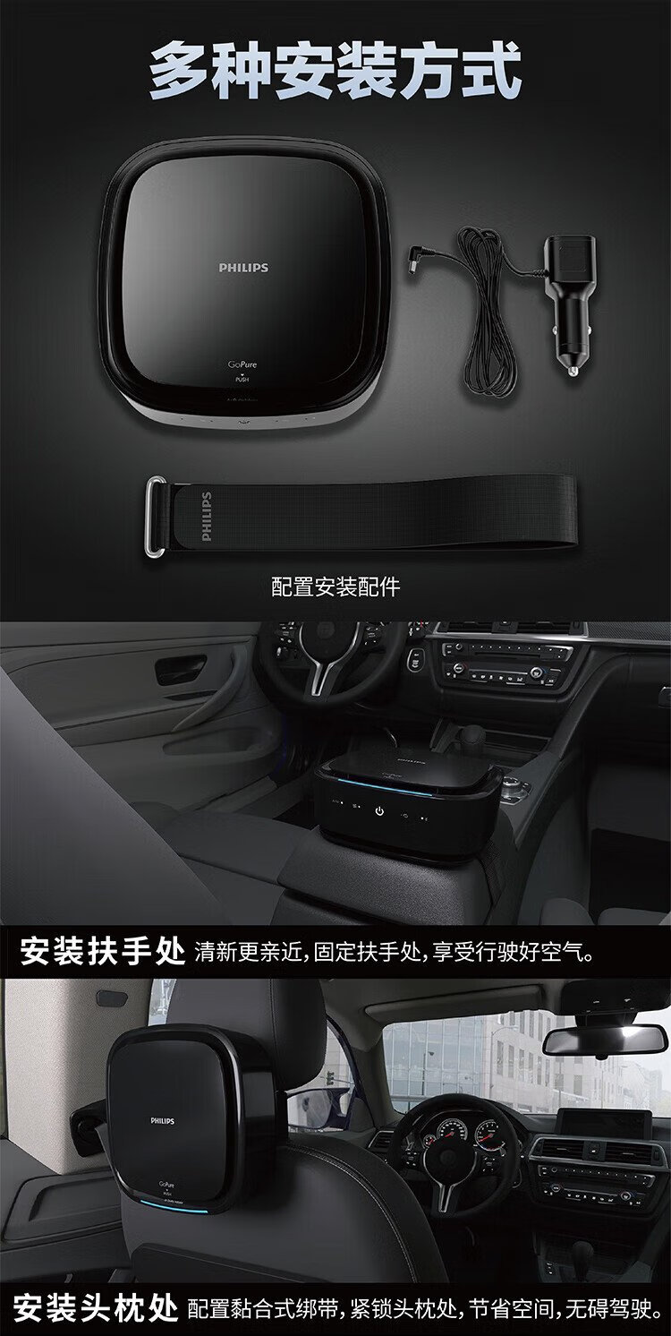 Philips (PHILIPS) car air purifier removes formaldehyde, removes odors, disintegrates viruses and bacteria, Portable sterilization, cup shape, GP5603 pink, official standard configuration