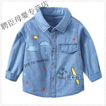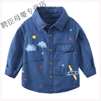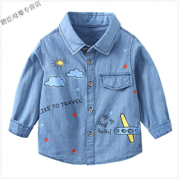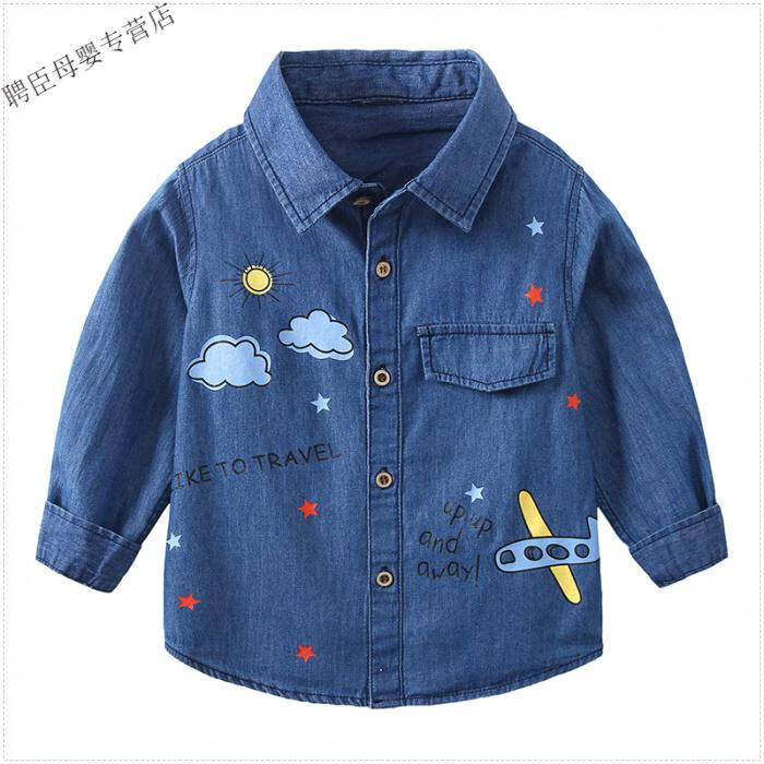 G.duck Boys Denim Shirt Pure Cotton 2026 Spring Children's Lapel Shirt Western Style Korean Baby Jacket Spring and Autumn Clothes Dark Denim Color 100 Suitable for Height 90-100cm Age 3-4 Years Old