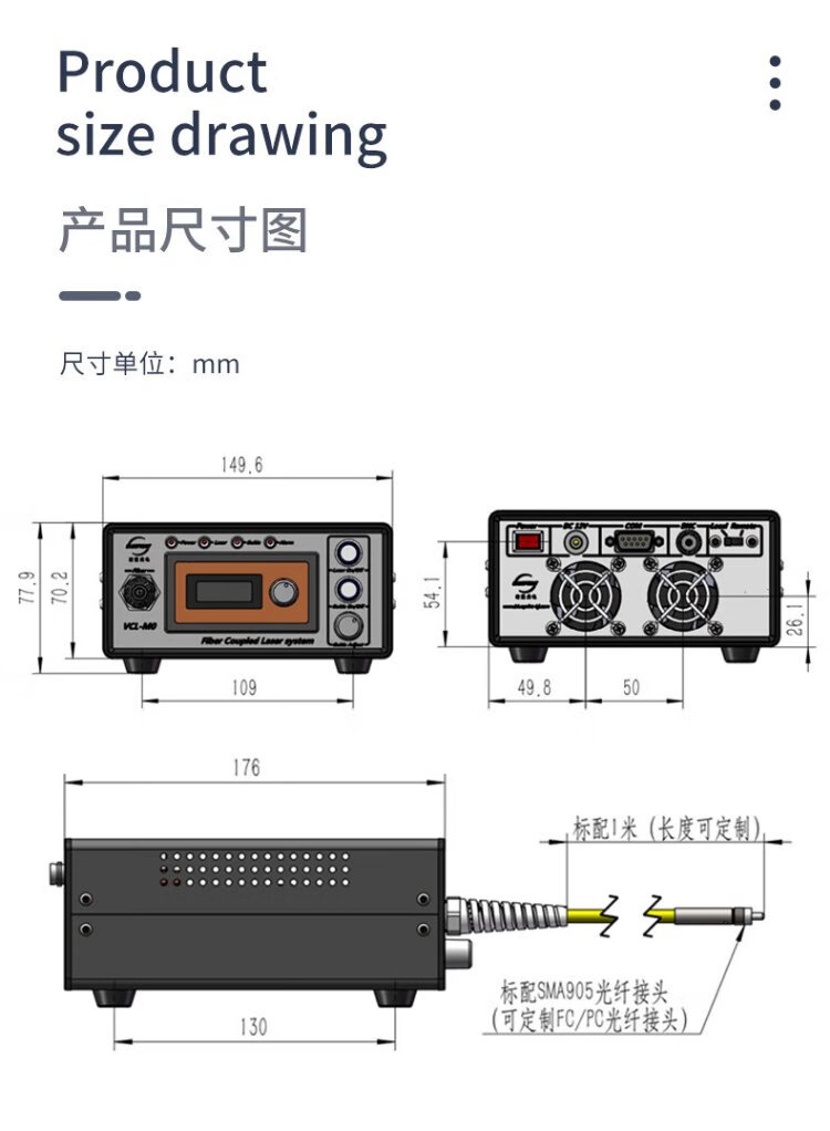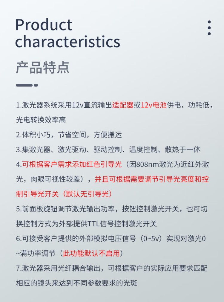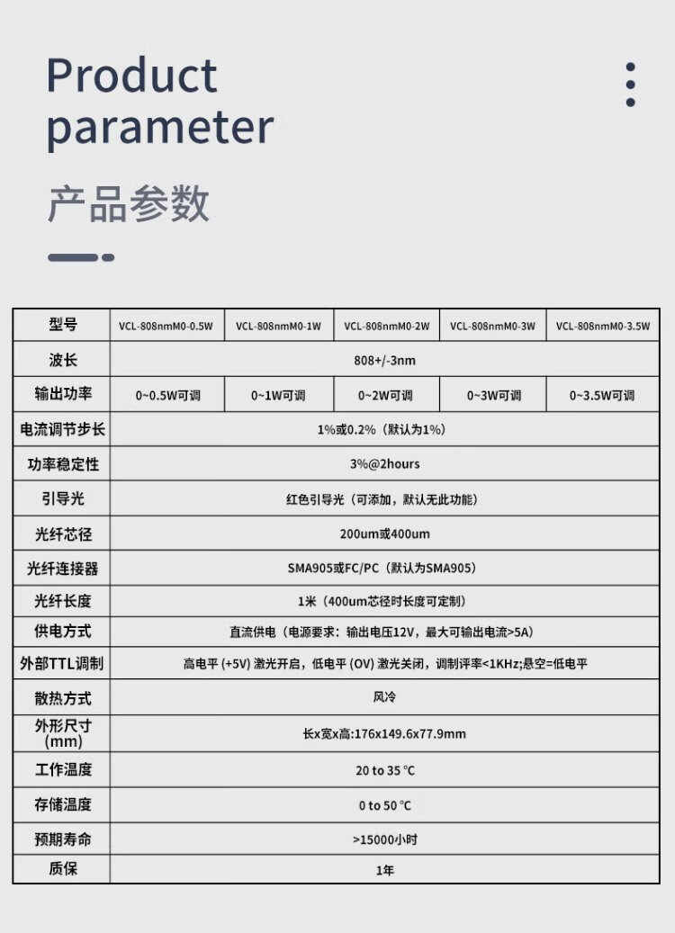 808nm laser 0.5W1W2W3W3.5W, mouse biological cell irradiation photothermal photodynamic experiment, white 0-3W adjustable