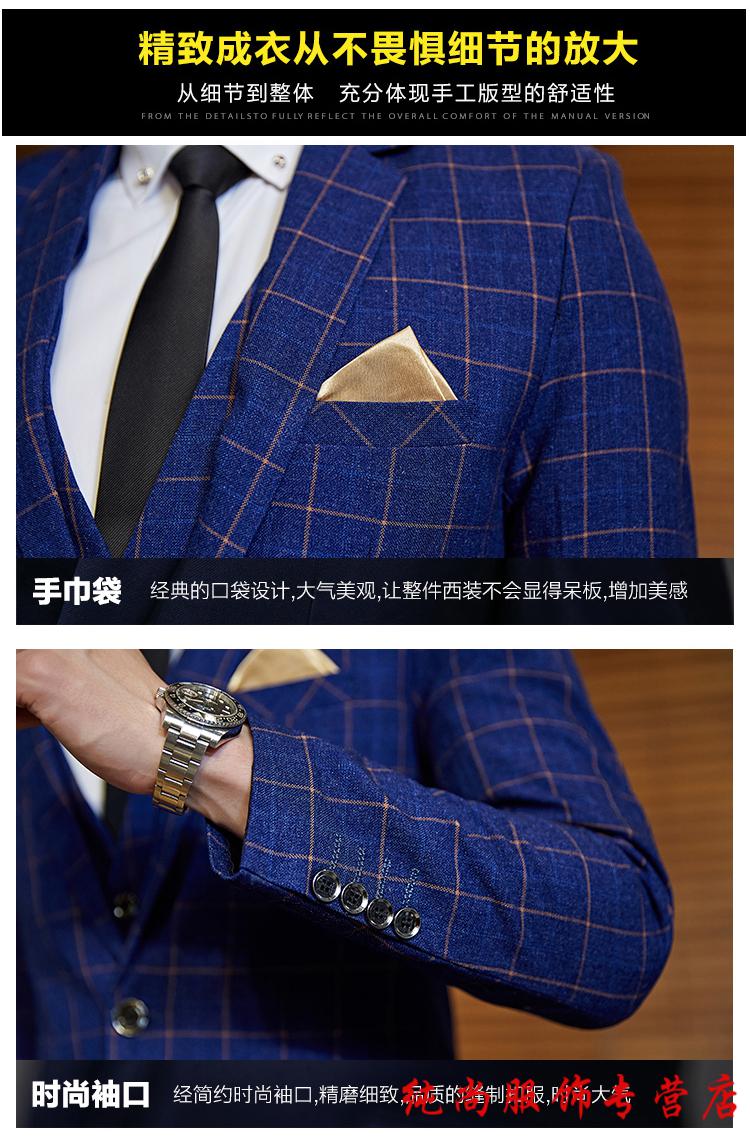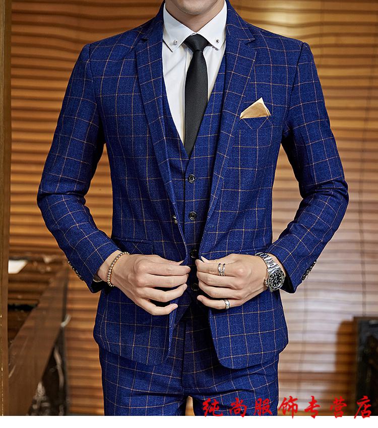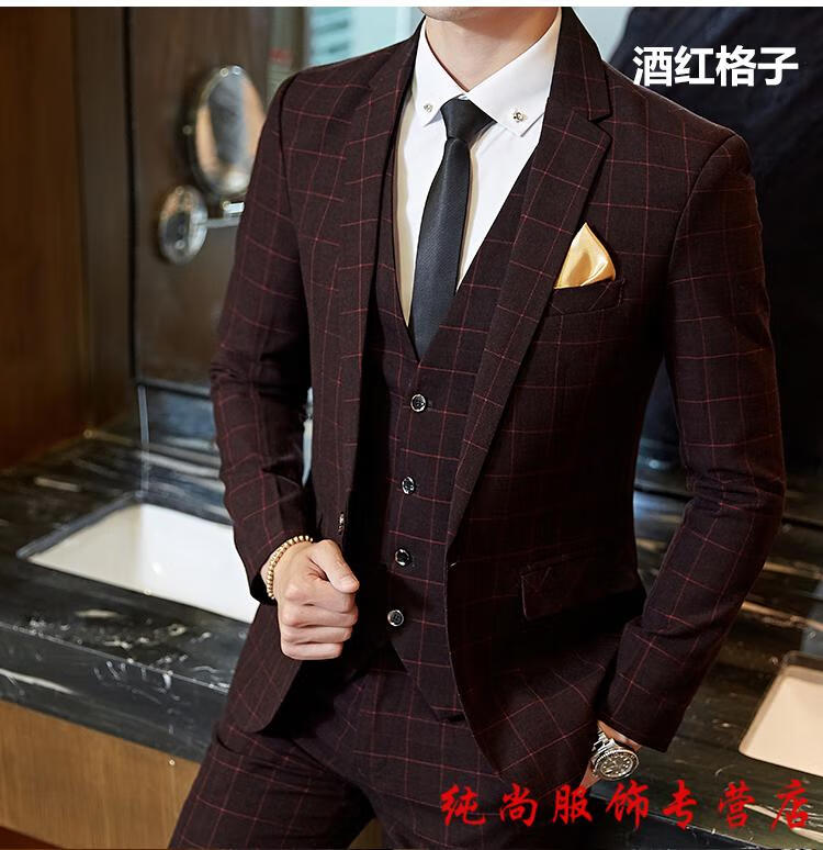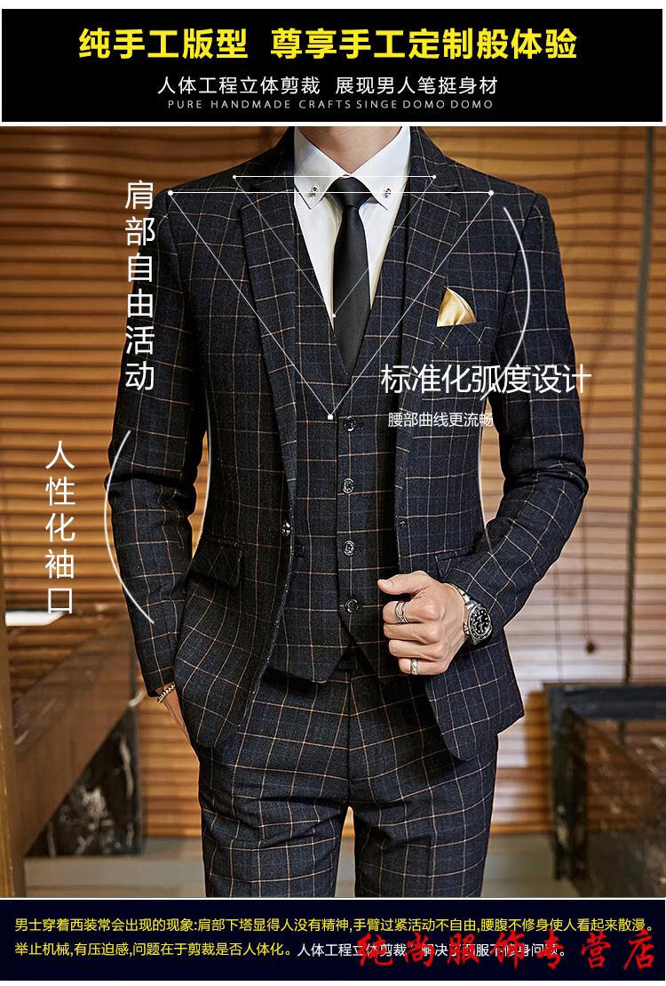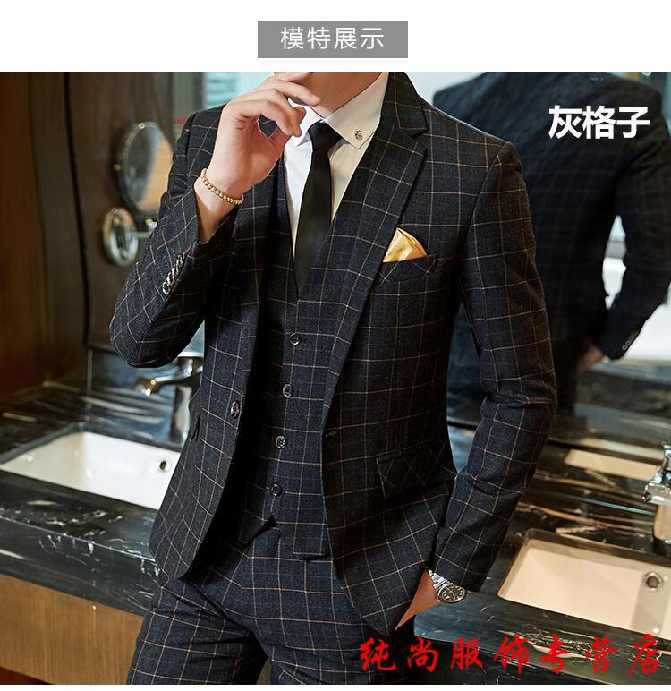 Playboy (PLAYBOY) Spring and Autumn Plaid Suit Suit Men's Korean Slim Suit Youth Casual Wedding Dress Jacket Gray (Suit+Trousers+Vest) + Tie 2XL