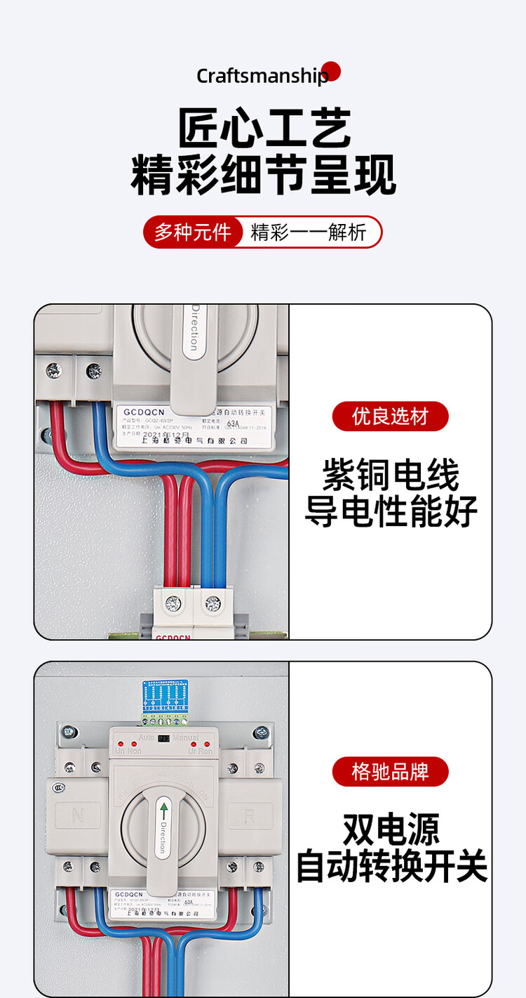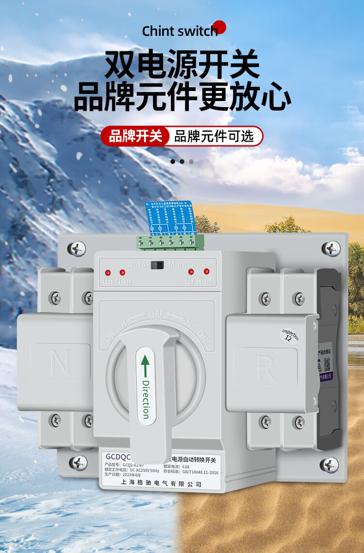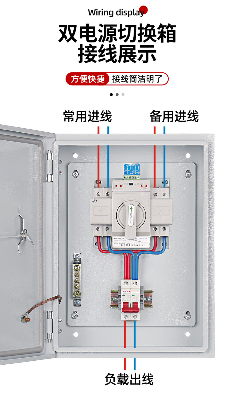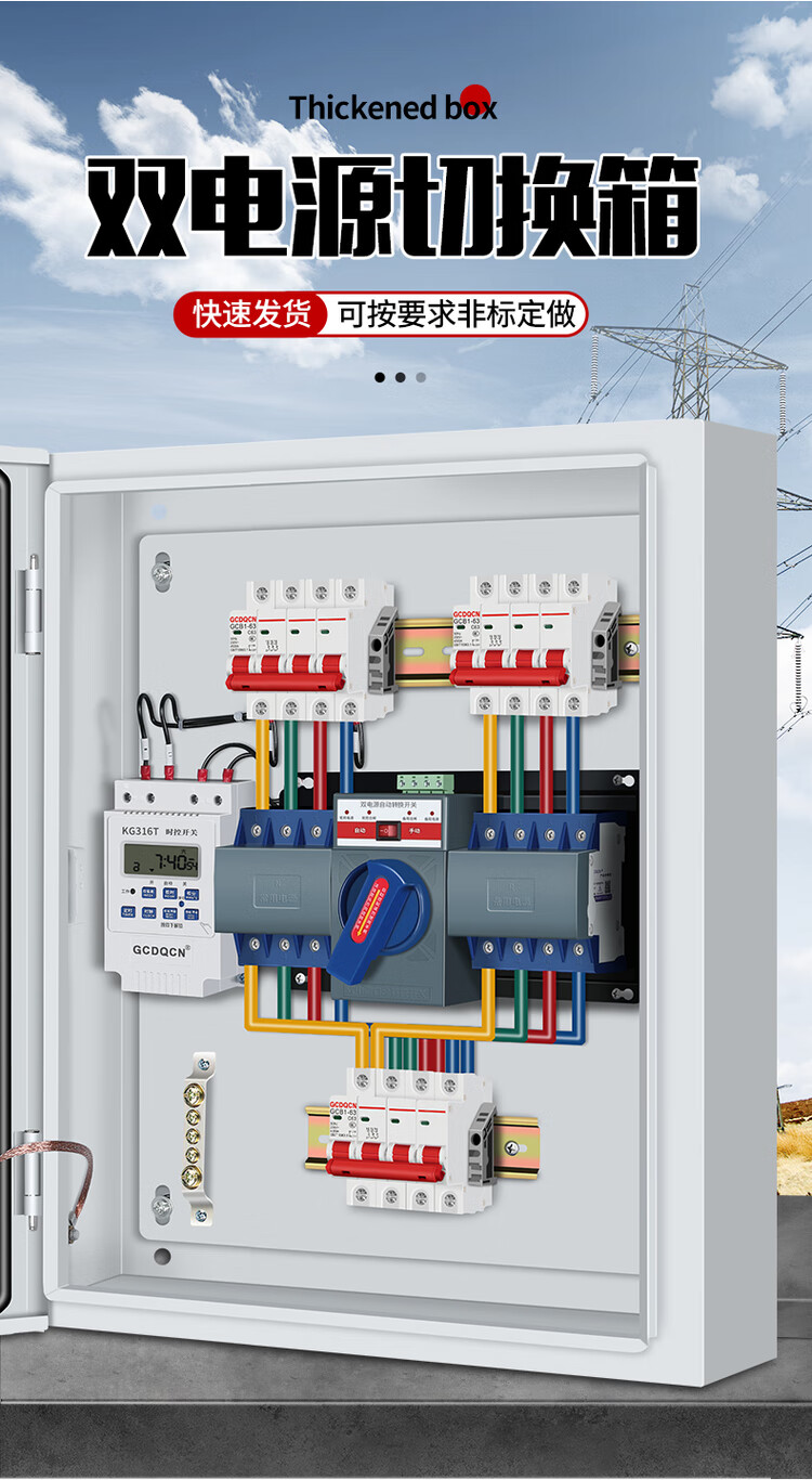 Dual power automatic transfer switch box 220V mains generator regularly switches 380V low voltage complete distribution box 2P63A dual power supply box