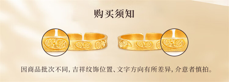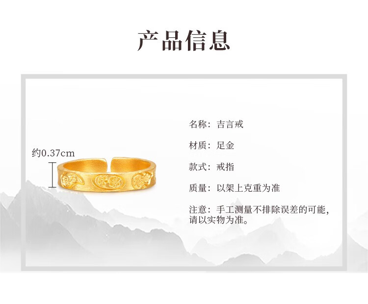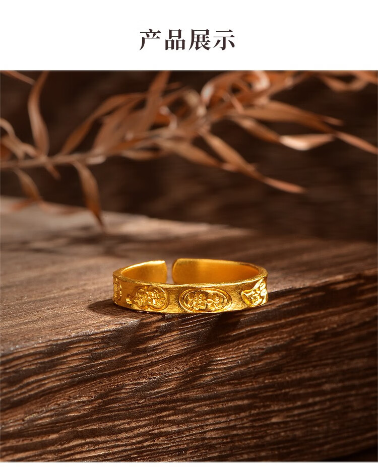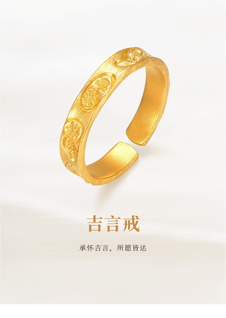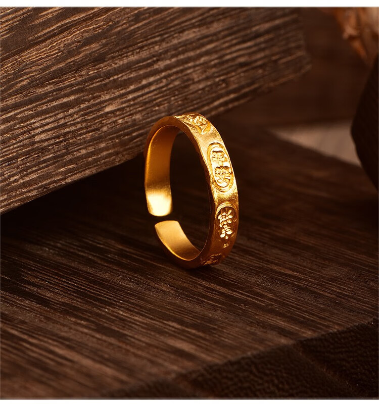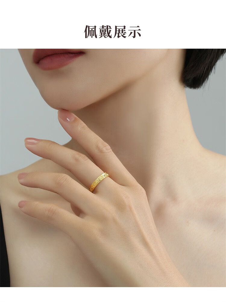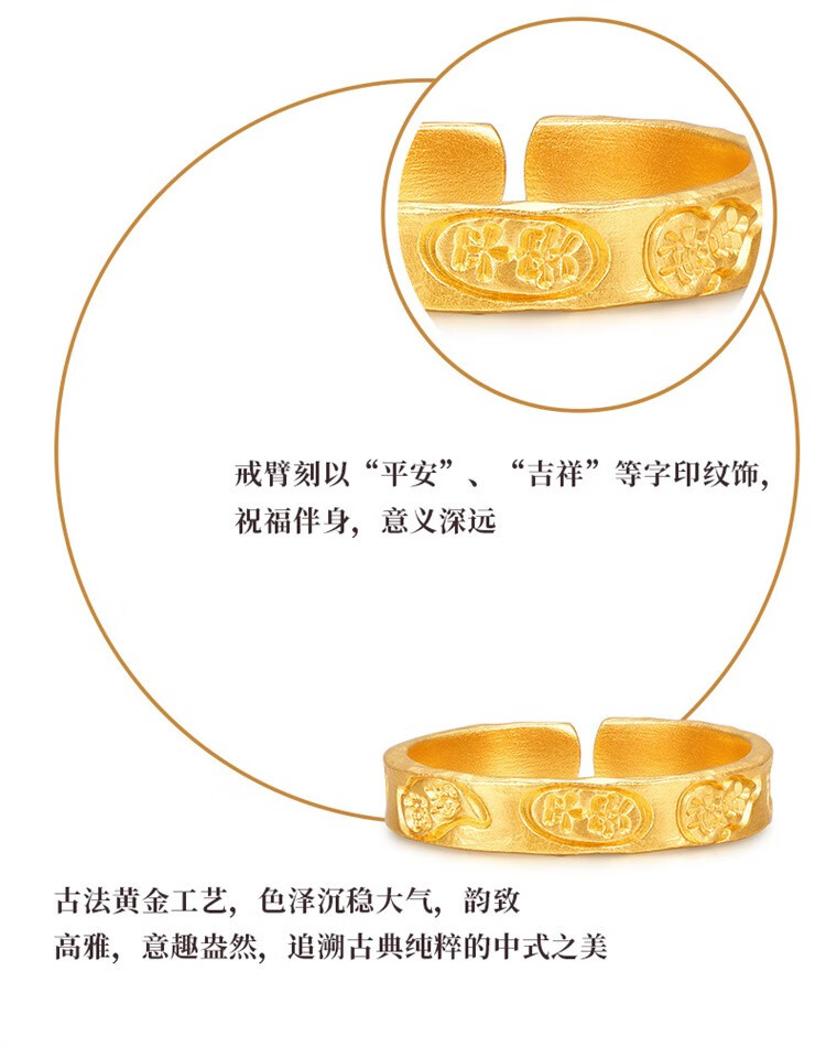 Ming brand jewelry pure gold ancient gold auspicious words ring Ping An Baifu solid ring AFM0276 labor cost 500 pure gold ring about 3.71 grams