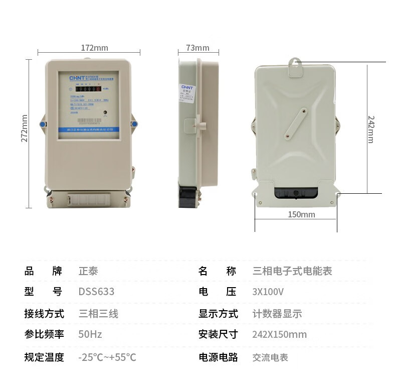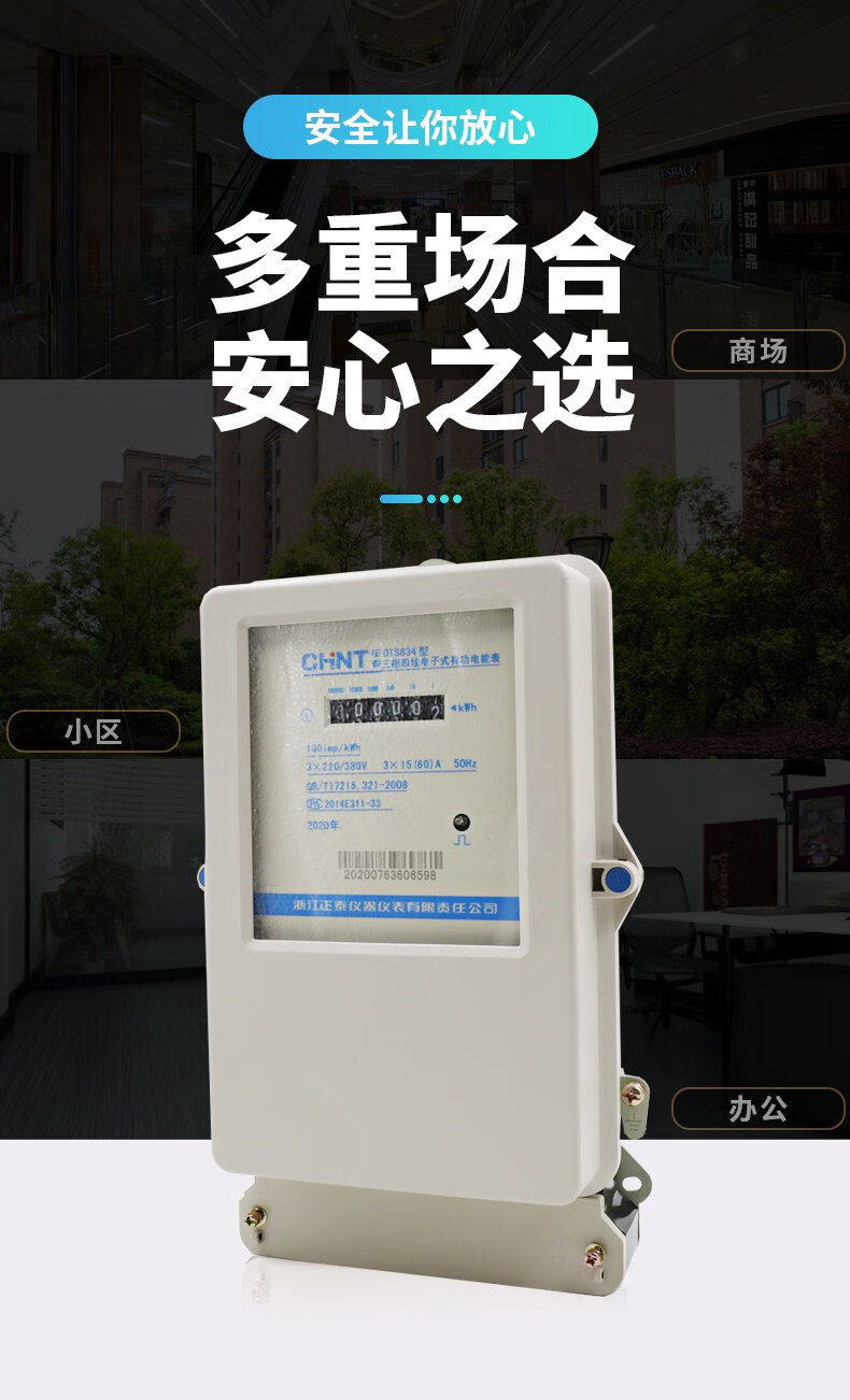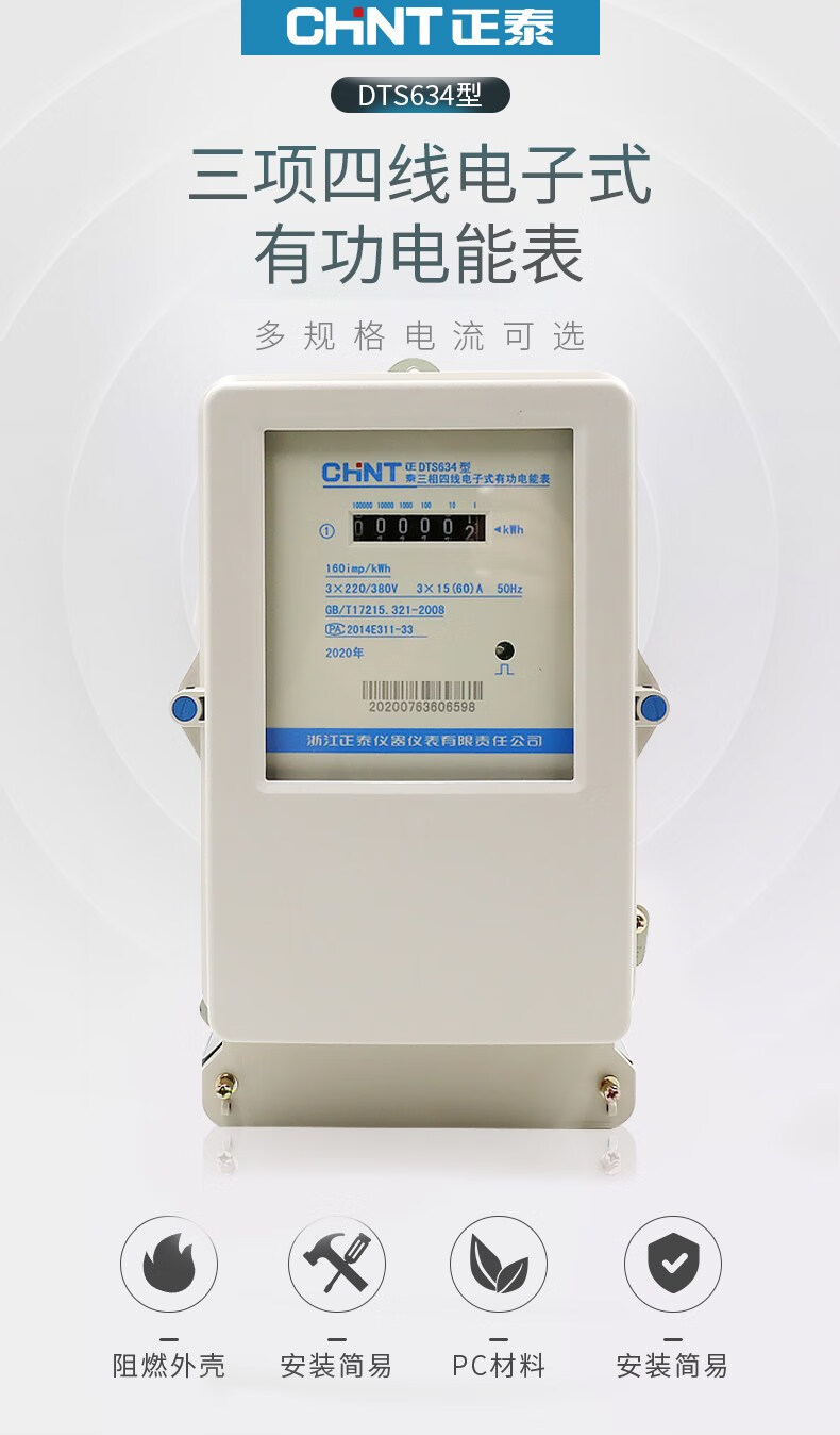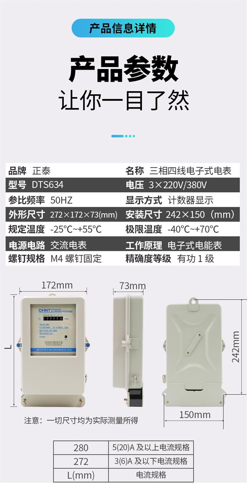 Three-phase four-wire electronic electricity meter DTS634 electric energy meter 380V factory transformer fire meter 100A