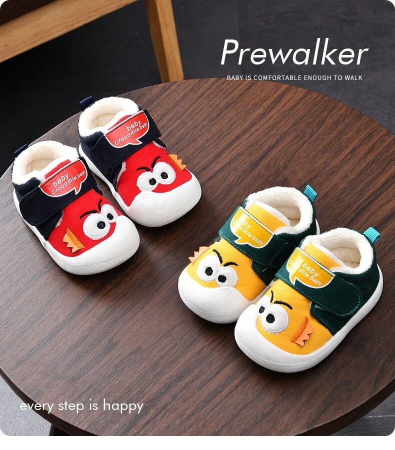 Tombeck baby toddler shoes spring cartoon shoes non-slip non-slip soft sole infant shoes girls spring shoes cartoon eye yellow (winter style plus velvet)) 17 (inner length 13cm) suitable for feet 12.5CM