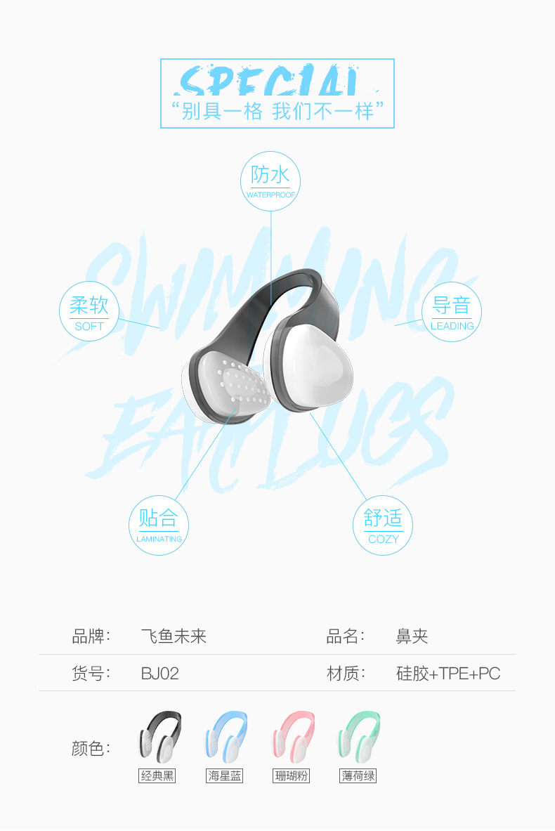 Feyovoly swimming nose clip professional anti-choking silicone adult men and women equipment anti-slip diving nose clip nose clip earplug set-blue