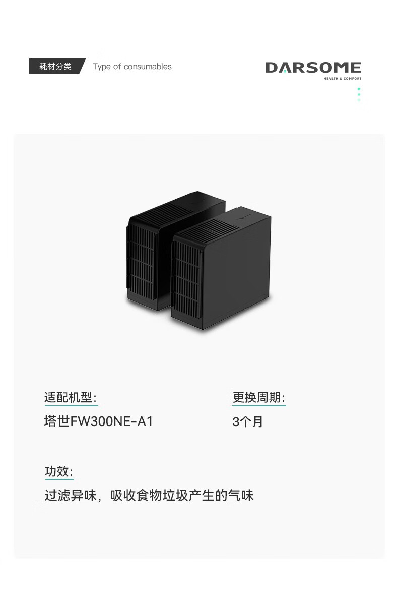 DARSOME adapts to Darsome garbage disposer FW300NE original activated carbon filter 2 pack black