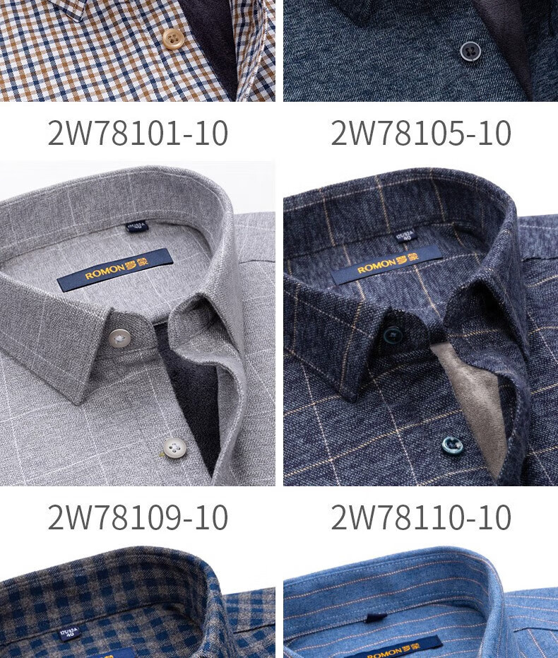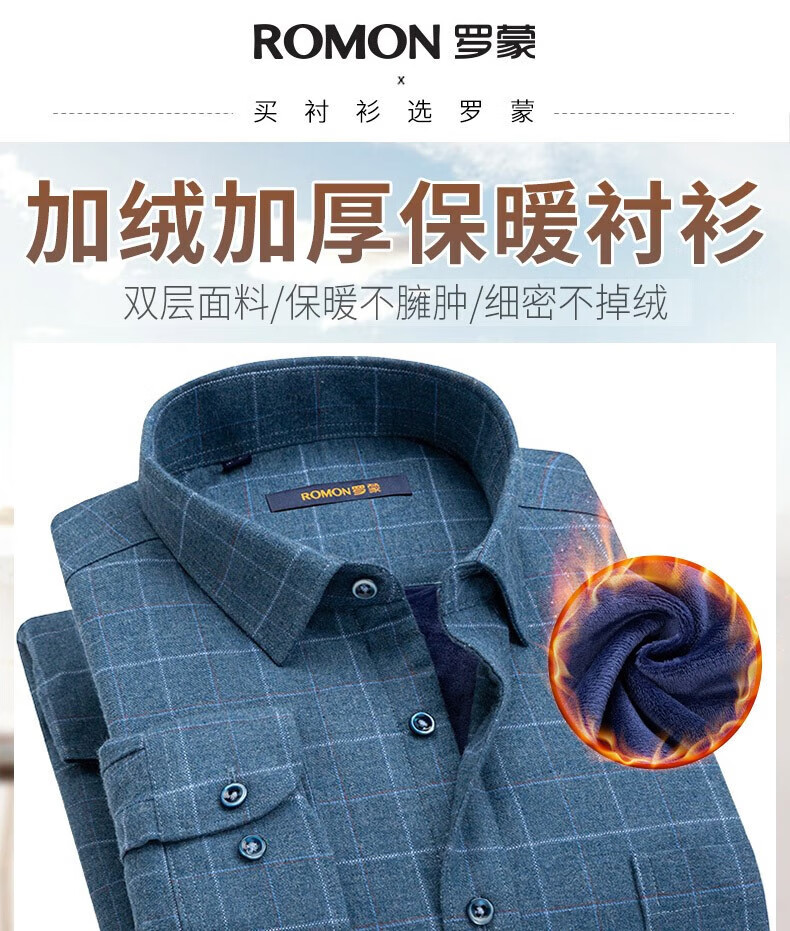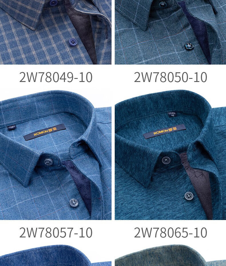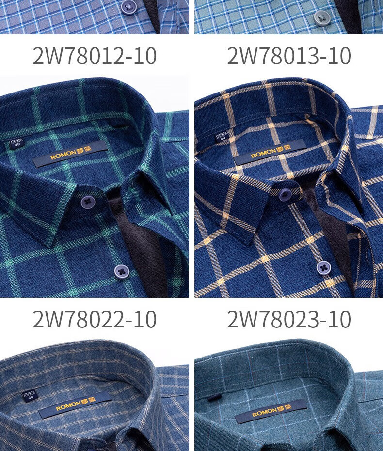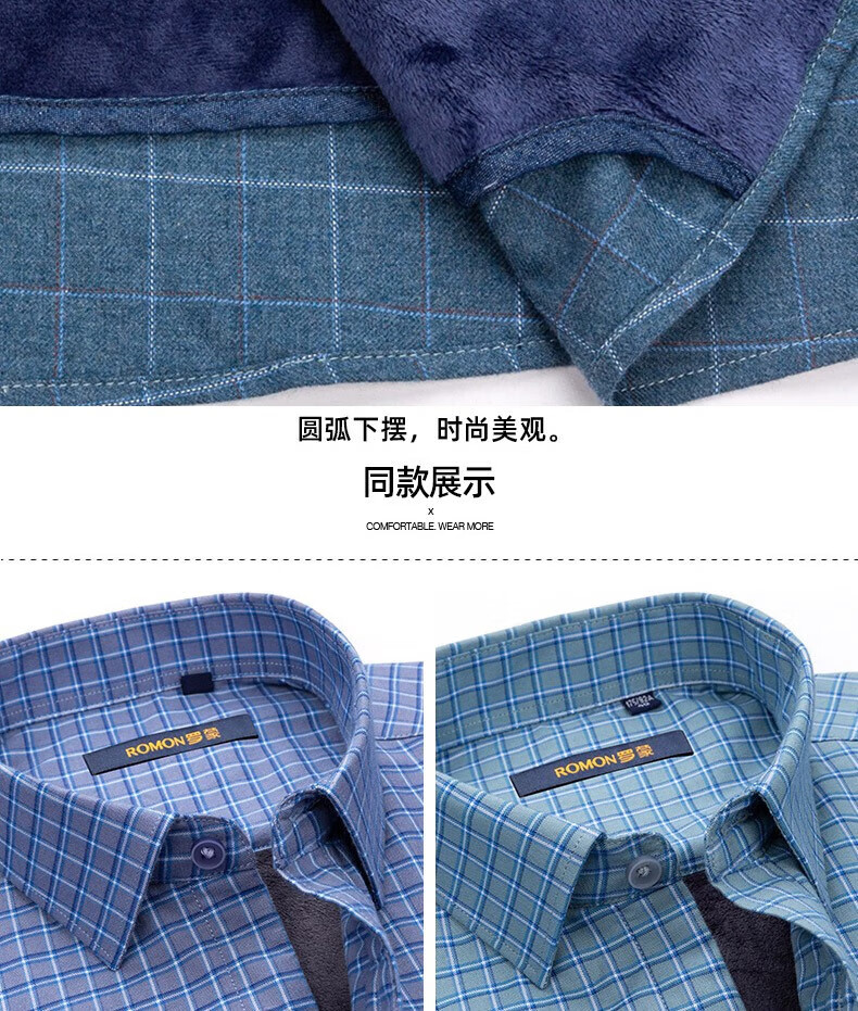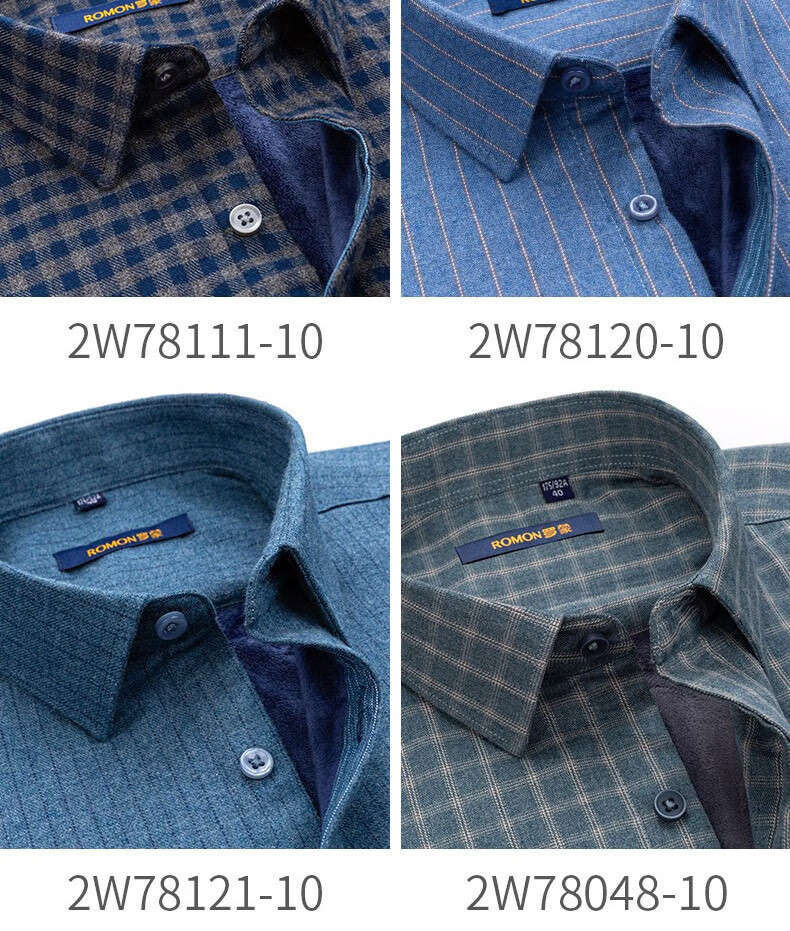 ROMON warm shirt men's velvet thickened pure cotton plaid autumn and winter long-sleeved casual loose men's shirt 2W7805010 warm 42