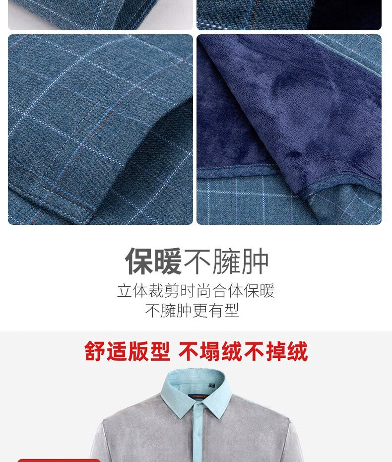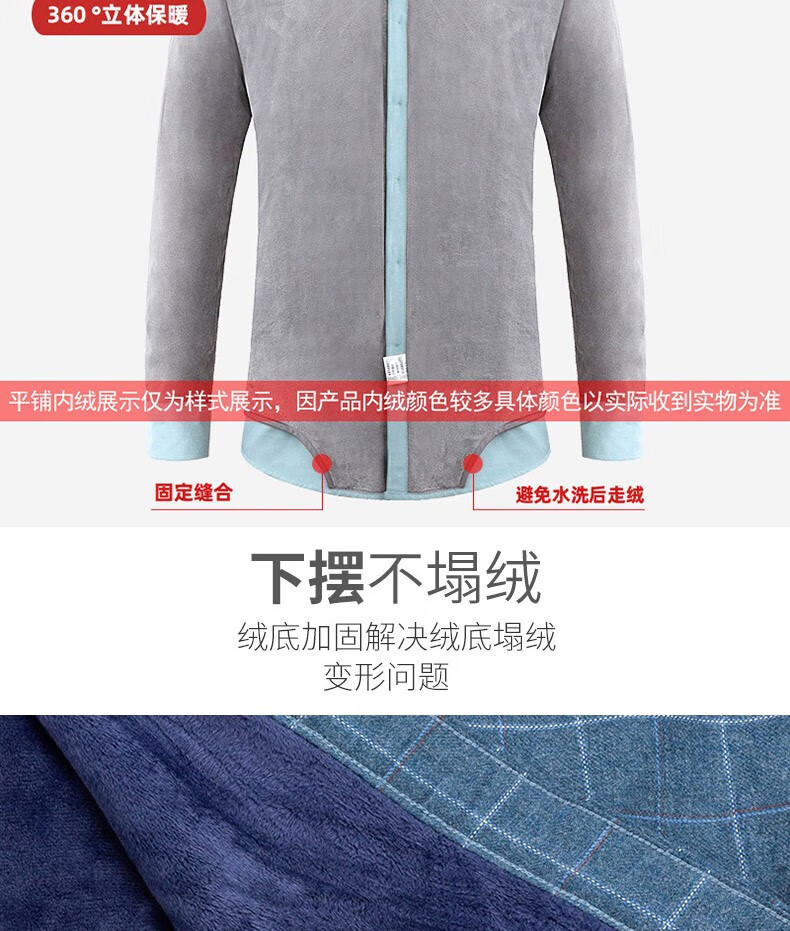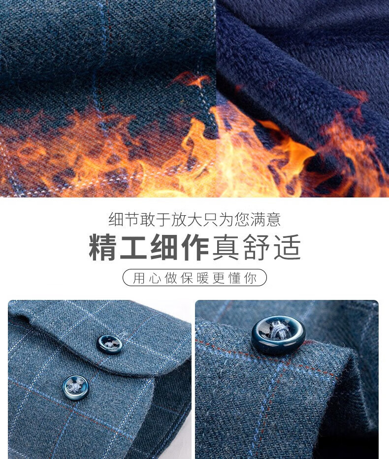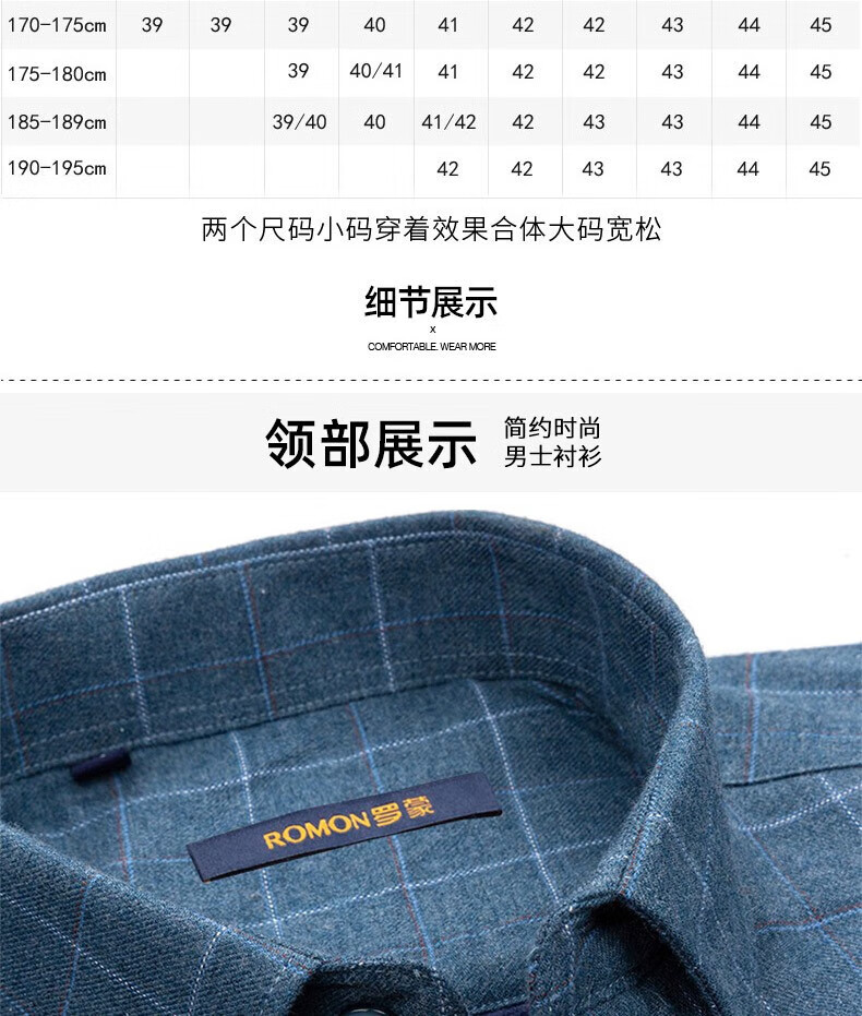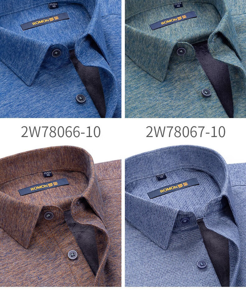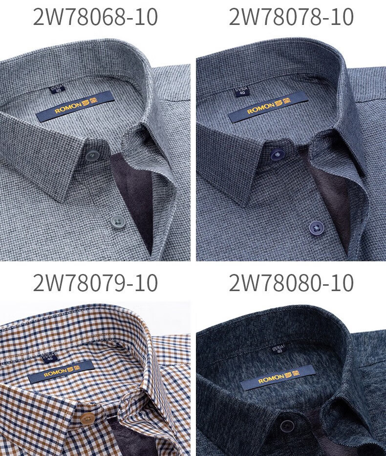 ROMON warm shirt men's velvet thickened pure cotton plaid autumn and winter long-sleeved casual loose men's shirt 2W7805010 warm 42