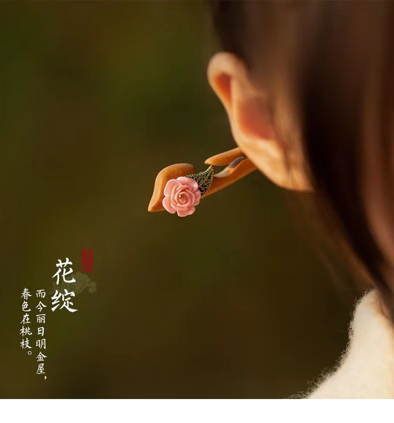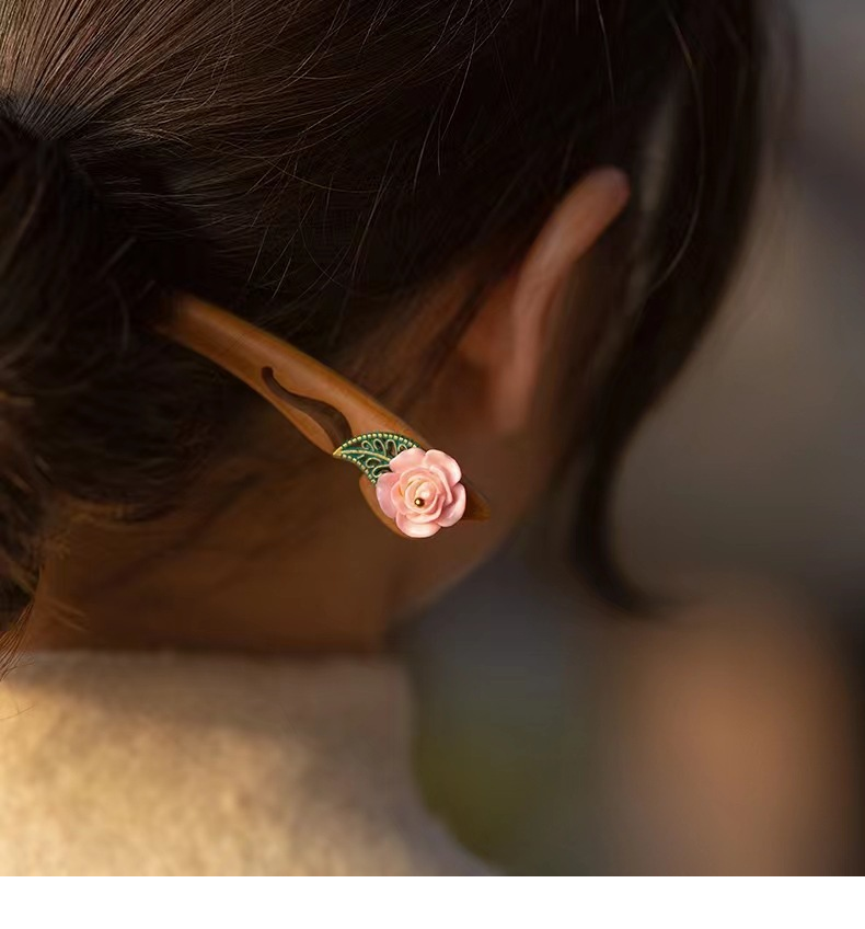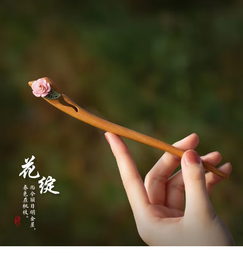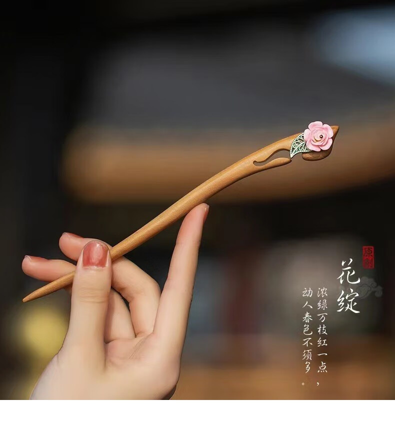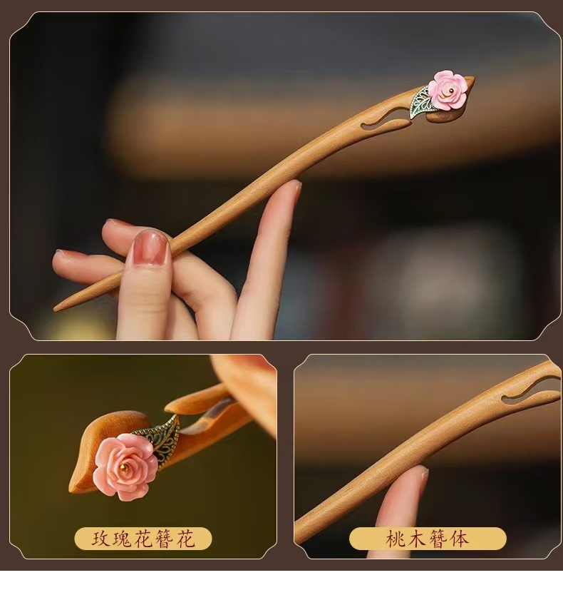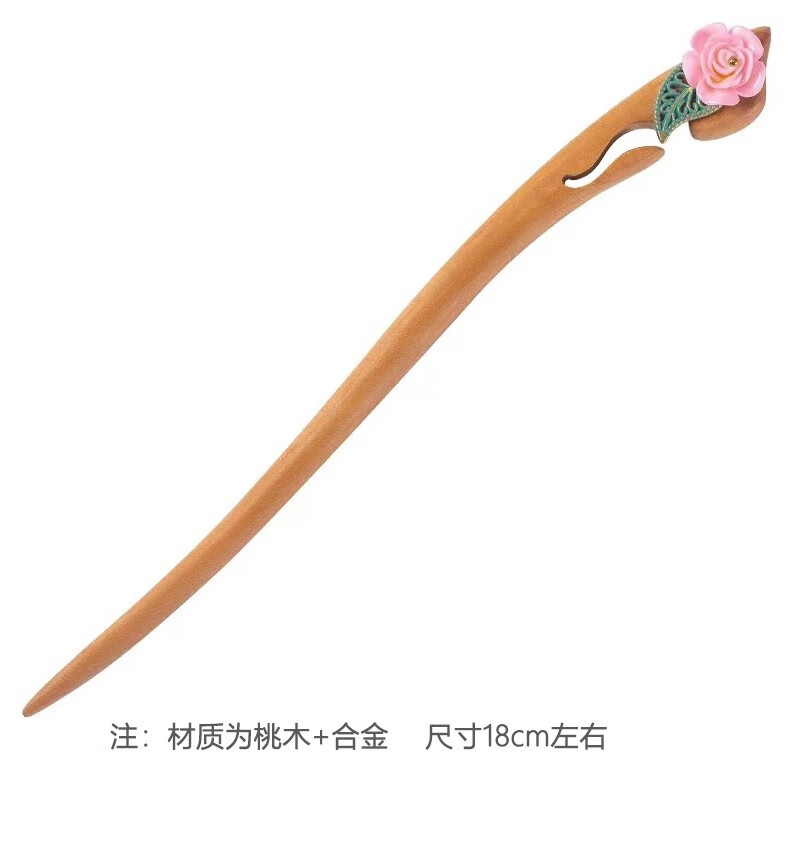 Mansheng simple modern hairpin for women's daily versatile peach wood hairpin cheongsam Hanfu horse skirt headdress handmade hairpin hairpin