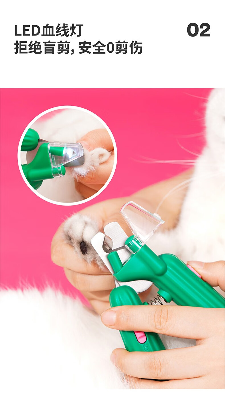 ZEZE cat nail scissors for beginners, dog paw pliers, pet clippers, nail polishing line, cat cleaning supplies, cactus Led pet nail clippers