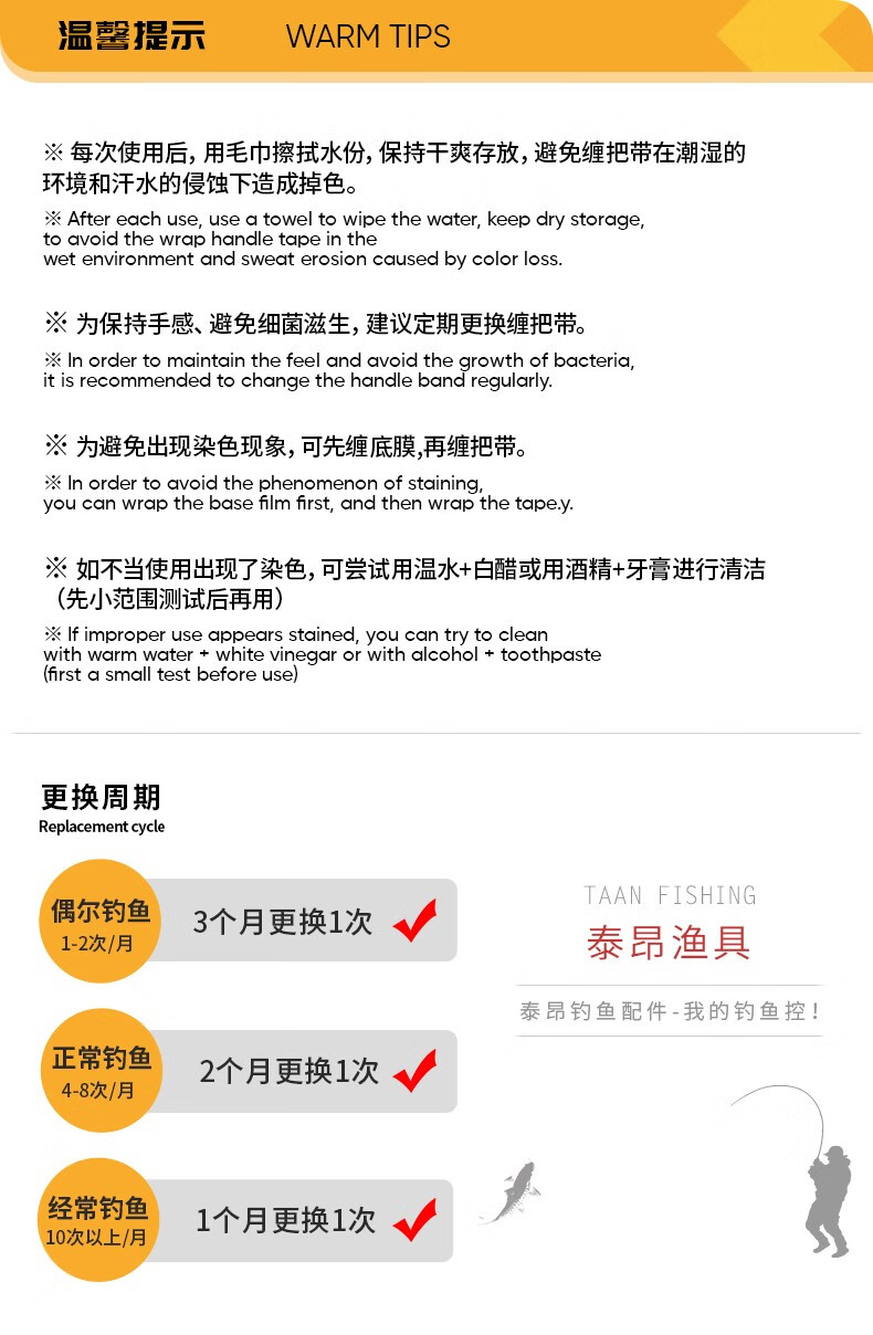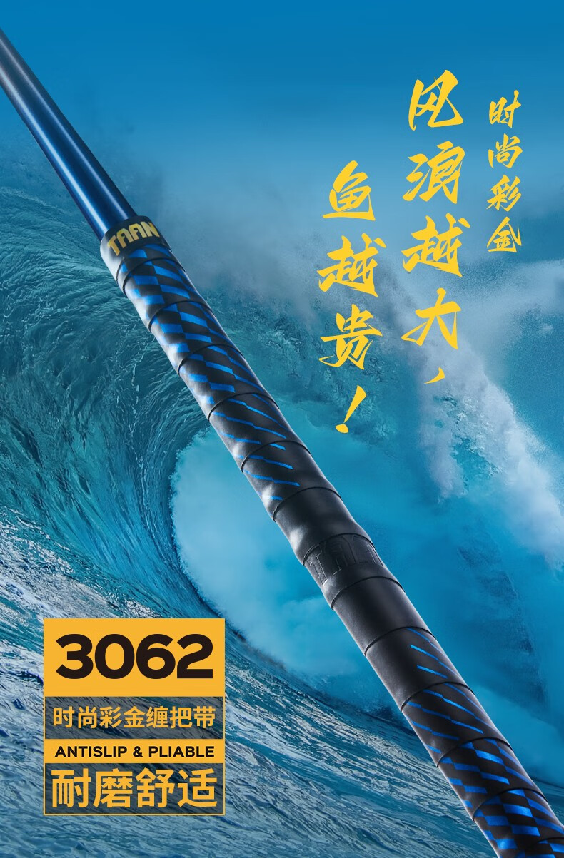 Taan fishing rod handle with gold printed inner layer, flexible fabric, sweat-absorbent and non-slip fishing handle with FH3062 black and blue 2.0M